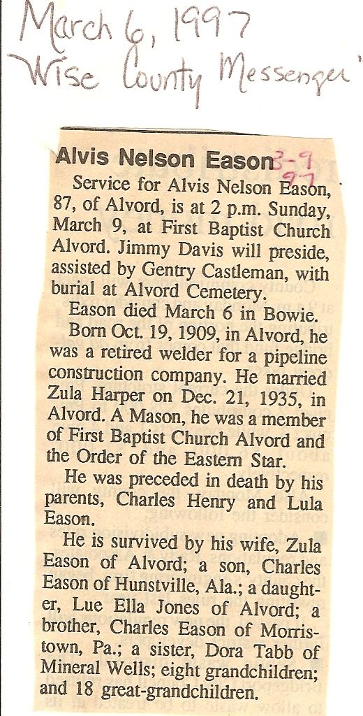 Eason, Zula Bell 2001 -- 2001 Wise County Messenger (Sheet)