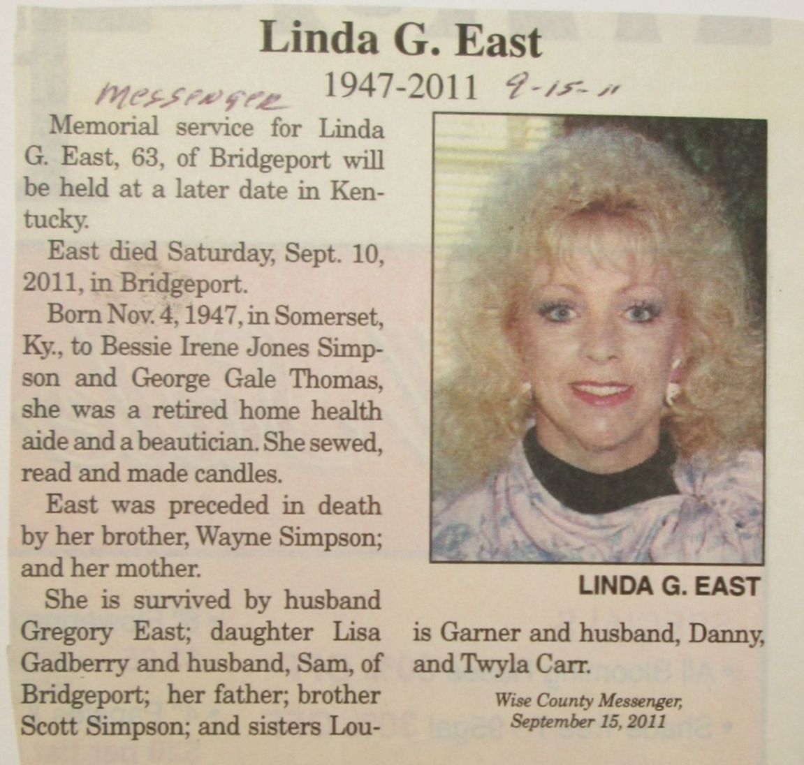 East, Linda Ann (Fortinberry) - 2022 -- Hawkins Funeral Homes