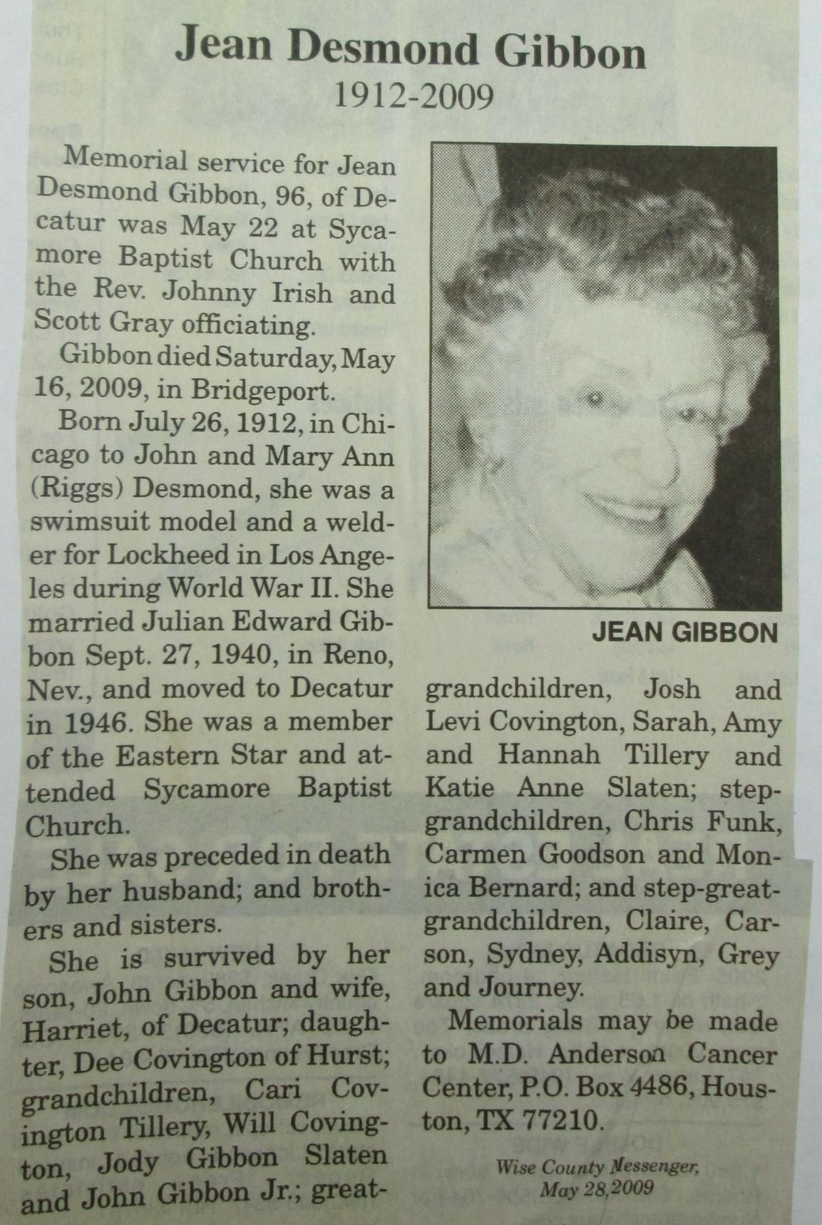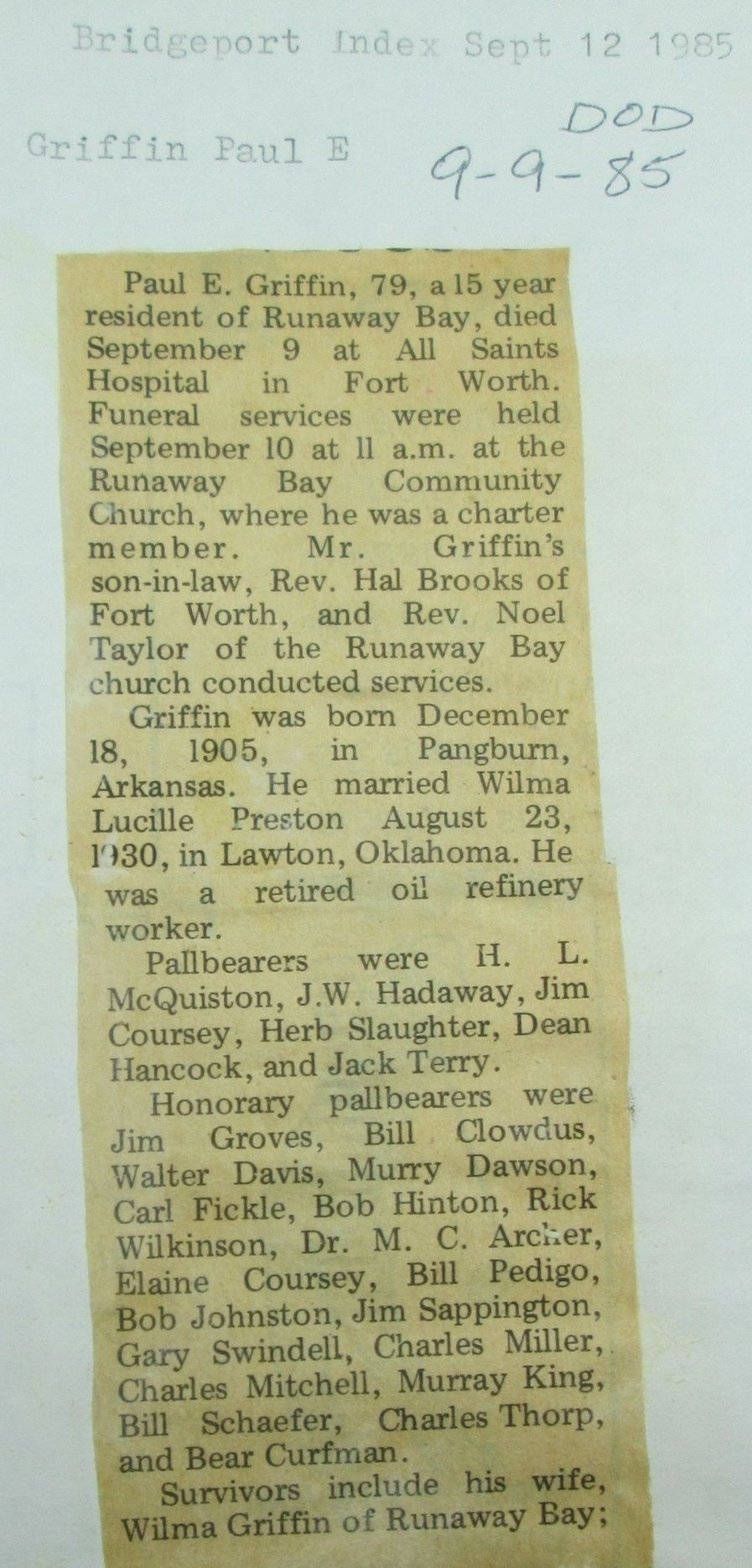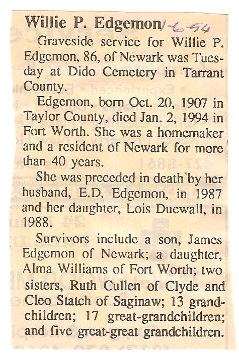 Easley, Gladys Inez 1990 -- Bridgeport Index