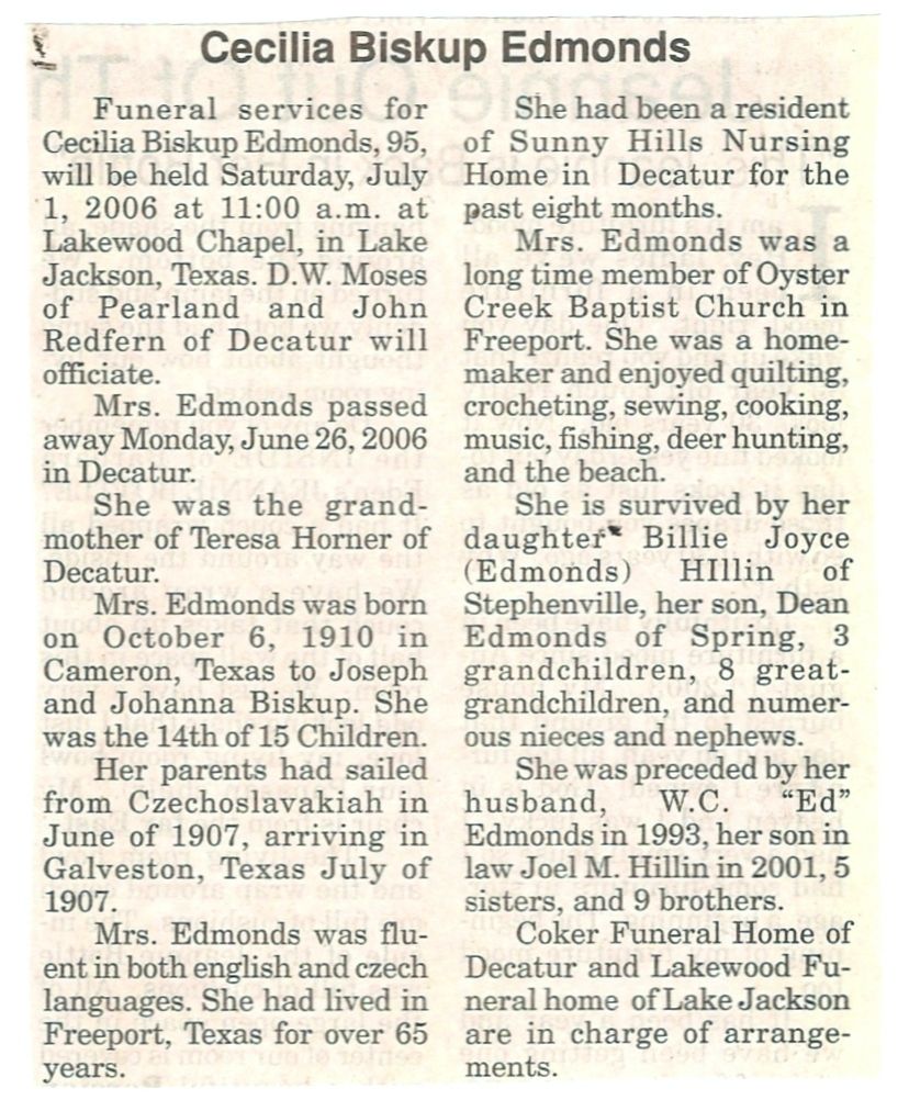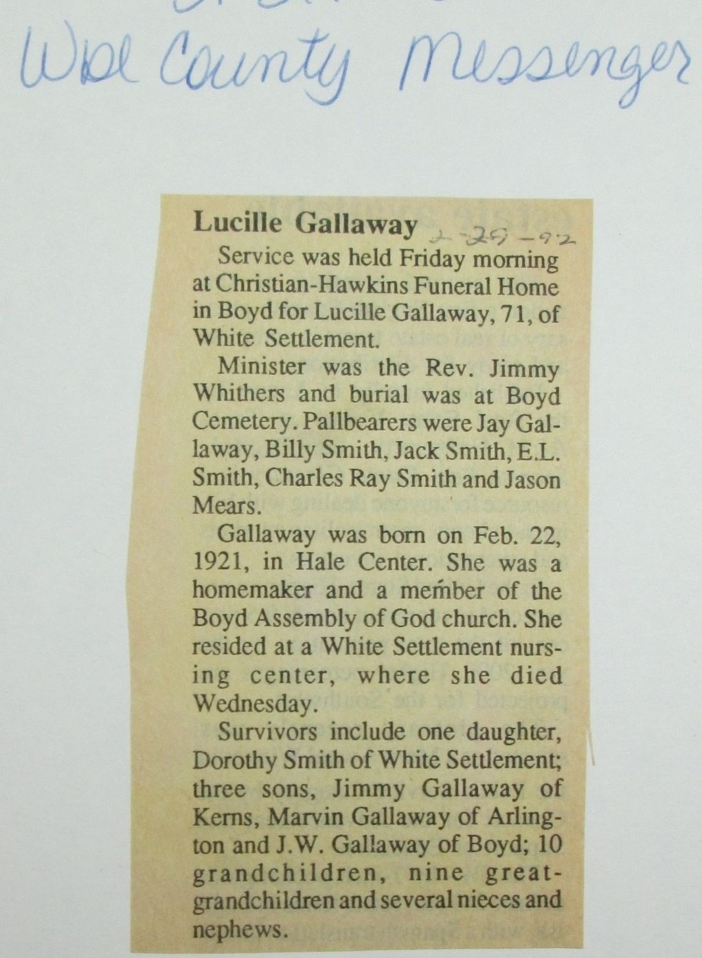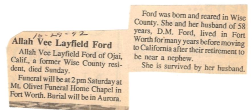 Earp, Lometa Jeanette 1984 -- Newspaper Clipping