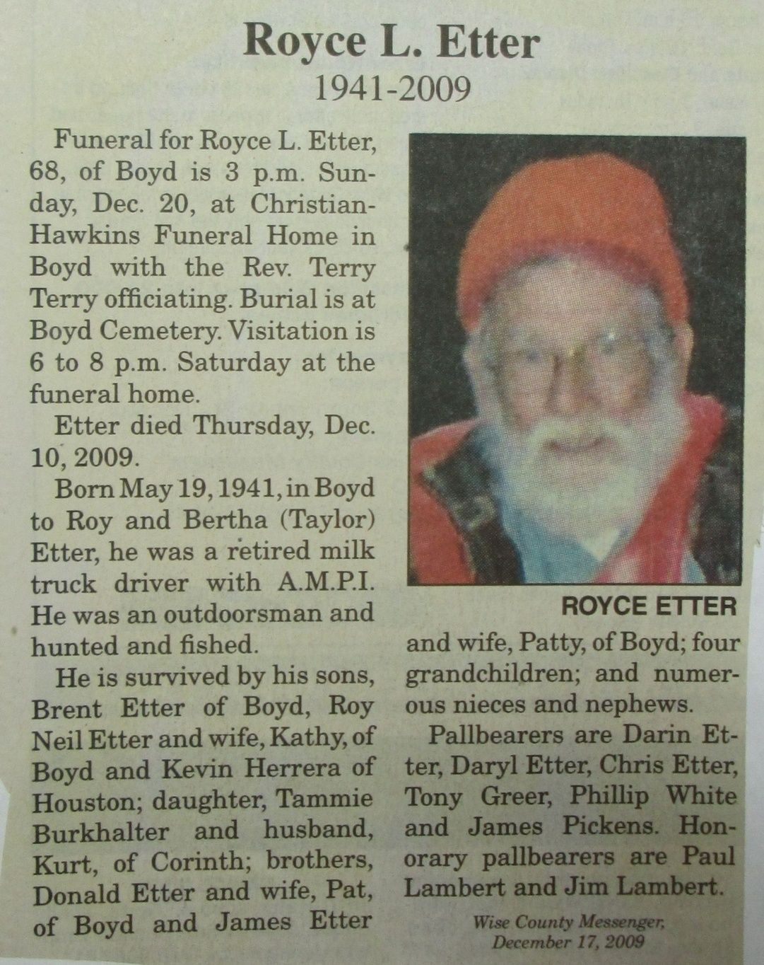 Eakle, Ronald Pierce 2002 -- 2002 Wise County Messenger (Sheet)