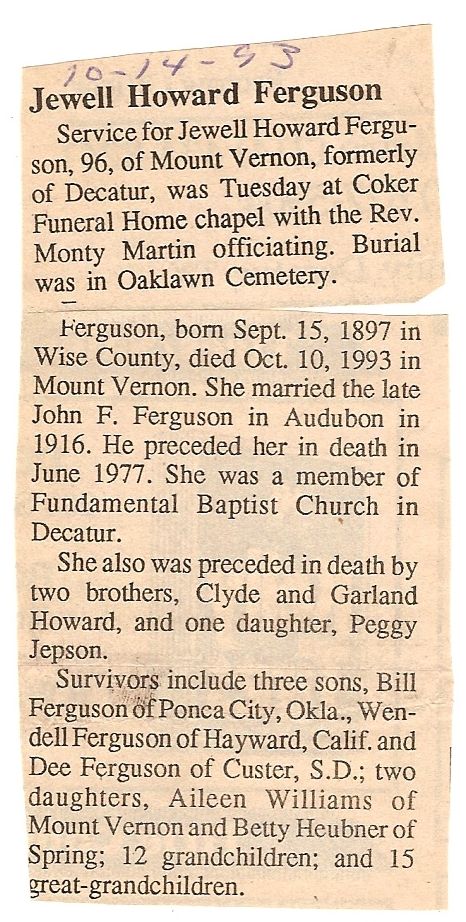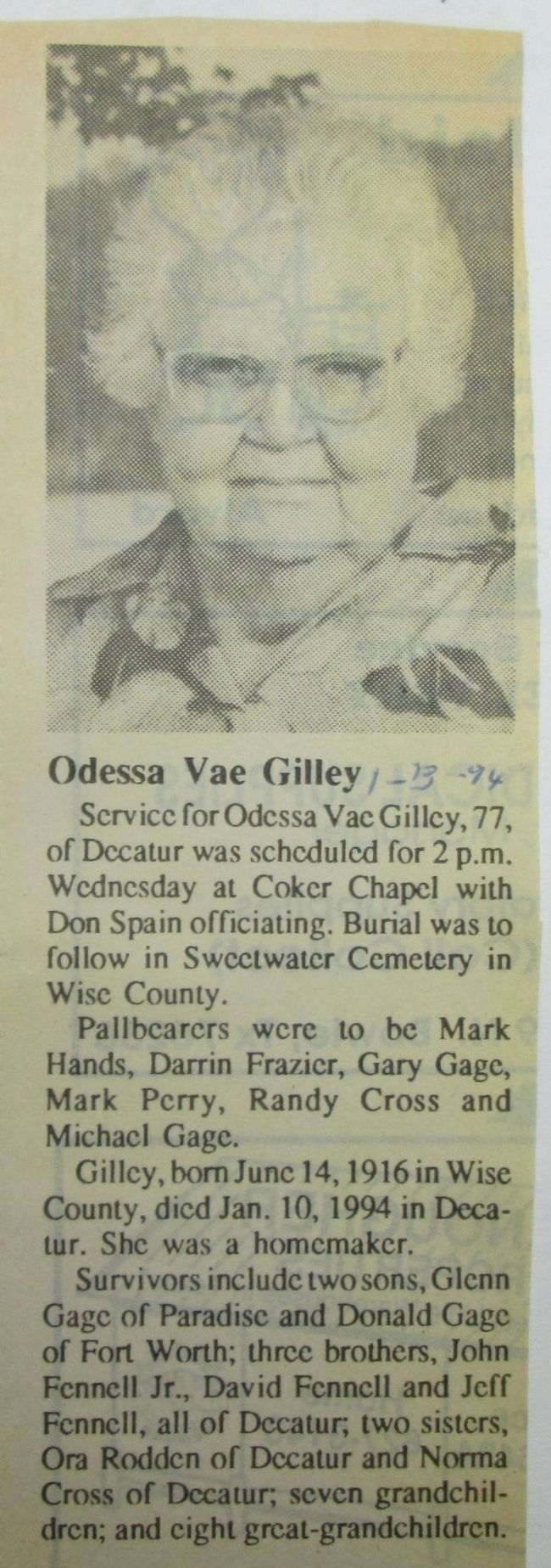 Gunn, Sarah Ellen (nee Vance) - 1934 -- Various Older Newspapers
