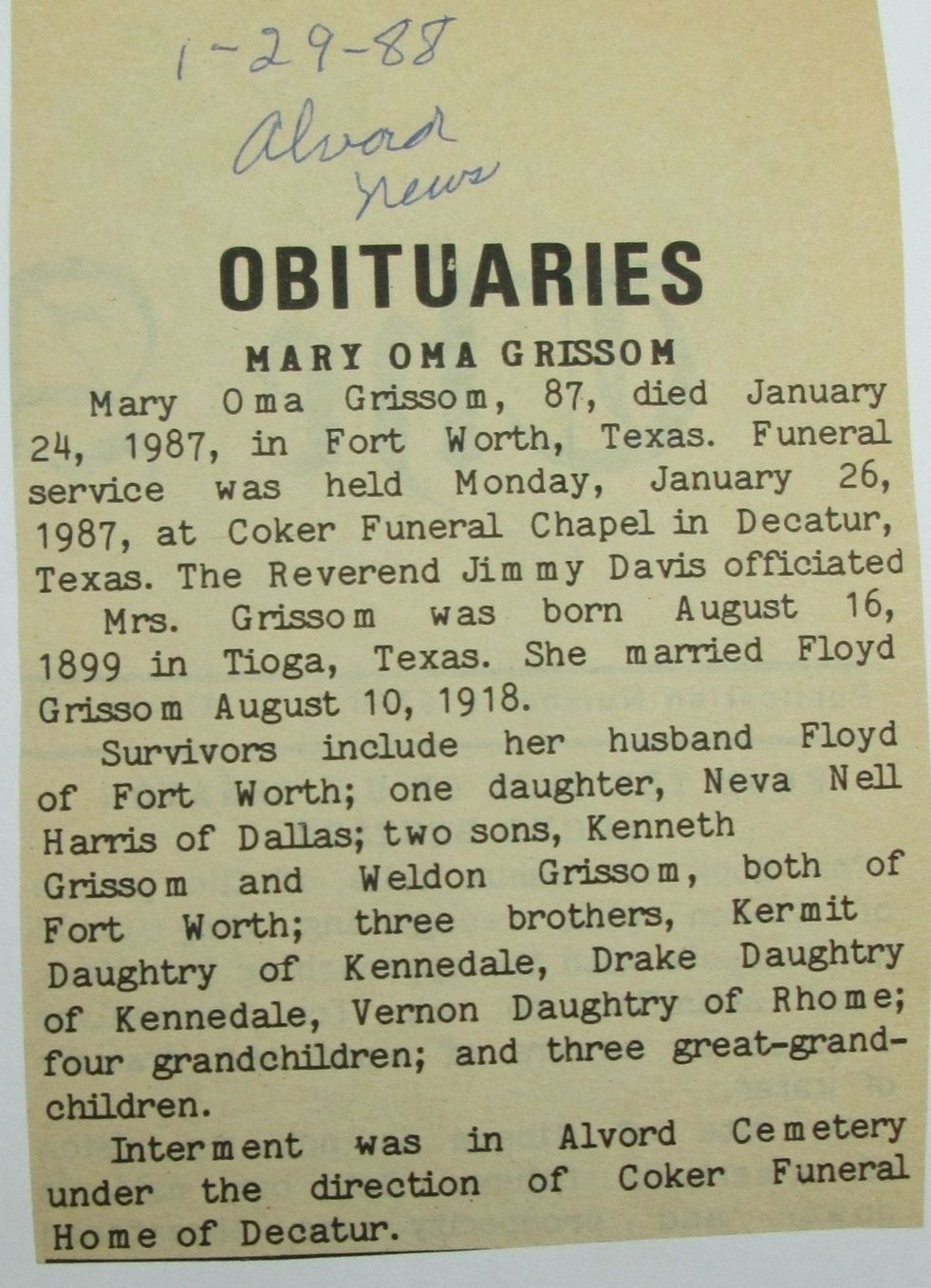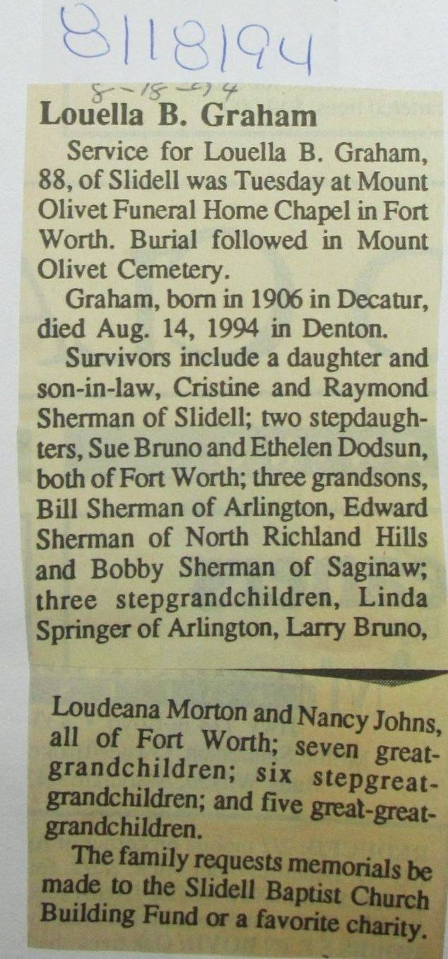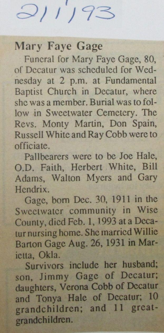 Gulley, Mary Luis Lewis (nee Whorton) - 1934 -- Various Older Newspapers