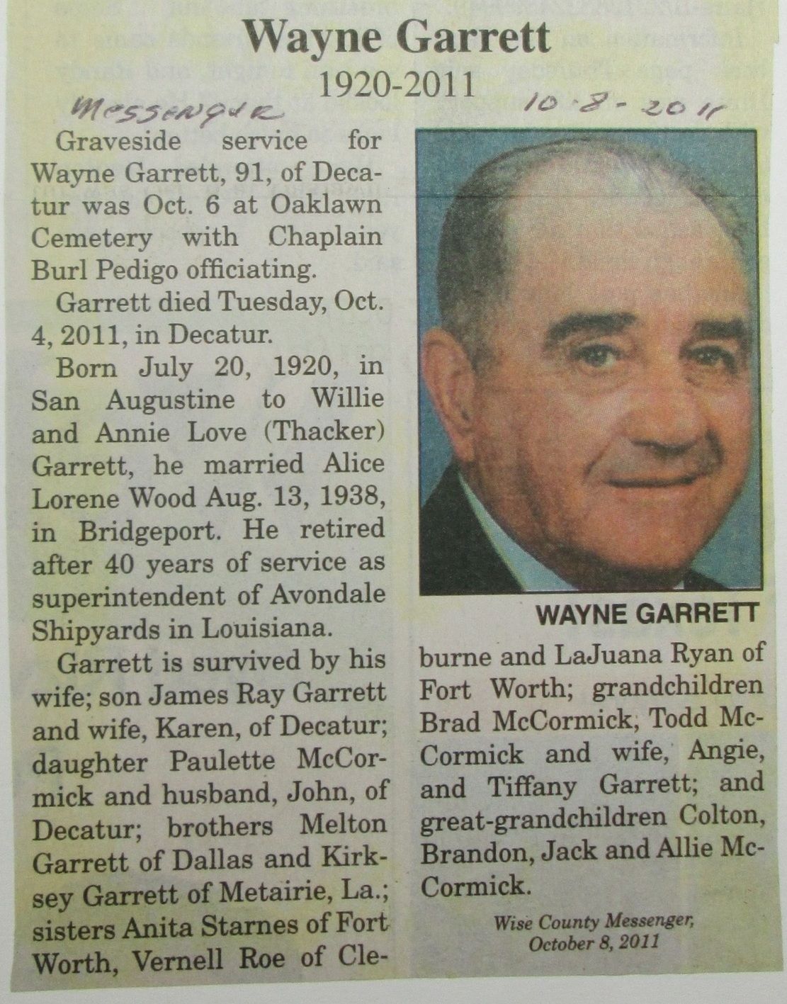 Grothe, Walton Eugene 2011 -- 2011 Wise County Messenger
