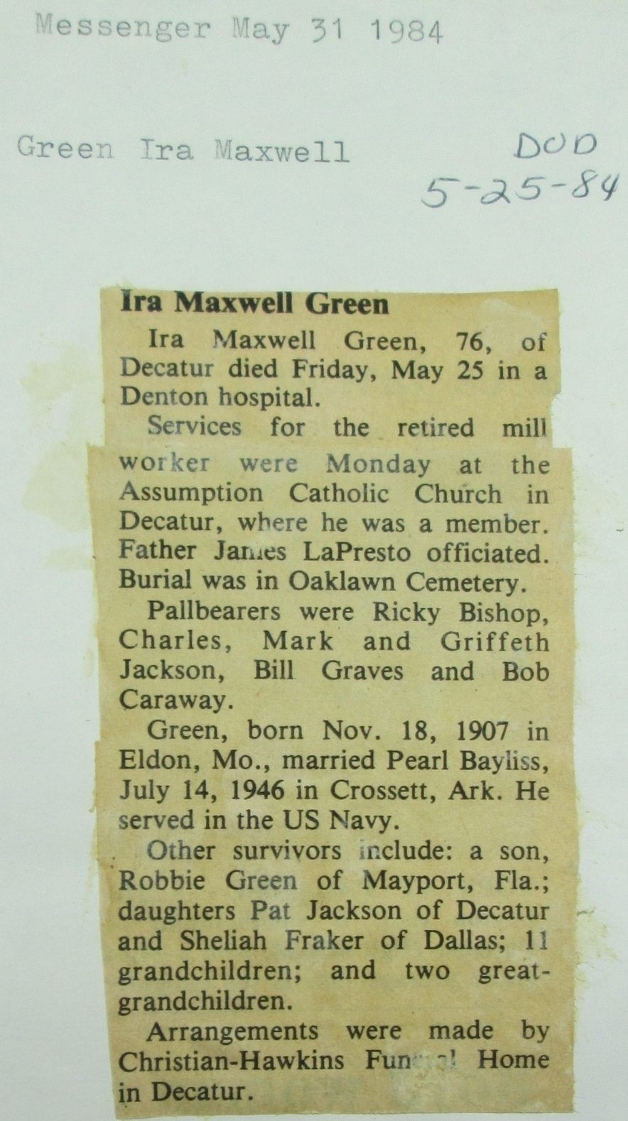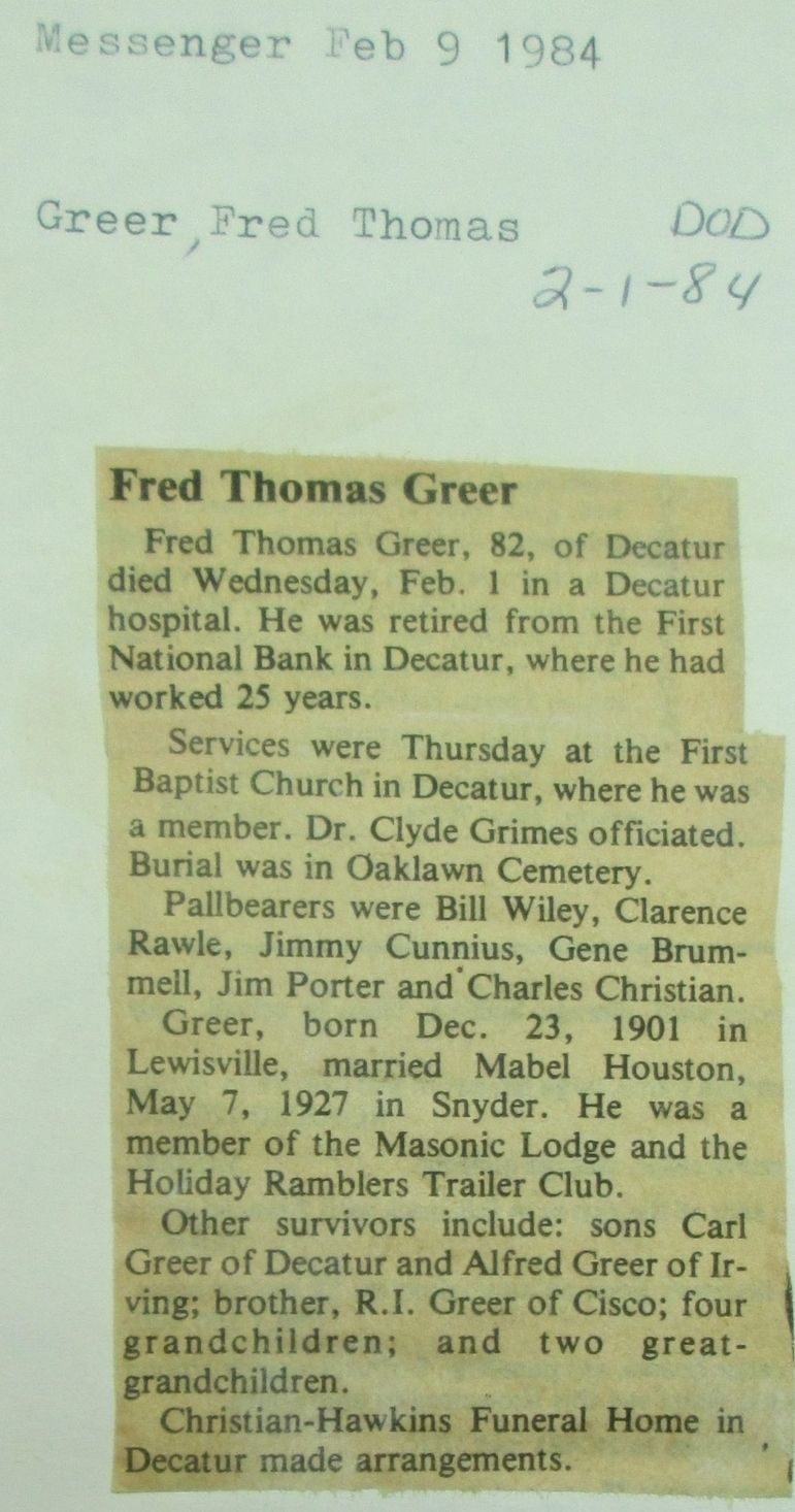 Groves, John Wilson - 1929 -- Old Decatur News & Wise Co Messenger