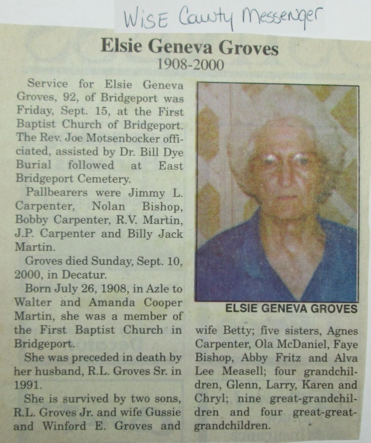 Groves, Elsie Geneva Martin 2000 -- Museum Files