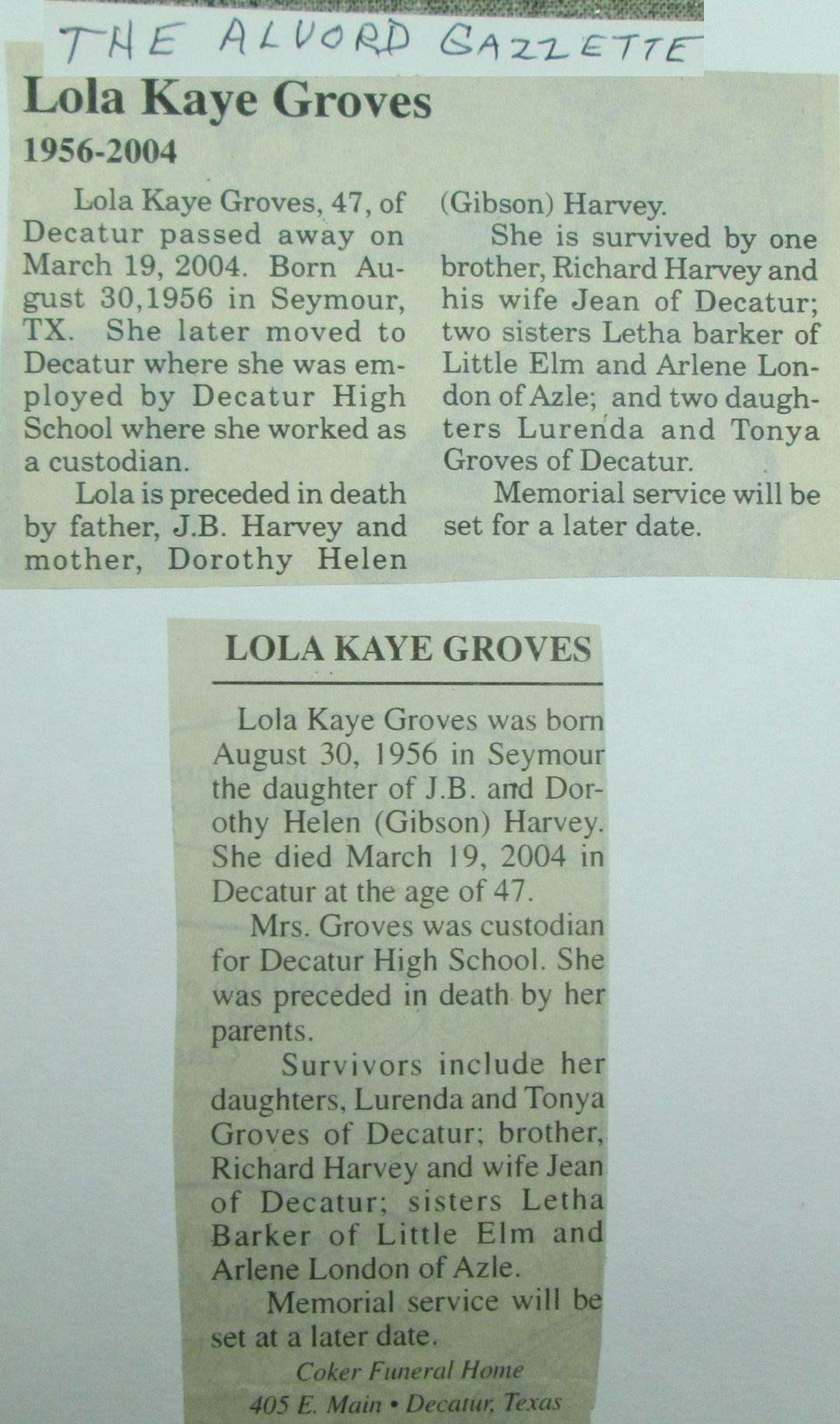 Groves, Lola Kaye Harvey 2004 -- Museum Files