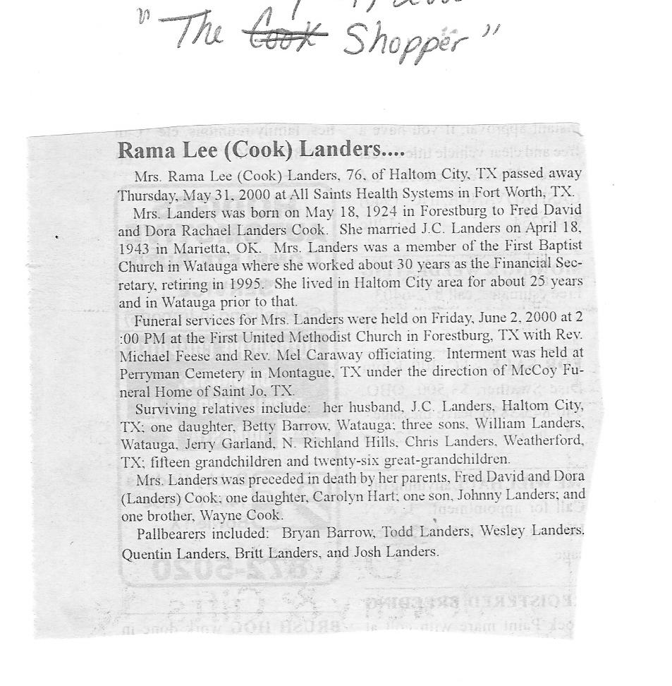 Lamance, Goldie Gerldine 'Jeri' 2002 -- 2002 Wise County Messenger (Sheet)