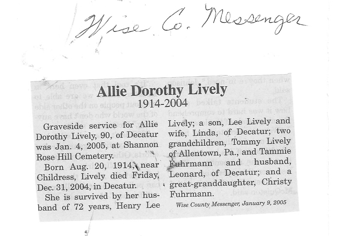 Lacefield, Edna Bernice - 2012 -- 2012 Wise County Messenger