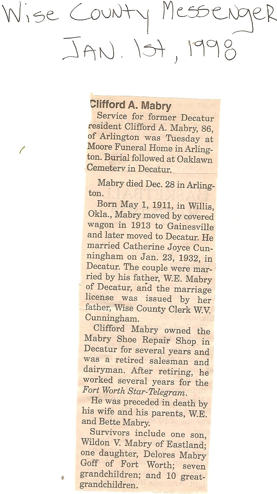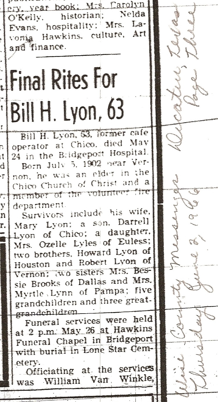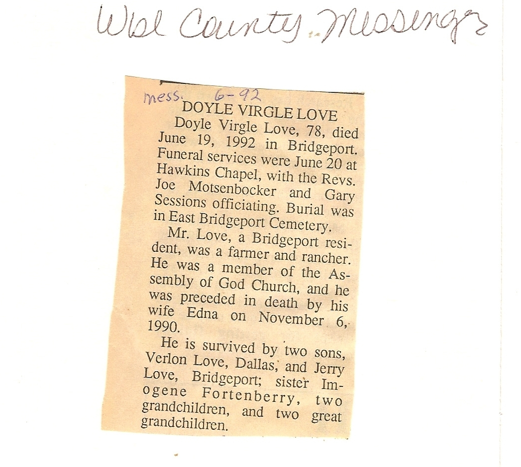 Most selected clippings are from 'The Bridgeport Index' and 'The Wise County Messenger',