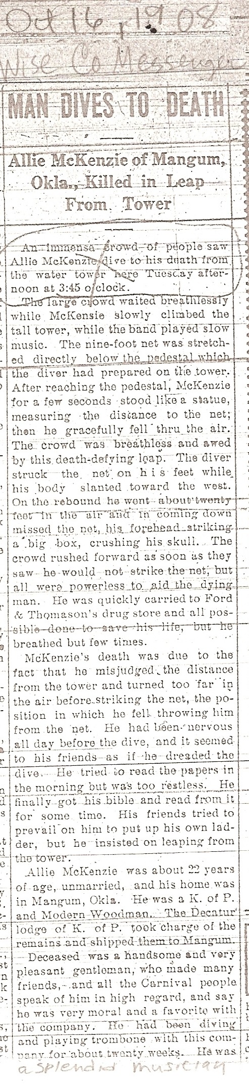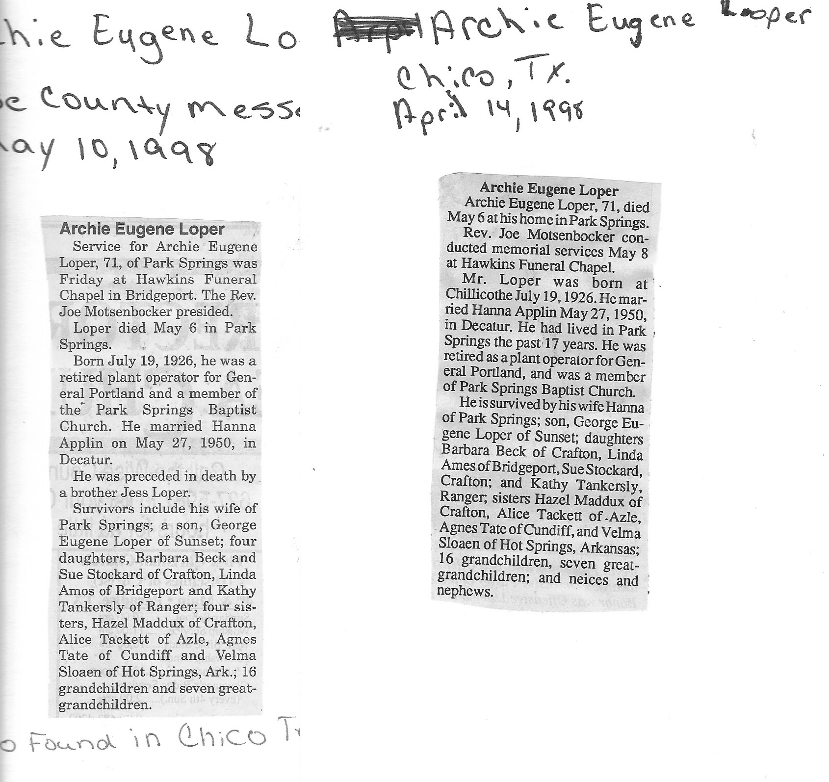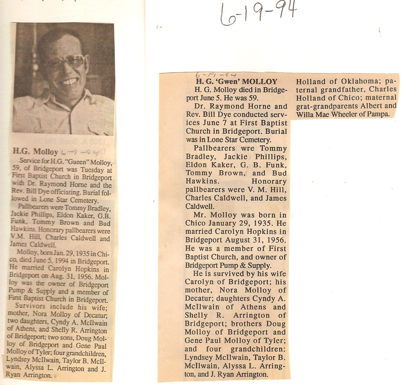 Most selected clippings are from 'The Bridgeport Index' and 'The Wise County Messenger',