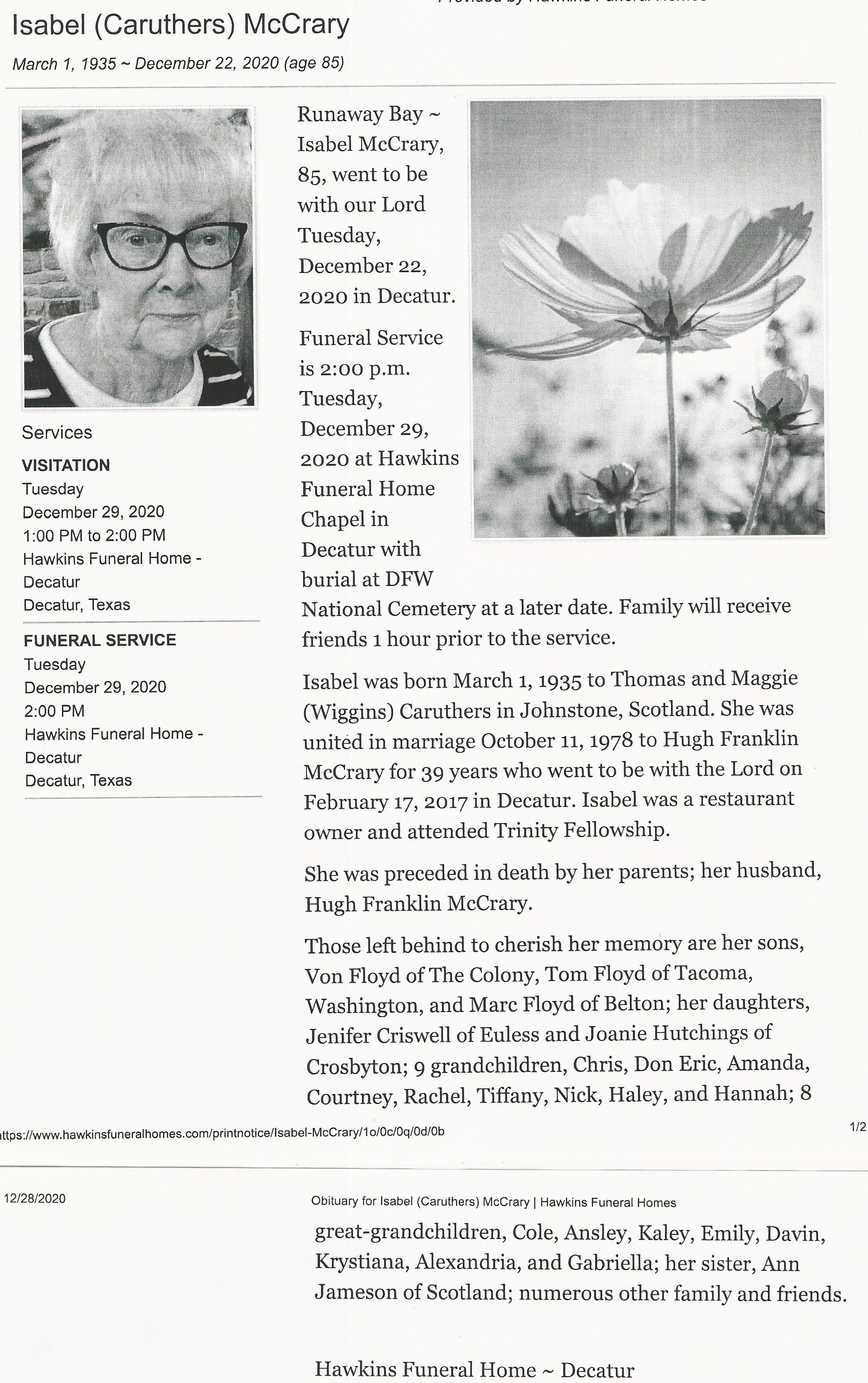 Myers, Mary (Barron) - 2021 -- 2021 Hawkins Funeral Homes