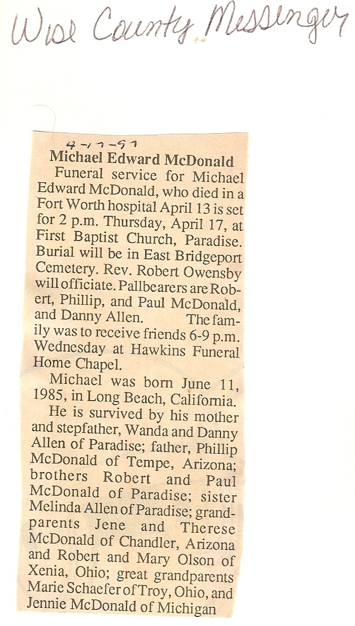 Munsey, Roger Dale 1986 -- Newspaper Clipping