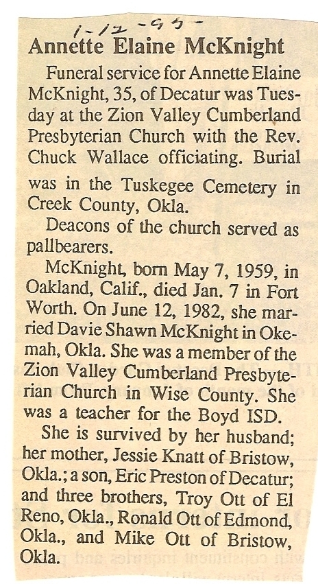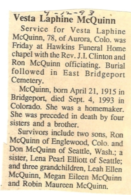 Lackey, Nina Mae 1984 -- Newspaper Clipping
