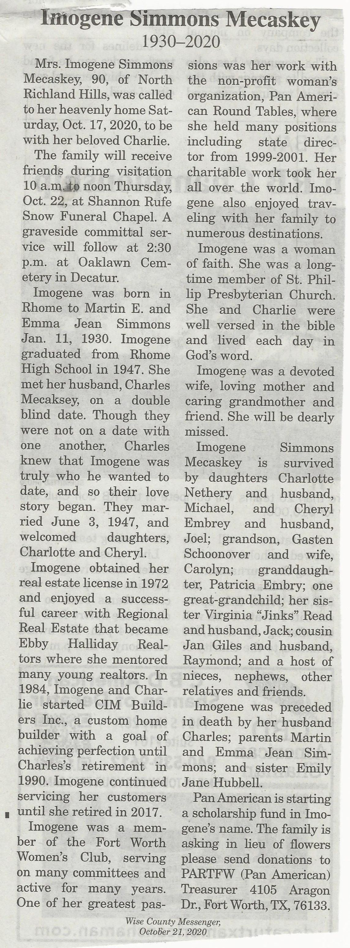 Lacaze, Margaret “Ruth” Feuerborn-2019 -- 2019 Wise County Messenger