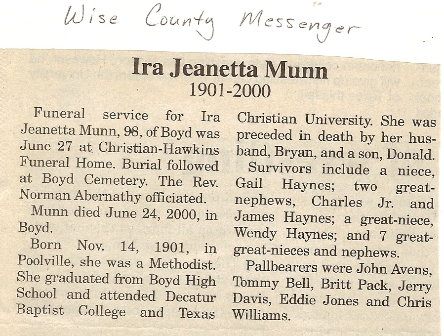 Munnerlyn, Vonnie A. (Looper) 2016 -- 2016 Wise County Messenger