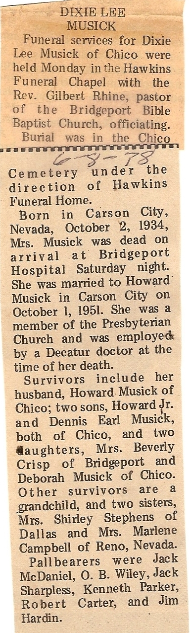 Musick, Dixie Lee 2 1978 -- Newspaper Clipping