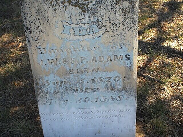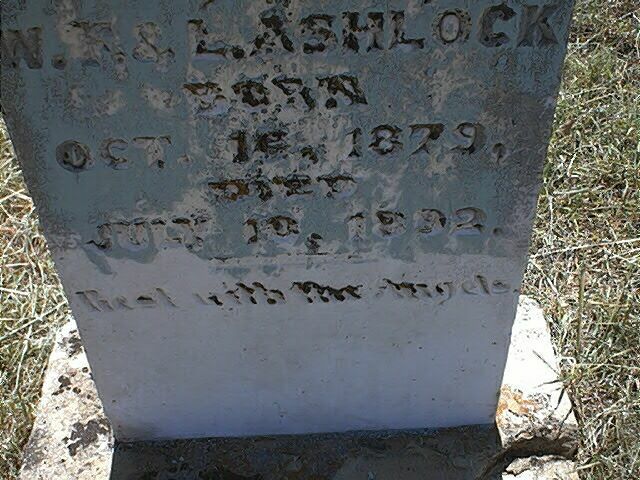 Autry, Laura A. - July 16, 1885 - May 3, 1886 - Daughter of T.W. & P.L. - Headstone with Phoebe L. - Cottonwood-157