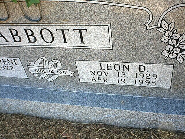 Abbott, Leon D. - Nov 13, 1929 - Apr 19, 1995 - Wed June 14, 1972, Headstone with Wanda Lorene Mowery - LoneStar-004