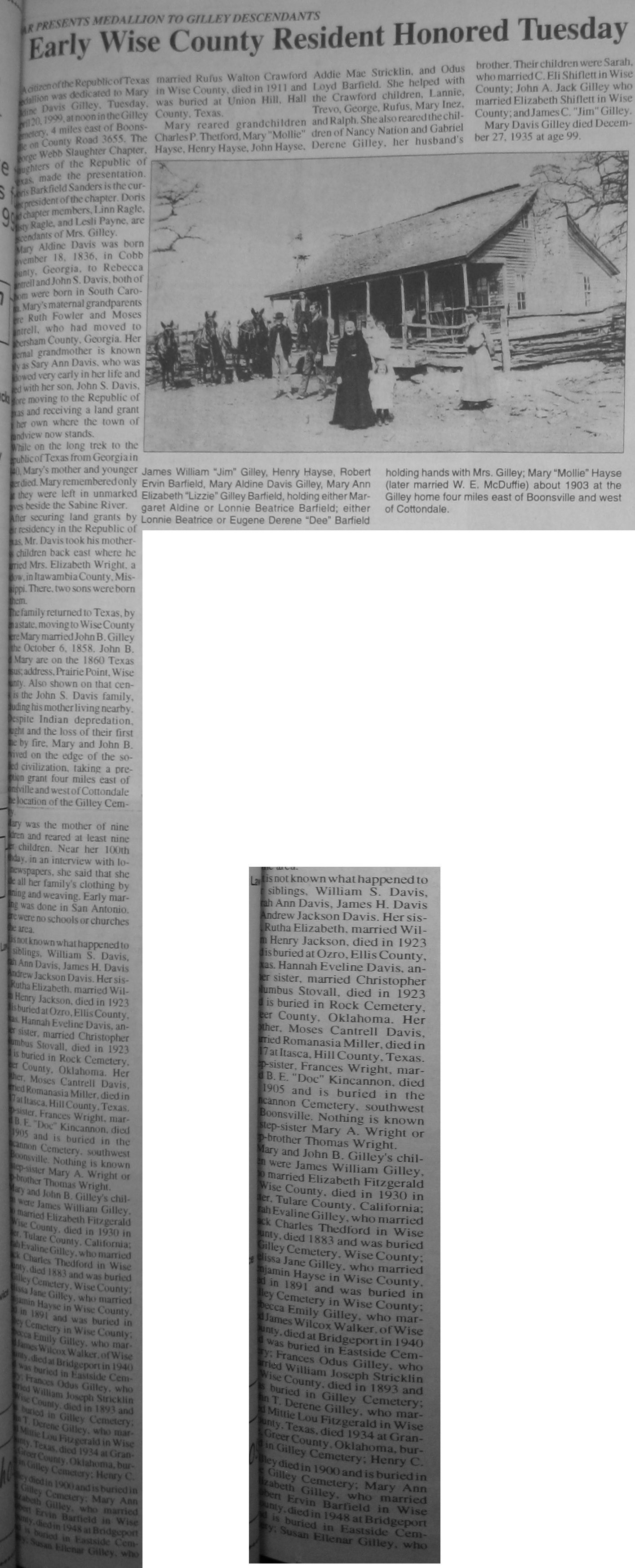 in 1883, Melissa Jane Gilley Hayse who died in 1891, and Frances Odus Gilley