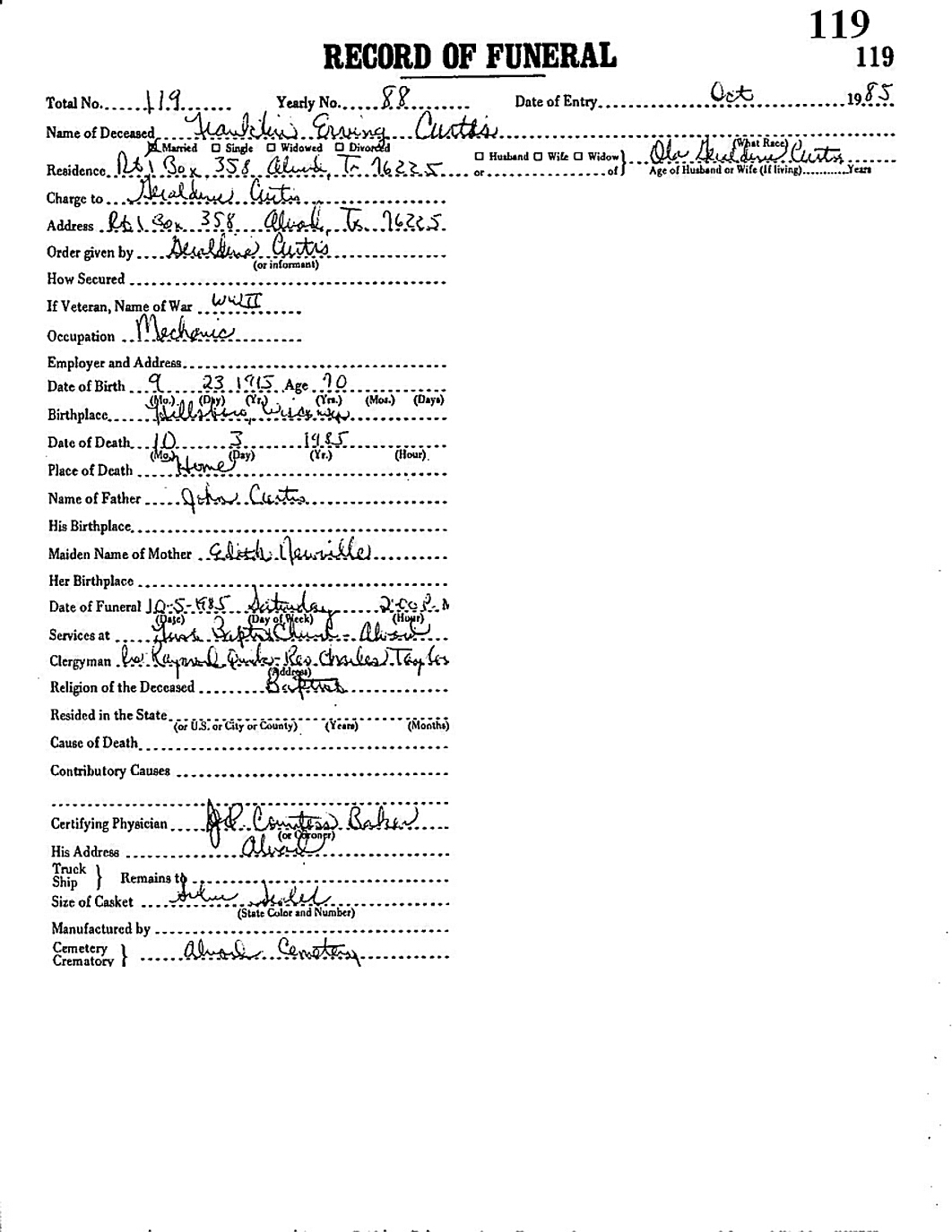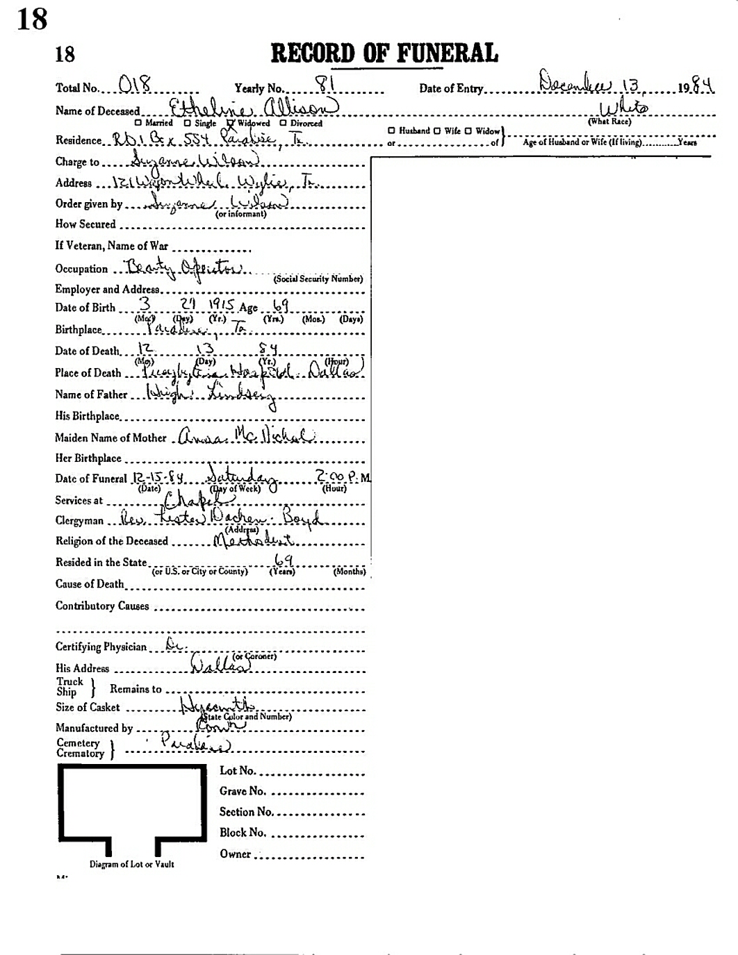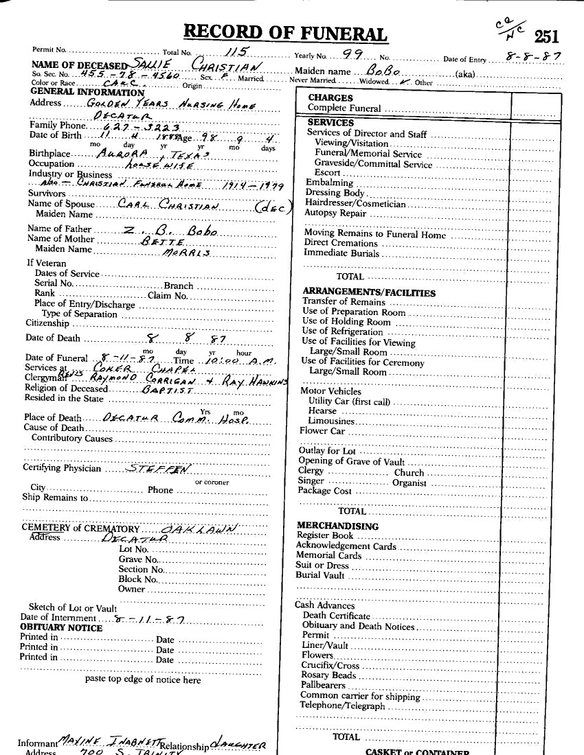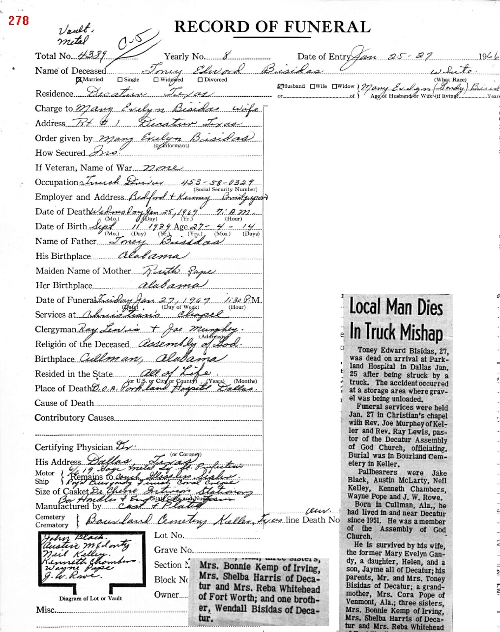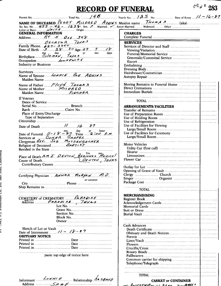 A boy from AR, Killed on railroad Christian Funeral Home C22/C22-254.jpg Aaron, James Thomas Christian Funeral Home C31/C31-110.jpg Abbott, Julia Gage Christian Funeral Home C31/C31-123.jpg Abbott, Lewis Elmer Coker Funeral Home C56/C56-091.jpg Abbott, T. Aleck Christian Funeral Home C35/C35-273.jpg Abbs, James Russell Christian Funeral Home C01/C01-110.jpg Abel, Anto A., Boyd Funeral Home B88/B88-135.jpg Abel, Arlyce Astor, Boyd Funeral File Sheet BF81/BF81-141.jpg Abel, Evelyn Myra Muse, Boyd Funeral File Sheet BF95/BF95-001.jpg Abel, Helen Elizabeth Miller, Boyd Funeral File Sheet BF91/BF91-006.jpg Abel, Helen Miller, Boyd Funeral Home B88/B88-125.jpg Abel, Nancy Jean Prince Coker Funeral Home C64/C64-076.jpg Abel, Walter V. Christian Funeral Home C22/C22-162.jpg Abernathy , Mary Ruth Cook Christian Funeral Home C86/C86-137.jpg Abernathy, Baby of Bill & Edna Earl, Hawkins Funeral Home H63/H63-110.jpg Abernathy, Ella Dora Jackson Christian Funeral Home C39/C39-261.jpg Abernathy, L.D., Mr. Christian Funeral Home C22/C22-269.jpg Abernathy, William Glenn, Hawkins Funeral File Sheet HF87/HF87-107.jpg Abernathy, William Glenn, Hawkins Funeral Home H84/H84-282.jpg Able, Barbara Elizabeth "Betty" Morris Coker Funeral Home C64/C64-215.jpg Able, Carrol Floyd "Crick", Hawkins Funeral File Sheet HF00/HF00-001.jpg Able, Forest Lee Christian Funeral Home C50/C50-017.jpg Able, Thomas Franklin Coker Funeral Home C56/C56-148.jpg Able, William Morgan Coker Funeral Home C56/C56-264a.jpg Able, William Morgan Coker Funeral Home C56/C56-264.jpg Absher, Donald Marion Christian Funeral Home C01/C01-182.jpg Absher, Opal Lee Kaker Hunter, Hawkins Funeral File Sheet HF01/HF01-001.jpg Absher, Ulyses Sherman Christian Funeral Home C31/C31-201.jpg Absher, William P. "Bill", Hawkins Funeral File Sheet HF93/HF93-001.jpg Absher, William P., Hawkins Funeral Home H93/H93-088.jpg Acker, Mary Elizabeth Christian Funeral Home C15/C15-102.jpg Acker, William H., Dr. Christian Funeral Home C22/C22-084.jpg Acola, Marian Elizabeth Woody Christian Funeral Home C98/C98-299.jpg Acola, Sam Christian Funeral Home C80/C80-104.jpg Acola, Sam, Hawkins/Christian Funeral Home HCD80/HCD80-003.jpg Action, Bonnie Lynn Bowser, Hawkins Funeral File Sheet HF73/HF73-0001.jpg Acton, Bonnie Lynn Bauser, Hawkins Funeral Home H80/H80-028.jpg Adair, Betty Darline Christian Funeral Home C45/C45-102.jpg Adair, Carl Sine Christian Funeral Home C45/C45-102.jpg Adair, Ester, Hawkins Funeral File Sheet HF73/HF73-0002.jpg Adama, Randy Dale, Jr., Hawkins Funeral Home H90/H90-110.jpg Adams, Acie Dee Christian Funeral Home C76/C76-098.jpg Adams, Alonzo Bright, Hawkins Funeral Home H61/H61-044.jpg Adams, Audrey, Boyd Funeral Home B88/B88-165.jpg Adams, Barry Carroll, Hawkins Funeral File Sheet HF85/HF85-043.jpg Adams, Beulah Etta Pitts, Hawkins Funeral File Sheet HF73/HF73-0004.jpg Adams, Billy Carroll, Hawkins Funeral Home H84/H84-189.jpg Adams, Carl Victor, Hawkins Funeral Home H68/H68-061.jpg Adams, Ceffie Daisy Craighead Christian Funeral Home C45/C45-155.jpg Adams, Charles Norris, Boyd Funeral File Sheet BF98/BF98-064.jpg Adams, Charlie Bruce Christian Funeral Home C59/C59-090.jpg Adams, Corinne P. Peterson Christian Funeral Home C01/C01-193.jpg Adams, Danny Charles, Boyd Funeral File Sheet BF95/BF95-135.jpg Adams, Dewey Avon, Hawkins Funeral File Sheet HF73/HF73-0003.jpg Adams, Edgar Ross, Hawkins Funeral Home H57/H57-039.jpg Adams, Elmer Justice, Hawkins Funeral Home H66/H66-210.jpg Adams, Eula C. Ingle, Hawkins Funeral Home H69/H69-131.jpg Adams, Garland Wayne, Hawkins Funeral File Sheet HF89/HF89-002.jpg Adams, Garland Wayne, Hawkins Funeral Home H88/H88-126.jpg Adams, George Martain Christian Funeral Home C49/C49-028.jpg Adams, Jerry Dean Christian Funeral Home C73/C73-206.jpg Adams, John Christian Funeral Home C35/C35-289.jpg Adams, John Henry, Hawkins Funeral File Sheet HF01/HF01-002.jpg Adams, John Louis, Hawkins Funeral Home H55/H55-147.jpg Adams, Josie Jones Churchhill Christian Funeral Home C91/C91-116.jpg Adams, Kenney Milton "Ragmop", Boyd Funeral File Sheet BF81/BF81-015.jpg Adams, Laura Sue Coker Funeral Home C27/C27-008.jpg Adams, Leatrice Isabell Moler, Hawkins Funeral File Sheet HF99/HF99-001.jpg Adams, Lera "Gerry" Burnette Woltz, Hawkins Funeral File Sheet HF98/HF98-001.jpg Adams, Leroy Franklin Christian Funeral Home C93/C93-076.jpg Adams, Lillian Josie Christian Funeral Home C73/C73-167.jpg Adams, Margaret Alma Murphy Christian Funeral Home C68/C68-465.jpg Adams, Margaret Iola Parish Christian Funeral Home C95/C95-146.jpg Adams, Marina Helen Young, Hawkins Funeral Home H69/H69-005.jpg Adams, Martha Ann Malone Christian Funeral Home C42/C42-076.jpg Adams, Mary Elizabeth "Betty"(Karen), Hawkins Funeral Home H53/H53-107.jpg Adams, Mary Ferguson Dill, Hawkins Funeral Home H60/H60-031.jpg Adams, Milton Elmore Christian Funeral Home C39/C39-106.jpg Adams, Myrtle Floyd Harris, Hawkins Funeral File Sheet HF01/HF01-003.jpg Adams, Newell Wayne "Bill" Dec 10, 1980 Mrs. Adams Pleasant Grove #1 CL80/CL80-38 Adams, Oma Nov 23, 1981 Bud Adams & Jessie Ragsdale Sweetwater CL80/CL80-107 Adams, Randy Dale, Jr., Hawkins Funeral File Sheet HF91/HF91-001.jpg Adams, Robert Esco, Hawkins Funeral File Sheet HF73/HF73-0005.jpg Adams, Robert Louis, Hawkins Funeral Home H57/H57-171.jpg Adams, Ronald Floyd Christian Funeral Home C89/C89-163.jpg Adams, Sarah F. Christian Funeral Home C45/C45-259.jpg Adams, W., Hawkins Funeral Home H23/H23-148.jpg Adams, William Rosco "Bud" Christian Funeral Home C88/C88-185.jpg Adams, William Walter, Hawkins Funeral Home H61/H61-145.jpg Addington, Jimmy Ray Christian Funeral Home C88/C88-260.jpg Adkins, Lonnie Roe Christian Funeral Home C93/C93-012.jpg Adkins, Paul William, Hawkins Funeral Home H33/H33-091.jpg Adkins, Peggy Mildred Thomas Christian Funeral Home C86/C86-283.jpg Admire, Clarence Holt, Hawkins Funeral Home H57/H57-114.jpg Admire, Willie Audrey King, Hawkins Funeral Home H55/H55-151.jpg Aerni, Lucile Flowers, Hawki