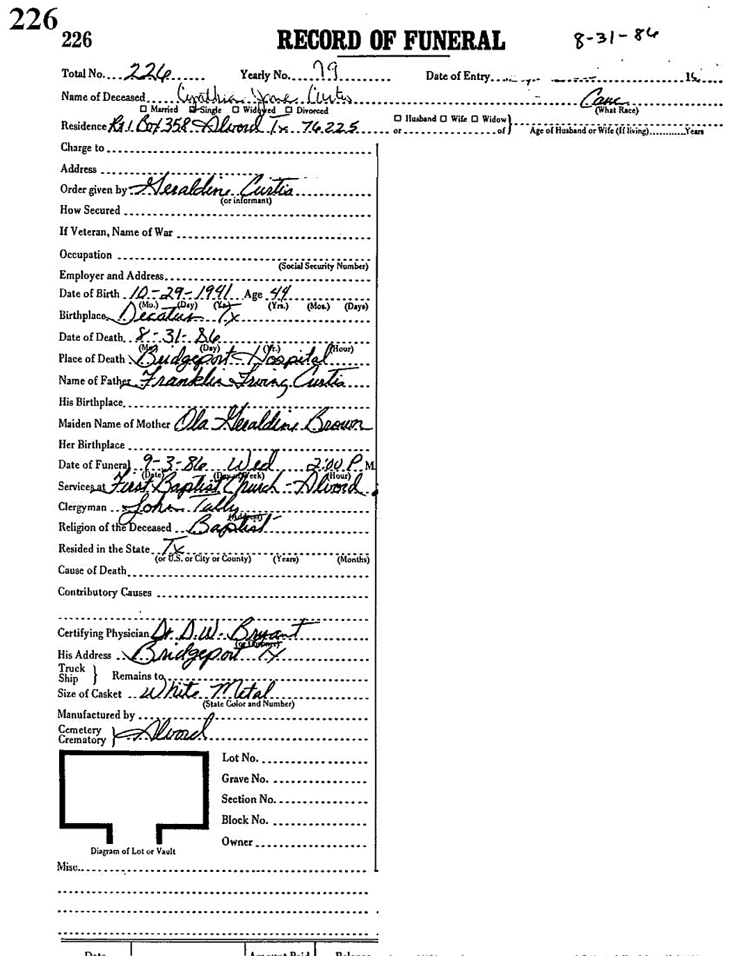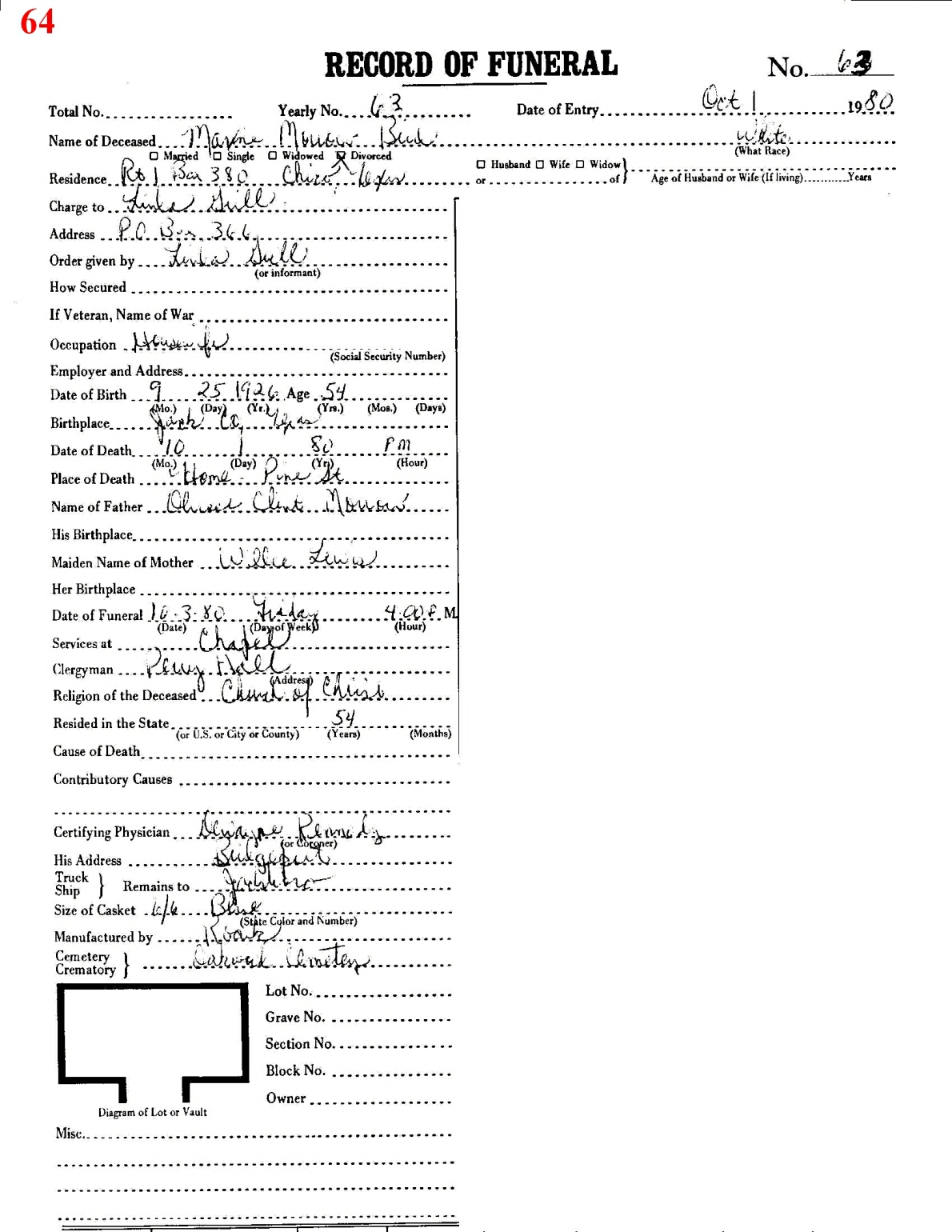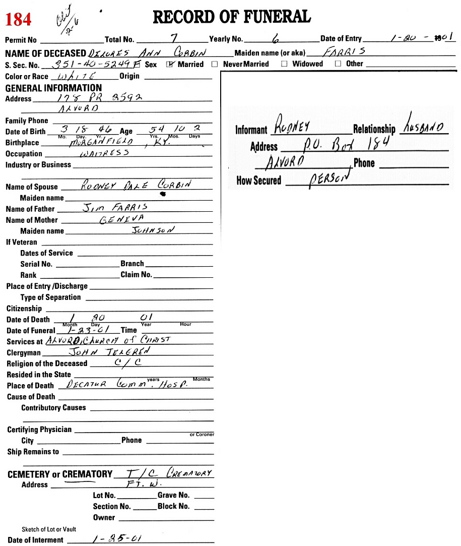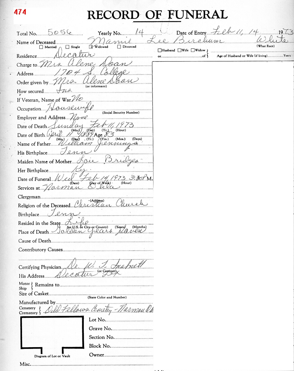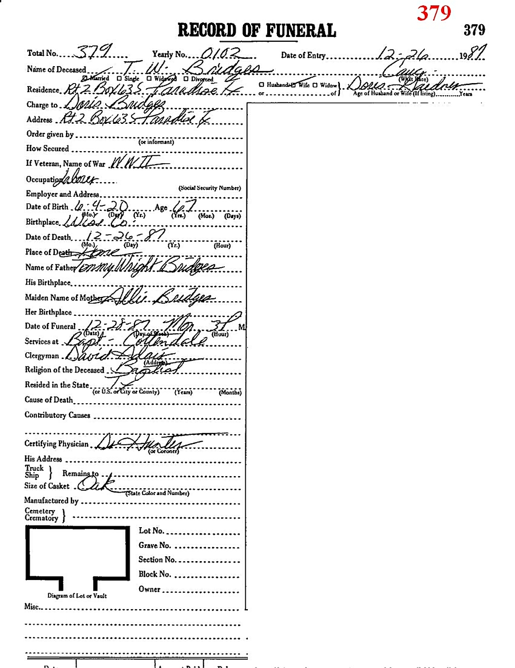 A boy from AR, Killed on railroad Christian Funeral Home C22/C22-254.jpg Aaron, James Thomas Christian Funeral Home C31/C31-110.jpg Abbott, Julia Gage Christian Funeral Home C31/C31-123.jpg Abbott, Lewis Elmer Coker Funeral Home C56/C56-091.jpg Abbott, T. Aleck Christian Funeral Home C35/C35-273.jpg Abbs, James Russell Christian Funeral Home C01/C01-110.jpg Abel, Anto A., Boyd Funeral Home B88/B88-135.jpg Abel, Arlyce Astor, Boyd Funeral File Sheet BF81/BF81-141.jpg Abel, Evelyn Myra Muse, Boyd Funeral File Sheet BF95/BF95-001.jpg Abel, Helen Elizabeth Miller, Boyd Funeral File Sheet BF91/BF91-006.jpg Abel, Helen Miller, Boyd Funeral Home B88/B88-125.jpg Abel, Nancy Jean Prince Coker Funeral Home C64/C64-076.jpg Abel, Walter V. Christian Funeral Home C22/C22-162.jpg Abernathy , Mary Ruth Cook Christian Funeral Home C86/C86-137.jpg Abernathy, Baby of Bill & Edna Earl, Hawkins Funeral Home H63/H63-110.jpg Abernathy, Ella Dora Jackson Christian Funeral Home C39/C39-261.jpg Abernathy, L.D., Mr. Christian Funeral Home C22/C22-269.jpg Abernathy, William Glenn, Hawkins Funeral File Sheet HF87/HF87-107.jpg Abernathy, William Glenn, Hawkins Funeral Home H84/H84-282.jpg Able, Barbara Elizabeth "Betty" Morris Coker Funeral Home C64/C64-215.jpg Able, Carrol Floyd "Crick", Hawkins Funeral File Sheet HF00/HF00-001.jpg Able, Forest Lee Christian Funeral Home C50/C50-017.jpg Able, Thomas Franklin Coker Funeral Home C56/C56-148.jpg Able, William Morgan Coker Funeral Home C56/C56-264a.jpg Able, William Morgan Coker Funeral Home C56/C56-264.jpg Absher, Donald Marion Christian Funeral Home C01/C01-182.jpg Absher, Opal Lee Kaker Hunter, Hawkins Funeral File Sheet HF01/HF01-001.jpg Absher, Ulyses Sherman Christian Funeral Home C31/C31-201.jpg Absher, William P. "Bill", Hawkins Funeral File Sheet HF93/HF93-001.jpg Absher, William P., Hawkins Funeral Home H93/H93-088.jpg Acker, Mary Elizabeth Christian Funeral Home C15/C15-102.jpg Acker, William H., Dr. Christian Funeral Home C22/C22-084.jpg Acola, Marian Elizabeth Woody Christian Funeral Home C98/C98-299.jpg Acola, Sam Christian Funeral Home C80/C80-104.jpg Acola, Sam, Hawkins/Christian Funeral Home HCD80/HCD80-003.jpg Action, Bonnie Lynn Bowser, Hawkins Funeral File Sheet HF73/HF73-0001.jpg Acton, Bonnie Lynn Bauser, Hawkins Funeral Home H80/H80-028.jpg Adair, Betty Darline Christian Funeral Home C45/C45-102.jpg Adair, Carl Sine Christian Funeral Home C45/C45-102.jpg Adair, Ester, Hawkins Funeral File Sheet HF73/HF73-0002.jpg Adama, Randy Dale, Jr., Hawkins Funeral Home H90/H90-110.jpg Adams, Acie Dee Christian Funeral Home C76/C76-098.jpg Adams, Alonzo Bright, Hawkins Funeral Home H61/H61-044.jpg Adams, Audrey, Boyd Funeral Home B88/B88-165.jpg Adams, Barry Carroll, Hawkins Funeral File Sheet HF85/HF85-043.jpg Adams, Beulah Etta Pitts, Hawkins Funeral File Sheet HF73/HF73-0004.jpg Adams, Billy Carroll, Hawkins Funeral Home H84/H84-189.jpg Adams, Carl Victor, Hawkins Funeral Home H68/H68-061.jpg Adams, Ceffie Daisy Craighead Christian Funeral Home C45/C45-155.jpg Adams, Charles Norris, Boyd Funeral File Sheet BF98/BF98-064.jpg Adams, Charlie Bruce Christian Funeral Home C59/C59-090.jpg Adams, Corinne P. Peterson Christian Funeral Home C01/C01-193.jpg Adams, Danny Charles, Boyd Funeral File Sheet BF95/BF95-135.jpg Adams, Dewey Avon, Hawkins Funeral File Sheet HF73/HF73-0003.jpg Adams, Edgar Ross, Hawkins Funeral Home H57/H57-039.jpg Adams, Elmer Justice, Hawkins Funeral Home H66/H66-210.jpg Adams, Eula C. Ingle, Hawkins Funeral Home H69/H69-131.jpg Adams, Garland Wayne, Hawkins Funeral File Sheet HF89/HF89-002.jpg Adams, Garland Wayne, Hawkins Funeral Home H88/H88-126.jpg Adams, George Martain Christian Funeral Home C49/C49-028.jpg Adams, Jerry Dean Christian Funeral Home C73/C73-206.jpg Adams, John Christian Funeral Home C35/C35-289.jpg Adams, John Henry, Hawkins Funeral File Sheet HF01/HF01-002.jpg Adams, John Louis, Hawkins Funeral Home H55/H55-147.jpg Adams, Josie Jones Churchhill Christian Funeral Home C91/C91-116.jpg Adams, Kenney Milton "Ragmop", Boyd Funeral File Sheet BF81/BF81-015.jpg Adams, Laura Sue Coker Funeral Home C27/C27-008.jpg Adams, Leatrice Isabell Moler, Hawkins Funeral File Sheet HF99/HF99-001.jpg Adams, Lera "Gerry" Burnette Woltz, Hawkins Funeral File Sheet HF98/HF98-001.jpg Adams, Leroy Franklin Christian Funeral Home C93/C93-076.jpg Adams, Lillian Josie Christian Funeral Home C73/C73-167.jpg Adams, Margaret Alma Murphy Christian Funeral Home C68/C68-465.jpg Adams, Margaret Iola Parish Christian Funeral Home C95/C95-146.jpg Adams, Marina Helen Young, Hawkins Funeral Home H69/H69-005.jpg Adams, Martha Ann Malone Christian Funeral Home C42/C42-076.jpg Adams, Mary Elizabeth "Betty"(Karen), Hawkins Funeral Home H53/H53-107.jpg Adams, Mary Ferguson Dill, Hawkins Funeral Home H60/H60-031.jpg Adams, Milton Elmore Christian Funeral Home C39/C39-106.jpg Adams, Myrtle Floyd Harris, Hawkins Funeral File Sheet HF01/HF01-003.jpg Adams, Newell Wayne "Bill" Dec 10, 1980 Mrs. Adams Pleasant Grove #1 CL80/CL80-38 Adams, Oma Nov 23, 1981 Bud Adams & Jessie Ragsdale Sweetwater CL80/CL80-107 Adams, Randy Dale, Jr., Hawkins Funeral File Sheet HF91/HF91-001.jpg Adams, Robert Esco, Hawkins Funeral File Sheet HF73/HF73-0005.jpg Adams, Robert Louis, Hawkins Funeral Home H57/H57-171.jpg Adams, Ronald Floyd Christian Funeral Home C89/C89-163.jpg Adams, Sarah F. Christian Funeral Home C45/C45-259.jpg Adams, W., Hawkins Funeral Home H23/H23-148.jpg Adams, William Rosco "Bud" Christian Funeral Home C88/C88-185.jpg Adams, William Walter, Hawkins Funeral Home H61/H61-145.jpg Addington, Jimmy Ray Christian Funeral Home C88/C88-260.jpg Adkins, Lonnie Roe Christian Funeral Home C93/C93-012.jpg Adkins, Paul William, Hawkins Funeral Home H33/H33-091.jpg Adkins, Peggy Mildred Thomas Christian Funeral Home C86/C86-283.jpg Admire, Clarence Holt, Hawkins Funeral Home H57/H57-114.jpg Admire, Willie Audrey King, Hawkins Funeral Home H55/H55-151.jpg Aerni, Lucile Flowers, Hawki
