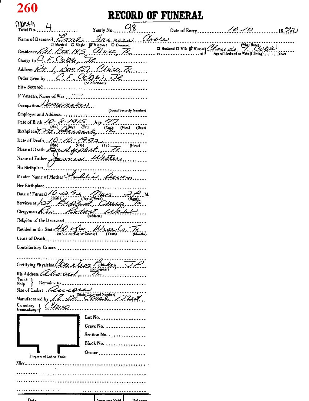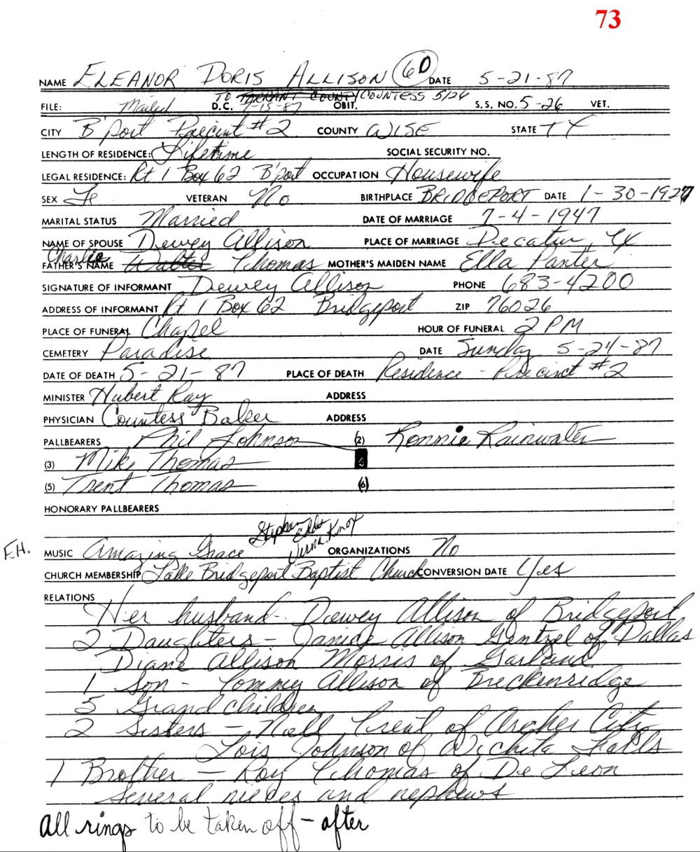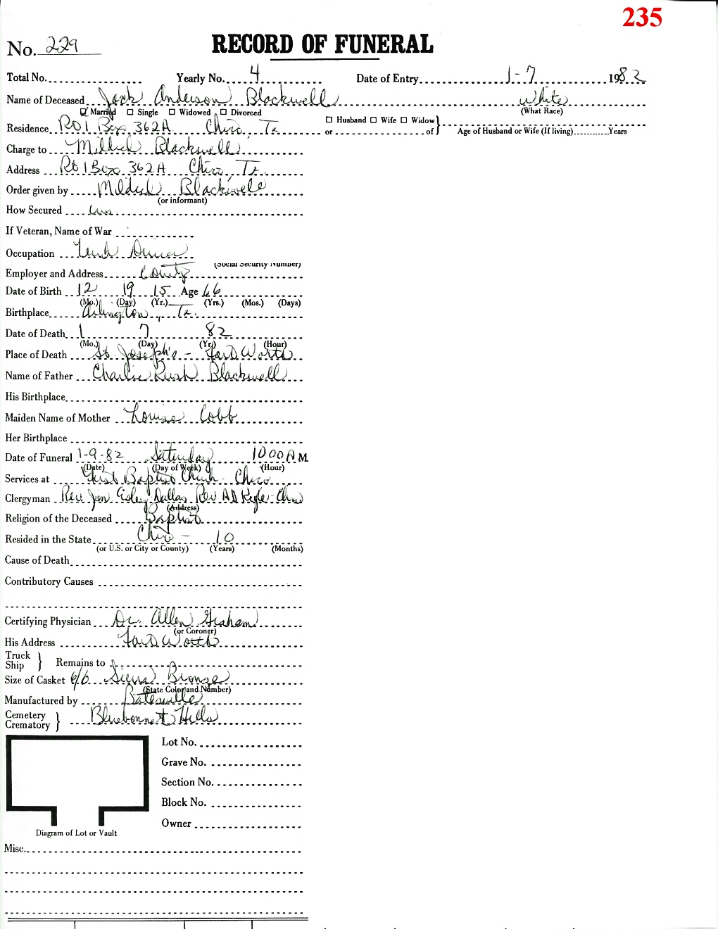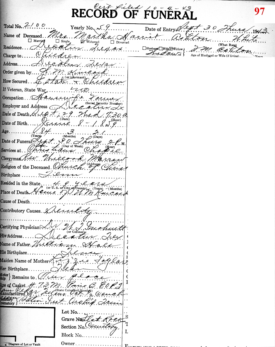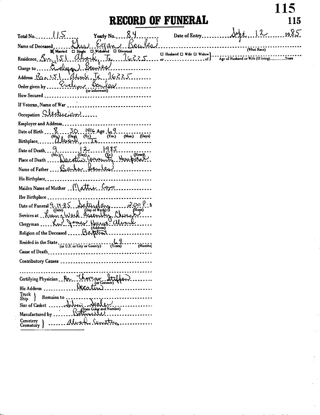 A boy from AR, Killed on railroad Christian Funeral Home C22/C22-254.jpg Aaron, James Thomas Christian Funeral Home C31/C31-110.jpg Abbott, Julia Gage Christian Funeral Home C31/C31-123.jpg Abbott, Lewis Elmer Coker Funeral Home C56/C56-091.jpg Abbott, T. Aleck Christian Funeral Home C35/C35-273.jpg Abbs, James Russell Christian Funeral Home C01/C01-110.jpg Abel, Anto A., Boyd Funeral Home B88/B88-135.jpg Abel, Arlyce Astor, Boyd Funeral File Sheet BF81/BF81-141.jpg Abel, Evelyn Myra Muse, Boyd Funeral File Sheet BF95/BF95-001.jpg Abel, Helen Elizabeth Miller, Boyd Funeral File Sheet BF91/BF91-006.jpg Abel, Helen Miller, Boyd Funeral Home B88/B88-125.jpg Abel, Nancy Jean Prince Coker Funeral Home C64/C64-076.jpg Abel, Walter V. Christian Funeral Home C22/C22-162.jpg Abernathy , Mary Ruth Cook Christian Funeral Home C86/C86-137.jpg Abernathy, Baby of Bill & Edna Earl, Hawkins Funeral Home H63/H63-110.jpg Abernathy, Ella Dora Jackson Christian Funeral Home C39/C39-261.jpg Abernathy, L.D., Mr. Christian Funeral Home C22/C22-269.jpg Abernathy, William Glenn, Hawkins Funeral File Sheet HF87/HF87-107.jpg Abernathy, William Glenn, Hawkins Funeral Home H84/H84-282.jpg Able, Barbara Elizabeth "Betty" Morris Coker Funeral Home C64/C64-215.jpg Able, Carrol Floyd "Crick", Hawkins Funeral File Sheet HF00/HF00-001.jpg Able, Forest Lee Christian Funeral Home C50/C50-017.jpg Able, Thomas Franklin Coker Funeral Home C56/C56-148.jpg Able, William Morgan Coker Funeral Home C56/C56-264a.jpg Able, William Morgan Coker Funeral Home C56/C56-264.jpg Absher, Donald Marion Christian Funeral Home C01/C01-182.jpg Absher, Opal Lee Kaker Hunter, Hawkins Funeral File Sheet HF01/HF01-001.jpg Absher, Ulyses Sherman Christian Funeral Home C31/C31-201.jpg Absher, William P. "Bill", Hawkins Funeral File Sheet HF93/HF93-001.jpg Absher, William P., Hawkins Funeral Home H93/H93-088.jpg Acker, Mary Elizabeth Christian Funeral Home C15/C15-102.jpg Acker, William H., Dr. Christian Funeral Home C22/C22-084.jpg Acola, Marian Elizabeth Woody Christian Funeral Home C98/C98-299.jpg Acola, Sam Christian Funeral Home C80/C80-104.jpg Acola, Sam, Hawkins/Christian Funeral Home HCD80/HCD80-003.jpg Action, Bonnie Lynn Bowser, Hawkins Funeral File Sheet HF73/HF73-0001.jpg Acton, Bonnie Lynn Bauser, Hawkins Funeral Home H80/H80-028.jpg Adair, Betty Darline Christian Funeral Home C45/C45-102.jpg Adair, Carl Sine Christian Funeral Home C45/C45-102.jpg Adair, Ester, Hawkins Funeral File Sheet HF73/HF73-0002.jpg Adama, Randy Dale, Jr., Hawkins Funeral Home H90/H90-110.jpg Adams, Acie Dee Christian Funeral Home C76/C76-098.jpg Adams, Alonzo Bright, Hawkins Funeral Home H61/H61-044.jpg Adams, Audrey, Boyd Funeral Home B88/B88-165.jpg Adams, Barry Carroll, Hawkins Funeral File Sheet HF85/HF85-043.jpg Adams, Beulah Etta Pitts, Hawkins Funeral File Sheet HF73/HF73-0004.jpg Adams, Billy Carroll, Hawkins Funeral Home H84/H84-189.jpg Adams, Carl Victor, Hawkins Funeral Home H68/H68-061.jpg Adams, Ceffie Daisy Craighead Christian Funeral Home C45/C45-155.jpg Adams, Charles Norris, Boyd Funeral File Sheet BF98/BF98-064.jpg Adams, Charlie Bruce Christian Funeral Home C59/C59-090.jpg Adams, Corinne P. Peterson Christian Funeral Home C01/C01-193.jpg Adams, Danny Charles, Boyd Funeral File Sheet BF95/BF95-135.jpg Adams, Dewey Avon, Hawkins Funeral File Sheet HF73/HF73-0003.jpg Adams, Edgar Ross, Hawkins Funeral Home H57/H57-039.jpg Adams, Elmer Justice, Hawkins Funeral Home H66/H66-210.jpg Adams, Eula C. Ingle, Hawkins Funeral Home H69/H69-131.jpg Adams, Garland Wayne, Hawkins Funeral File Sheet HF89/HF89-002.jpg Adams, Garland Wayne, Hawkins Funeral Home H88/H88-126.jpg Adams, George Martain Christian Funeral Home C49/C49-028.jpg Adams, Jerry Dean Christian Funeral Home C73/C73-206.jpg Adams, John Christian Funeral Home C35/C35-289.jpg Adams, John Henry, Hawkins Funeral File Sheet HF01/HF01-002.jpg Adams, John Louis, Hawkins Funeral Home H55/H55-147.jpg Adams, Josie Jones Churchhill Christian Funeral Home C91/C91-116.jpg Adams, Kenney Milton "Ragmop", Boyd Funeral File Sheet BF81/BF81-015.jpg Adams, Laura Sue Coker Funeral Home C27/C27-008.jpg Adams, Leatrice Isabell Moler, Hawkins Funeral File Sheet HF99/HF99-001.jpg Adams, Lera "Gerry" Burnette Woltz, Hawkins Funeral File Sheet HF98/HF98-001.jpg Adams, Leroy Franklin Christian Funeral Home C93/C93-076.jpg Adams, Lillian Josie Christian Funeral Home C73/C73-167.jpg Adams, Margaret Alma Murphy Christian Funeral Home C68/C68-465.jpg Adams, Margaret Iola Parish Christian Funeral Home C95/C95-146.jpg Adams, Marina Helen Young, Hawkins Funeral Home H69/H69-005.jpg Adams, Martha Ann Malone Christian Funeral Home C42/C42-076.jpg Adams, Mary Elizabeth "Betty"(Karen), Hawkins Funeral Home H53/H53-107.jpg Adams, Mary Ferguson Dill, Hawkins Funeral Home H60/H60-031.jpg Adams, Milton Elmore Christian Funeral Home C39/C39-106.jpg Adams, Myrtle Floyd Harris, Hawkins Funeral File Sheet HF01/HF01-003.jpg Adams, Newell Wayne "Bill" Dec 10, 1980 Mrs. Adams Pleasant Grove #1 CL80/CL80-38 Adams, Oma Nov 23, 1981 Bud Adams & Jessie Ragsdale Sweetwater CL80/CL80-107 Adams, Randy Dale, Jr., Hawkins Funeral File Sheet HF91/HF91-001.jpg Adams, Robert Esco, Hawkins Funeral File Sheet HF73/HF73-0005.jpg Adams, Robert Louis, Hawkins Funeral Home H57/H57-171.jpg Adams, Ronald Floyd Christian Funeral Home C89/C89-163.jpg Adams, Sarah F. Christian Funeral Home C45/C45-259.jpg Adams, W., Hawkins Funeral Home H23/H23-148.jpg Adams, William Rosco "Bud" Christian Funeral Home C88/C88-185.jpg Adams, William Walter, Hawkins Funeral Home H61/H61-145.jpg Addington, Jimmy Ray Christian Funeral Home C88/C88-260.jpg Adkins, Lonnie Roe Christian Funeral Home C93/C93-012.jpg Adkins, Paul William, Hawkins Funeral Home H33/H33-091.jpg Adkins, Peggy Mildred Thomas Christian Funeral Home C86/C86-283.jpg Admire, Clarence Holt, Hawkins Funeral Home H57/H57-114.jpg Admire, Willie Audrey King, Hawkins Funeral Home H55/H55-151.jpg Aerni, Lucile Flowers, Hawki