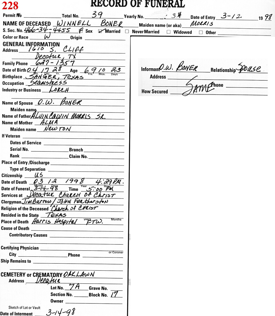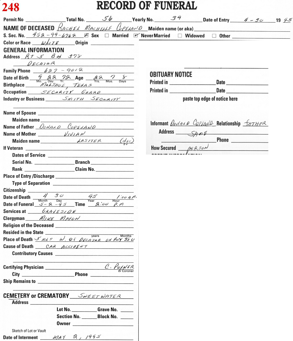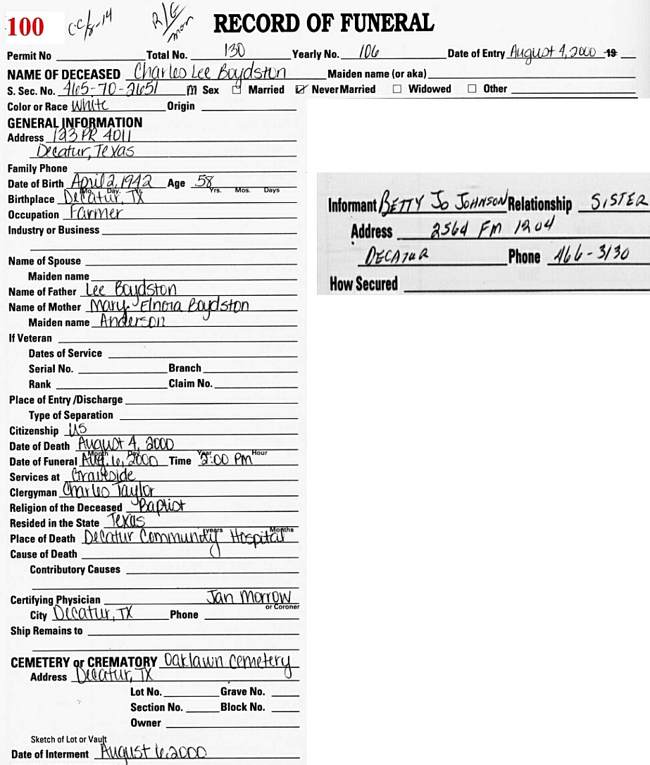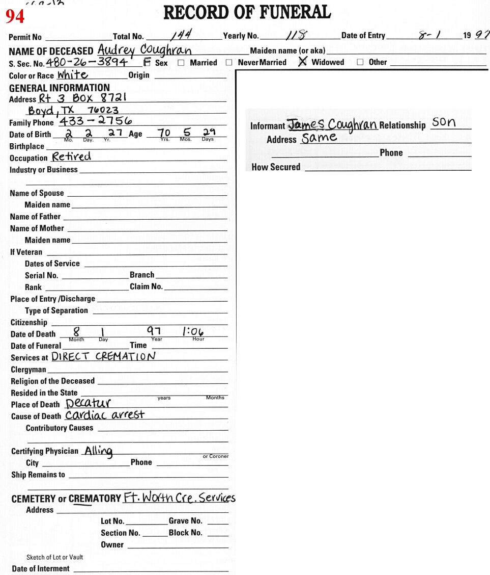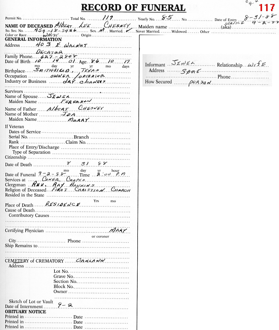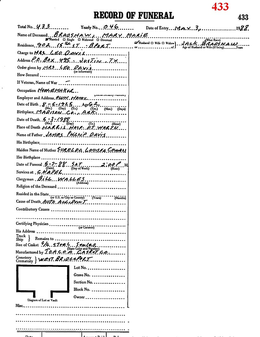 A boy from AR, Killed on railroad Christian Funeral Home C22/C22-254.jpg Aaron, James Thomas Christian Funeral Home C31/C31-110.jpg Abbott, Julia Gage Christian Funeral Home C31/C31-123.jpg Abbott, Lewis Elmer Coker Funeral Home C56/C56-091.jpg Abbott, T. Aleck Christian Funeral Home C35/C35-273.jpg Abbs, James Russell Christian Funeral Home C01/C01-110.jpg Abel, Anto A., Boyd Funeral Home B88/B88-135.jpg Abel, Arlyce Astor, Boyd Funeral File Sheet BF81/BF81-141.jpg Abel, Evelyn Myra Muse, Boyd Funeral File Sheet BF95/BF95-001.jpg Abel, Helen Elizabeth Miller, Boyd Funeral File Sheet BF91/BF91-006.jpg Abel, Helen Miller, Boyd Funeral Home B88/B88-125.jpg Abel, Nancy Jean Prince Coker Funeral Home C64/C64-076.jpg Abel, Walter V. Christian Funeral Home C22/C22-162.jpg Abernathy , Mary Ruth Cook Christian Funeral Home C86/C86-137.jpg Abernathy, Baby of Bill & Edna Earl, Hawkins Funeral Home H63/H63-110.jpg Abernathy, Ella Dora Jackson Christian Funeral Home C39/C39-261.jpg Abernathy, L.D., Mr. Christian Funeral Home C22/C22-269.jpg Abernathy, William Glenn, Hawkins Funeral File Sheet HF87/HF87-107.jpg Abernathy, William Glenn, Hawkins Funeral Home H84/H84-282.jpg Able, Barbara Elizabeth "Betty" Morris Coker Funeral Home C64/C64-215.jpg Able, Carrol Floyd "Crick", Hawkins Funeral File Sheet HF00/HF00-001.jpg Able, Forest Lee Christian Funeral Home C50/C50-017.jpg Able, Thomas Franklin Coker Funeral Home C56/C56-148.jpg Able, William Morgan Coker Funeral Home C56/C56-264a.jpg Able, William Morgan Coker Funeral Home C56/C56-264.jpg Absher, Donald Marion Christian Funeral Home C01/C01-182.jpg Absher, Opal Lee Kaker Hunter, Hawkins Funeral File Sheet HF01/HF01-001.jpg Absher, Ulyses Sherman Christian Funeral Home C31/C31-201.jpg Absher, William P. "Bill", Hawkins Funeral File Sheet HF93/HF93-001.jpg Absher, William P., Hawkins Funeral Home H93/H93-088.jpg Acker, Mary Elizabeth Christian Funeral Home C15/C15-102.jpg Acker, William H., Dr. Christian Funeral Home C22/C22-084.jpg Acola, Marian Elizabeth Woody Christian Funeral Home C98/C98-299.jpg Acola, Sam Christian Funeral Home C80/C80-104.jpg Acola, Sam, Hawkins/Christian Funeral Home HCD80/HCD80-003.jpg Action, Bonnie Lynn Bowser, Hawkins Funeral File Sheet HF73/HF73-0001.jpg Acton, Bonnie Lynn Bauser, Hawkins Funeral Home H80/H80-028.jpg Adair, Betty Darline Christian Funeral Home C45/C45-102.jpg Adair, Carl Sine Christian Funeral Home C45/C45-102.jpg Adair, Ester, Hawkins Funeral File Sheet HF73/HF73-0002.jpg Adama, Randy Dale, Jr., Hawkins Funeral Home H90/H90-110.jpg Adams, Acie Dee Christian Funeral Home C76/C76-098.jpg Adams, Alonzo Bright, Hawkins Funeral Home H61/H61-044.jpg Adams, Audrey, Boyd Funeral Home B88/B88-165.jpg Adams, Barry Carroll, Hawkins Funeral File Sheet HF85/HF85-043.jpg Adams, Beulah Etta Pitts, Hawkins Funeral File Sheet HF73/HF73-0004.jpg Adams, Billy Carroll, Hawkins Funeral Home H84/H84-189.jpg Adams, Carl Victor, Hawkins Funeral Home H68/H68-061.jpg Adams, Ceffie Daisy Craighead Christian Funeral Home C45/C45-155.jpg Adams, Charles Norris, Boyd Funeral File Sheet BF98/BF98-064.jpg Adams, Charlie Bruce Christian Funeral Home C59/C59-090.jpg Adams, Corinne P. Peterson Christian Funeral Home C01/C01-193.jpg Adams, Danny Charles, Boyd Funeral File Sheet BF95/BF95-135.jpg Adams, Dewey Avon, Hawkins Funeral File Sheet HF73/HF73-0003.jpg Adams, Edgar Ross, Hawkins Funeral Home H57/H57-039.jpg Adams, Elmer Justice, Hawkins Funeral Home H66/H66-210.jpg Adams, Eula C. Ingle, Hawkins Funeral Home H69/H69-131.jpg Adams, Garland Wayne, Hawkins Funeral File Sheet HF89/HF89-002.jpg Adams, Garland Wayne, Hawkins Funeral Home H88/H88-126.jpg Adams, George Martain Christian Funeral Home C49/C49-028.jpg Adams, Jerry Dean Christian Funeral Home C73/C73-206.jpg Adams, John Christian Funeral Home C35/C35-289.jpg Adams, John Henry, Hawkins Funeral File Sheet HF01/HF01-002.jpg Adams, John Louis, Hawkins Funeral Home H55/H55-147.jpg Adams, Josie Jones Churchhill Christian Funeral Home C91/C91-116.jpg Adams, Kenney Milton "Ragmop", Boyd Funeral File Sheet BF81/BF81-015.jpg Adams, Laura Sue Coker Funeral Home C27/C27-008.jpg Adams, Leatrice Isabell Moler, Hawkins Funeral File Sheet HF99/HF99-001.jpg Adams, Lera "Gerry" Burnette Woltz, Hawkins Funeral File Sheet HF98/HF98-001.jpg Adams, Leroy Franklin Christian Funeral Home C93/C93-076.jpg Adams, Lillian Josie Christian Funeral Home C73/C73-167.jpg Adams, Margaret Alma Murphy Christian Funeral Home C68/C68-465.jpg Adams, Margaret Iola Parish Christian Funeral Home C95/C95-146.jpg Adams, Marina Helen Young, Hawkins Funeral Home H69/H69-005.jpg Adams, Martha Ann Malone Christian Funeral Home C42/C42-076.jpg Adams, Mary Elizabeth "Betty"(Karen), Hawkins Funeral Home H53/H53-107.jpg Adams, Mary Ferguson Dill, Hawkins Funeral Home H60/H60-031.jpg Adams, Milton Elmore Christian Funeral Home C39/C39-106.jpg Adams, Myrtle Floyd Harris, Hawkins Funeral File Sheet HF01/HF01-003.jpg Adams, Newell Wayne "Bill" Dec 10, 1980 Mrs. Adams Pleasant Grove #1 CL80/CL80-38 Adams, Oma Nov 23, 1981 Bud Adams & Jessie Ragsdale Sweetwater CL80/CL80-107 Adams, Randy Dale, Jr., Hawkins Funeral File Sheet HF91/HF91-001.jpg Adams, Robert Esco, Hawkins Funeral File Sheet HF73/HF73-0005.jpg Adams, Robert Louis, Hawkins Funeral Home H57/H57-171.jpg Adams, Ronald Floyd Christian Funeral Home C89/C89-163.jpg Adams, Sarah F. Christian Funeral Home C45/C45-259.jpg Adams, W., Hawkins Funeral Home H23/H23-148.jpg Adams, William Rosco "Bud" Christian Funeral Home C88/C88-185.jpg Adams, William Walter, Hawkins Funeral Home H61/H61-145.jpg Addington, Jimmy Ray Christian Funeral Home C88/C88-260.jpg Adkins, Lonnie Roe Christian Funeral Home C93/C93-012.jpg Adkins, Paul William, Hawkins Funeral Home H33/H33-091.jpg Adkins, Peggy Mildred Thomas Christian Funeral Home C86/C86-283.jpg Admire, Clarence Holt, Hawkins Funeral Home H57/H57-114.jpg Admire, Willie Audrey King, Hawkins Funeral Home H55/H55-151.jpg Aerni, Lucile Flowers, Hawki
