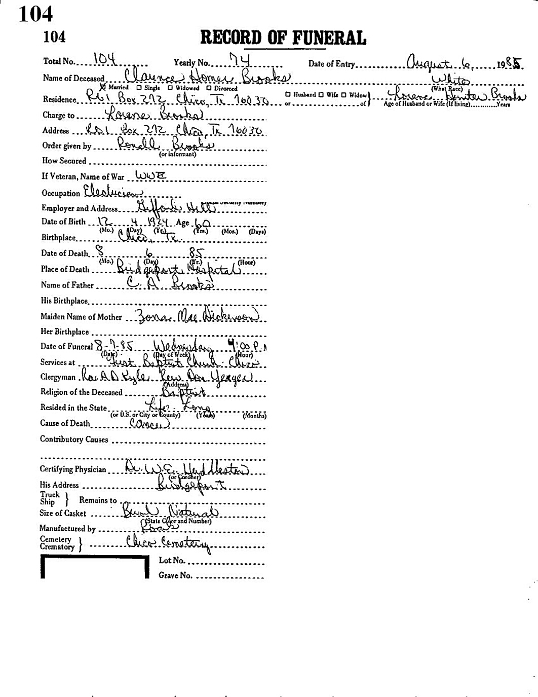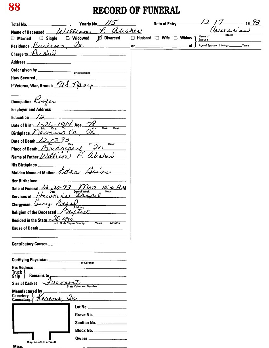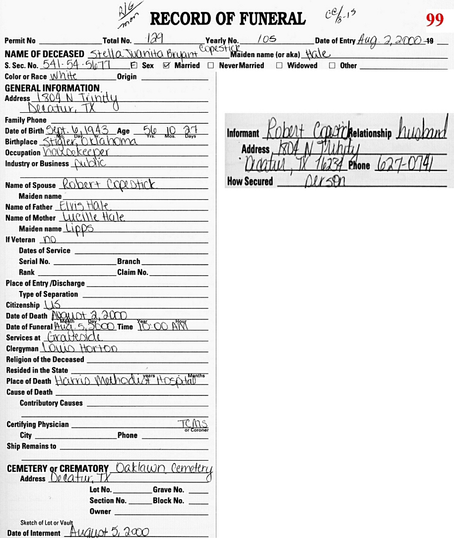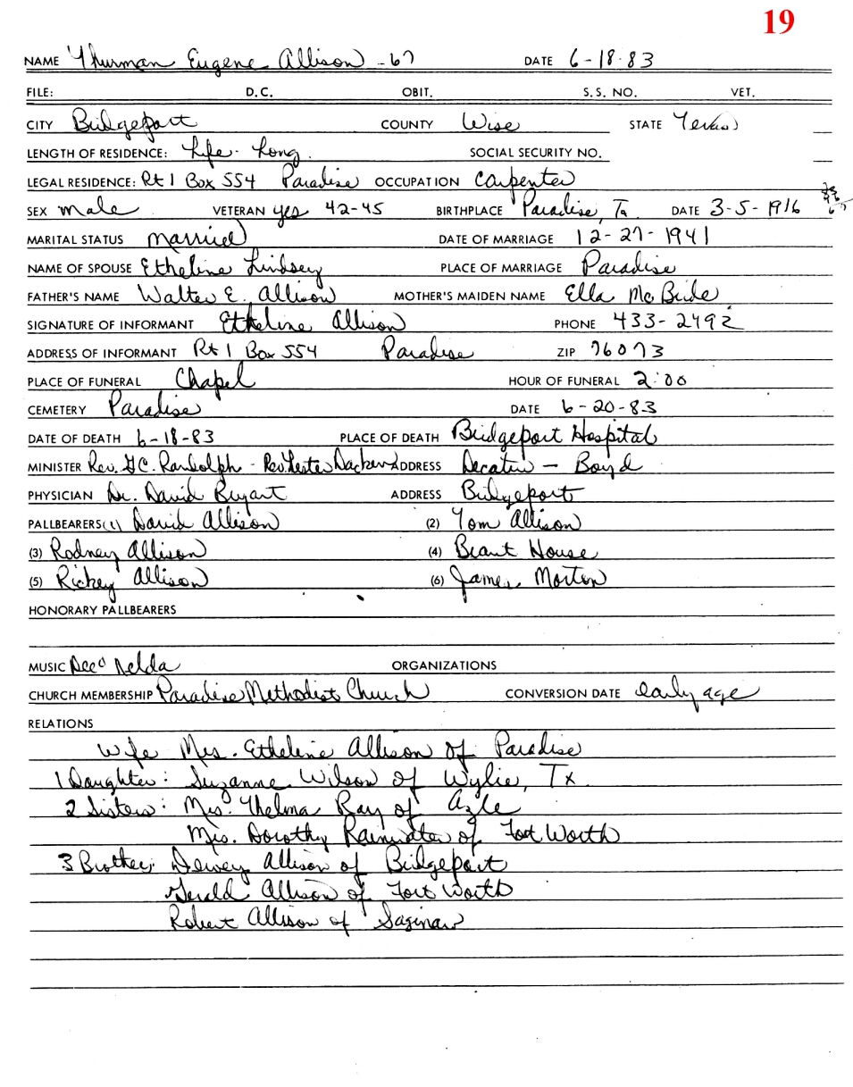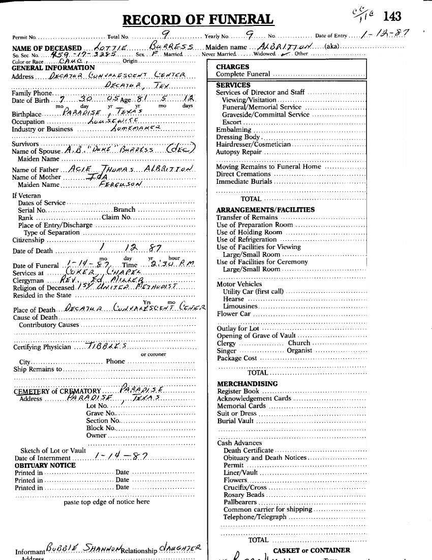 A boy from AR, Killed on railroad Christian Funeral Home C22/C22-254.jpg Aaron, James Thomas Christian Funeral Home C31/C31-110.jpg Abbott, Julia Gage Christian Funeral Home C31/C31-123.jpg Abbott, Lewis Elmer Coker Funeral Home C56/C56-091.jpg Abbott, T. Aleck Christian Funeral Home C35/C35-273.jpg Abbs, James Russell Christian Funeral Home C01/C01-110.jpg Abel, Anto A., Boyd Funeral Home B88/B88-135.jpg Abel, Arlyce Astor, Boyd Funeral File Sheet BF81/BF81-141.jpg Abel, Evelyn Myra Muse, Boyd Funeral File Sheet BF95/BF95-001.jpg Abel, Helen Elizabeth Miller, Boyd Funeral File Sheet BF91/BF91-006.jpg Abel, Helen Miller, Boyd Funeral Home B88/B88-125.jpg Abel, Nancy Jean Prince Coker Funeral Home C64/C64-076.jpg Abel, Walter V. Christian Funeral Home C22/C22-162.jpg Abernathy , Mary Ruth Cook Christian Funeral Home C86/C86-137.jpg Abernathy, Baby of Bill & Edna Earl, Hawkins Funeral Home H63/H63-110.jpg Abernathy, Ella Dora Jackson Christian Funeral Home C39/C39-261.jpg Abernathy, L.D., Mr. Christian Funeral Home C22/C22-269.jpg Abernathy, William Glenn, Hawkins Funeral File Sheet HF87/HF87-107.jpg Abernathy, William Glenn, Hawkins Funeral Home H84/H84-282.jpg Able, Barbara Elizabeth "Betty" Morris Coker Funeral Home C64/C64-215.jpg Able, Carrol Floyd "Crick", Hawkins Funeral File Sheet HF00/HF00-001.jpg Able, Forest Lee Christian Funeral Home C50/C50-017.jpg Able, Thomas Franklin Coker Funeral Home C56/C56-148.jpg Able, William Morgan Coker Funeral Home C56/C56-264a.jpg Able, William Morgan Coker Funeral Home C56/C56-264.jpg Absher, Donald Marion Christian Funeral Home C01/C01-182.jpg Absher, Opal Lee Kaker Hunter, Hawkins Funeral File Sheet HF01/HF01-001.jpg Absher, Ulyses Sherman Christian Funeral Home C31/C31-201.jpg Absher, William P. "Bill", Hawkins Funeral File Sheet HF93/HF93-001.jpg Absher, William P., Hawkins Funeral Home H93/H93-088.jpg Acker, Mary Elizabeth Christian Funeral Home C15/C15-102.jpg Acker, William H., Dr. Christian Funeral Home C22/C22-084.jpg Acola, Marian Elizabeth Woody Christian Funeral Home C98/C98-299.jpg Acola, Sam Christian Funeral Home C80/C80-104.jpg Acola, Sam, Hawkins/Christian Funeral Home HCD80/HCD80-003.jpg Action, Bonnie Lynn Bowser, Hawkins Funeral File Sheet HF73/HF73-0001.jpg Acton, Bonnie Lynn Bauser, Hawkins Funeral Home H80/H80-028.jpg Adair, Betty Darline Christian Funeral Home C45/C45-102.jpg Adair, Carl Sine Christian Funeral Home C45/C45-102.jpg Adair, Ester, Hawkins Funeral File Sheet HF73/HF73-0002.jpg Adama, Randy Dale, Jr., Hawkins Funeral Home H90/H90-110.jpg Adams, Acie Dee Christian Funeral Home C76/C76-098.jpg Adams, Alonzo Bright, Hawkins Funeral Home H61/H61-044.jpg Adams, Audrey, Boyd Funeral Home B88/B88-165.jpg Adams, Barry Carroll, Hawkins Funeral File Sheet HF85/HF85-043.jpg Adams, Beulah Etta Pitts, Hawkins Funeral File Sheet HF73/HF73-0004.jpg Adams, Billy Carroll, Hawkins Funeral Home H84/H84-189.jpg Adams, Carl Victor, Hawkins Funeral Home H68/H68-061.jpg Adams, Ceffie Daisy Craighead Christian Funeral Home C45/C45-155.jpg Adams, Charles Norris, Boyd Funeral File Sheet BF98/BF98-064.jpg Adams, Charlie Bruce Christian Funeral Home C59/C59-090.jpg Adams, Corinne P. Peterson Christian Funeral Home C01/C01-193.jpg Adams, Danny Charles, Boyd Funeral File Sheet BF95/BF95-135.jpg Adams, Dewey Avon, Hawkins Funeral File Sheet HF73/HF73-0003.jpg Adams, Edgar Ross, Hawkins Funeral Home H57/H57-039.jpg Adams, Elmer Justice, Hawkins Funeral Home H66/H66-210.jpg Adams, Eula C. Ingle, Hawkins Funeral Home H69/H69-131.jpg Adams, Garland Wayne, Hawkins Funeral File Sheet HF89/HF89-002.jpg Adams, Garland Wayne, Hawkins Funeral Home H88/H88-126.jpg Adams, George Martain Christian Funeral Home C49/C49-028.jpg Adams, Jerry Dean Christian Funeral Home C73/C73-206.jpg Adams, John Christian Funeral Home C35/C35-289.jpg Adams, John Henry, Hawkins Funeral File Sheet HF01/HF01-002.jpg Adams, John Louis, Hawkins Funeral Home H55/H55-147.jpg Adams, Josie Jones Churchhill Christian Funeral Home C91/C91-116.jpg Adams, Kenney Milton "Ragmop", Boyd Funeral File Sheet BF81/BF81-015.jpg Adams, Laura Sue Coker Funeral Home C27/C27-008.jpg Adams, Leatrice Isabell Moler, Hawkins Funeral File Sheet HF99/HF99-001.jpg Adams, Lera "Gerry" Burnette Woltz, Hawkins Funeral File Sheet HF98/HF98-001.jpg Adams, Leroy Franklin Christian Funeral Home C93/C93-076.jpg Adams, Lillian Josie Christian Funeral Home C73/C73-167.jpg Adams, Margaret Alma Murphy Christian Funeral Home C68/C68-465.jpg Adams, Margaret Iola Parish Christian Funeral Home C95/C95-146.jpg Adams, Marina Helen Young, Hawkins Funeral Home H69/H69-005.jpg Adams, Martha Ann Malone Christian Funeral Home C42/C42-076.jpg Adams, Mary Elizabeth "Betty"(Karen), Hawkins Funeral Home H53/H53-107.jpg Adams, Mary Ferguson Dill, Hawkins Funeral Home H60/H60-031.jpg Adams, Milton Elmore Christian Funeral Home C39/C39-106.jpg Adams, Myrtle Floyd Harris, Hawkins Funeral File Sheet HF01/HF01-003.jpg Adams, Newell Wayne "Bill" Dec 10, 1980 Mrs. Adams Pleasant Grove #1 CL80/CL80-38 Adams, Oma Nov 23, 1981 Bud Adams & Jessie Ragsdale Sweetwater CL80/CL80-107 Adams, Randy Dale, Jr., Hawkins Funeral File Sheet HF91/HF91-001.jpg Adams, Robert Esco, Hawkins Funeral File Sheet HF73/HF73-0005.jpg Adams, Robert Louis, Hawkins Funeral Home H57/H57-171.jpg Adams, Ronald Floyd Christian Funeral Home C89/C89-163.jpg Adams, Sarah F. Christian Funeral Home C45/C45-259.jpg Adams, W., Hawkins Funeral Home H23/H23-148.jpg Adams, William Rosco "Bud" Christian Funeral Home C88/C88-185.jpg Adams, William Walter, Hawkins Funeral Home H61/H61-145.jpg Addington, Jimmy Ray Christian Funeral Home C88/C88-260.jpg Adkins, Lonnie Roe Christian Funeral Home C93/C93-012.jpg Adkins, Paul William, Hawkins Funeral Home H33/H33-091.jpg Adkins, Peggy Mildred Thomas Christian Funeral Home C86/C86-283.jpg Admire, Clarence Holt, Hawkins Funeral Home H57/H57-114.jpg Admire, Willie Audrey King, Hawkins Funeral Home H55/H55-151.jpg Aerni, Lucile Flowers, Hawki