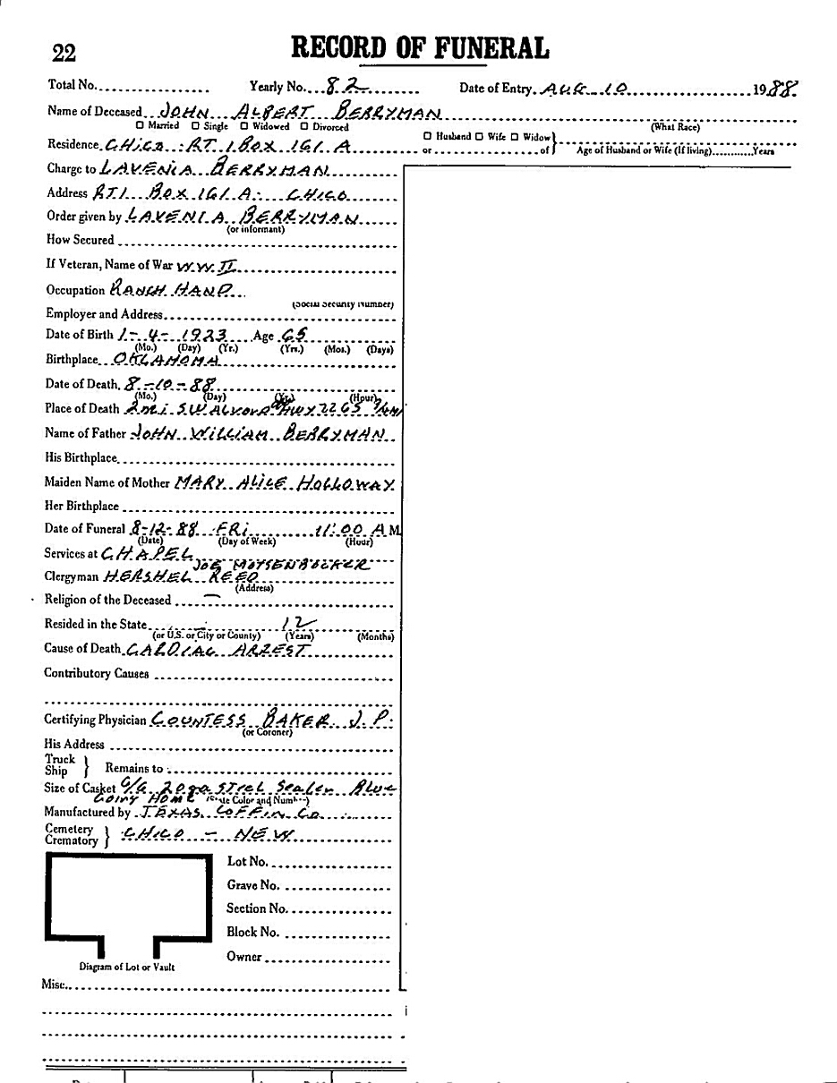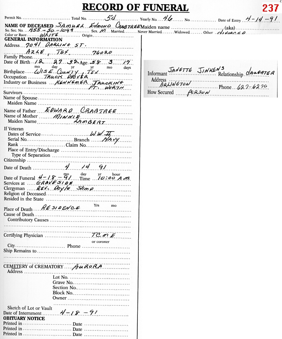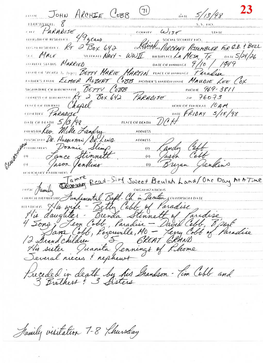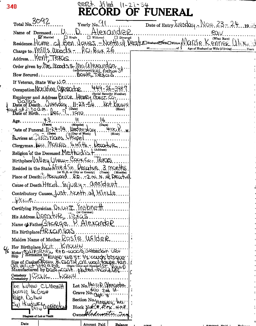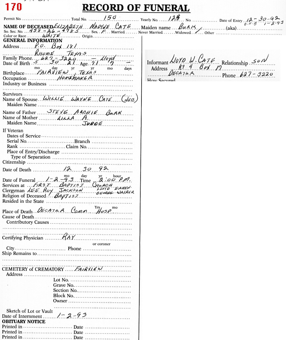 A boy from AR, Killed on railroad Christian Funeral Home C22/C22-254.jpg Aaron, James Thomas Christian Funeral Home C31/C31-110.jpg Abbott, Julia Gage Christian Funeral Home C31/C31-123.jpg Abbott, Lewis Elmer Coker Funeral Home C56/C56-091.jpg Abbott, T. Aleck Christian Funeral Home C35/C35-273.jpg Abbs, James Russell Christian Funeral Home C01/C01-110.jpg Abel, Anto A., Boyd Funeral Home B88/B88-135.jpg Abel, Arlyce Astor, Boyd Funeral File Sheet BF81/BF81-141.jpg Abel, Evelyn Myra Muse, Boyd Funeral File Sheet BF95/BF95-001.jpg Abel, Helen Elizabeth Miller, Boyd Funeral File Sheet BF91/BF91-006.jpg Abel, Helen Miller, Boyd Funeral Home B88/B88-125.jpg Abel, Nancy Jean Prince Coker Funeral Home C64/C64-076.jpg Abel, Walter V. Christian Funeral Home C22/C22-162.jpg Abernathy , Mary Ruth Cook Christian Funeral Home C86/C86-137.jpg Abernathy, Baby of Bill & Edna Earl, Hawkins Funeral Home H63/H63-110.jpg Abernathy, Ella Dora Jackson Christian Funeral Home C39/C39-261.jpg Abernathy, L.D., Mr. Christian Funeral Home C22/C22-269.jpg Abernathy, William Glenn, Hawkins Funeral File Sheet HF87/HF87-107.jpg Abernathy, William Glenn, Hawkins Funeral Home H84/H84-282.jpg Able, Barbara Elizabeth "Betty" Morris Coker Funeral Home C64/C64-215.jpg Able, Carrol Floyd "Crick", Hawkins Funeral File Sheet HF00/HF00-001.jpg Able, Forest Lee Christian Funeral Home C50/C50-017.jpg Able, Thomas Franklin Coker Funeral Home C56/C56-148.jpg Able, William Morgan Coker Funeral Home C56/C56-264a.jpg Able, William Morgan Coker Funeral Home C56/C56-264.jpg Absher, Donald Marion Christian Funeral Home C01/C01-182.jpg Absher, Opal Lee Kaker Hunter, Hawkins Funeral File Sheet HF01/HF01-001.jpg Absher, Ulyses Sherman Christian Funeral Home C31/C31-201.jpg Absher, William P. "Bill", Hawkins Funeral File Sheet HF93/HF93-001.jpg Absher, William P., Hawkins Funeral Home H93/H93-088.jpg Acker, Mary Elizabeth Christian Funeral Home C15/C15-102.jpg Acker, William H., Dr. Christian Funeral Home C22/C22-084.jpg Acola, Marian Elizabeth Woody Christian Funeral Home C98/C98-299.jpg Acola, Sam Christian Funeral Home C80/C80-104.jpg Acola, Sam, Hawkins/Christian Funeral Home HCD80/HCD80-003.jpg Action, Bonnie Lynn Bowser, Hawkins Funeral File Sheet HF73/HF73-0001.jpg Acton, Bonnie Lynn Bauser, Hawkins Funeral Home H80/H80-028.jpg Adair, Betty Darline Christian Funeral Home C45/C45-102.jpg Adair, Carl Sine Christian Funeral Home C45/C45-102.jpg Adair, Ester, Hawkins Funeral File Sheet HF73/HF73-0002.jpg Adama, Randy Dale, Jr., Hawkins Funeral Home H90/H90-110.jpg Adams, Acie Dee Christian Funeral Home C76/C76-098.jpg Adams, Alonzo Bright, Hawkins Funeral Home H61/H61-044.jpg Adams, Audrey, Boyd Funeral Home B88/B88-165.jpg Adams, Barry Carroll, Hawkins Funeral File Sheet HF85/HF85-043.jpg Adams, Beulah Etta Pitts, Hawkins Funeral File Sheet HF73/HF73-0004.jpg Adams, Billy Carroll, Hawkins Funeral Home H84/H84-189.jpg Adams, Carl Victor, Hawkins Funeral Home H68/H68-061.jpg Adams, Ceffie Daisy Craighead Christian Funeral Home C45/C45-155.jpg Adams, Charles Norris, Boyd Funeral File Sheet BF98/BF98-064.jpg Adams, Charlie Bruce Christian Funeral Home C59/C59-090.jpg Adams, Corinne P. Peterson Christian Funeral Home C01/C01-193.jpg Adams, Danny Charles, Boyd Funeral File Sheet BF95/BF95-135.jpg Adams, Dewey Avon, Hawkins Funeral File Sheet HF73/HF73-0003.jpg Adams, Edgar Ross, Hawkins Funeral Home H57/H57-039.jpg Adams, Elmer Justice, Hawkins Funeral Home H66/H66-210.jpg Adams, Eula C. Ingle, Hawkins Funeral Home H69/H69-131.jpg Adams, Garland Wayne, Hawkins Funeral File Sheet HF89/HF89-002.jpg Adams, Garland Wayne, Hawkins Funeral Home H88/H88-126.jpg Adams, George Martain Christian Funeral Home C49/C49-028.jpg Adams, Jerry Dean Christian Funeral Home C73/C73-206.jpg Adams, John Christian Funeral Home C35/C35-289.jpg Adams, John Henry, Hawkins Funeral File Sheet HF01/HF01-002.jpg Adams, John Louis, Hawkins Funeral Home H55/H55-147.jpg Adams, Josie Jones Churchhill Christian Funeral Home C91/C91-116.jpg Adams, Kenney Milton "Ragmop", Boyd Funeral File Sheet BF81/BF81-015.jpg Adams, Laura Sue Coker Funeral Home C27/C27-008.jpg Adams, Leatrice Isabell Moler, Hawkins Funeral File Sheet HF99/HF99-001.jpg Adams, Lera "Gerry" Burnette Woltz, Hawkins Funeral File Sheet HF98/HF98-001.jpg Adams, Leroy Franklin Christian Funeral Home C93/C93-076.jpg Adams, Lillian Josie Christian Funeral Home C73/C73-167.jpg Adams, Margaret Alma Murphy Christian Funeral Home C68/C68-465.jpg Adams, Margaret Iola Parish Christian Funeral Home C95/C95-146.jpg Adams, Marina Helen Young, Hawkins Funeral Home H69/H69-005.jpg Adams, Martha Ann Malone Christian Funeral Home C42/C42-076.jpg Adams, Mary Elizabeth "Betty"(Karen), Hawkins Funeral Home H53/H53-107.jpg Adams, Mary Ferguson Dill, Hawkins Funeral Home H60/H60-031.jpg Adams, Milton Elmore Christian Funeral Home C39/C39-106.jpg Adams, Myrtle Floyd Harris, Hawkins Funeral File Sheet HF01/HF01-003.jpg Adams, Newell Wayne "Bill" Dec 10, 1980 Mrs. Adams Pleasant Grove #1 CL80/CL80-38 Adams, Oma Nov 23, 1981 Bud Adams & Jessie Ragsdale Sweetwater CL80/CL80-107 Adams, Randy Dale, Jr., Hawkins Funeral File Sheet HF91/HF91-001.jpg Adams, Robert Esco, Hawkins Funeral File Sheet HF73/HF73-0005.jpg Adams, Robert Louis, Hawkins Funeral Home H57/H57-171.jpg Adams, Ronald Floyd Christian Funeral Home C89/C89-163.jpg Adams, Sarah F. Christian Funeral Home C45/C45-259.jpg Adams, W., Hawkins Funeral Home H23/H23-148.jpg Adams, William Rosco "Bud" Christian Funeral Home C88/C88-185.jpg Adams, William Walter, Hawkins Funeral Home H61/H61-145.jpg Addington, Jimmy Ray Christian Funeral Home C88/C88-260.jpg Adkins, Lonnie Roe Christian Funeral Home C93/C93-012.jpg Adkins, Paul William, Hawkins Funeral Home H33/H33-091.jpg Adkins, Peggy Mildred Thomas Christian Funeral Home C86/C86-283.jpg Admire, Clarence Holt, Hawkins Funeral Home H57/H57-114.jpg Admire, Willie Audrey King, Hawkins Funeral Home H55/H55-151.jpg Aerni, Lucile Flowers, Hawki