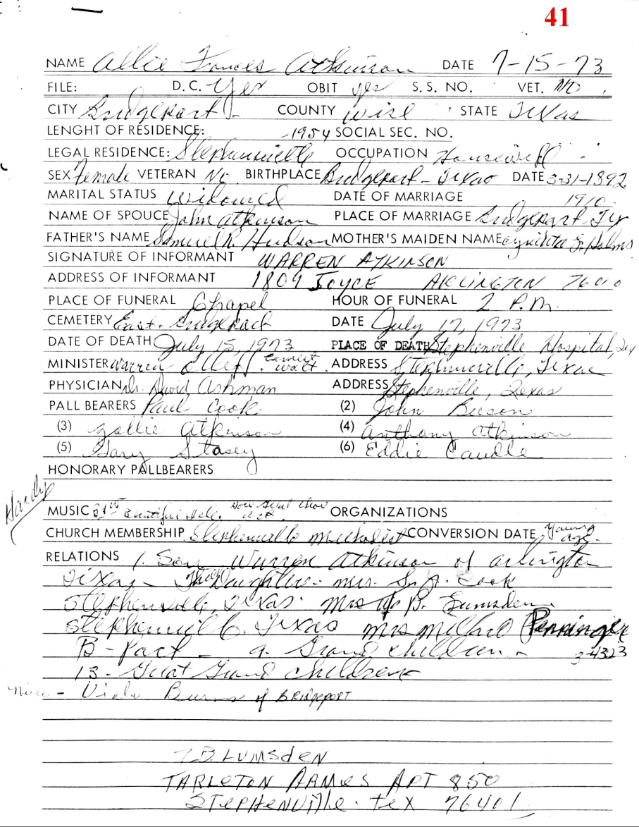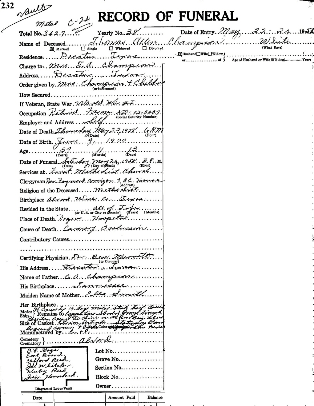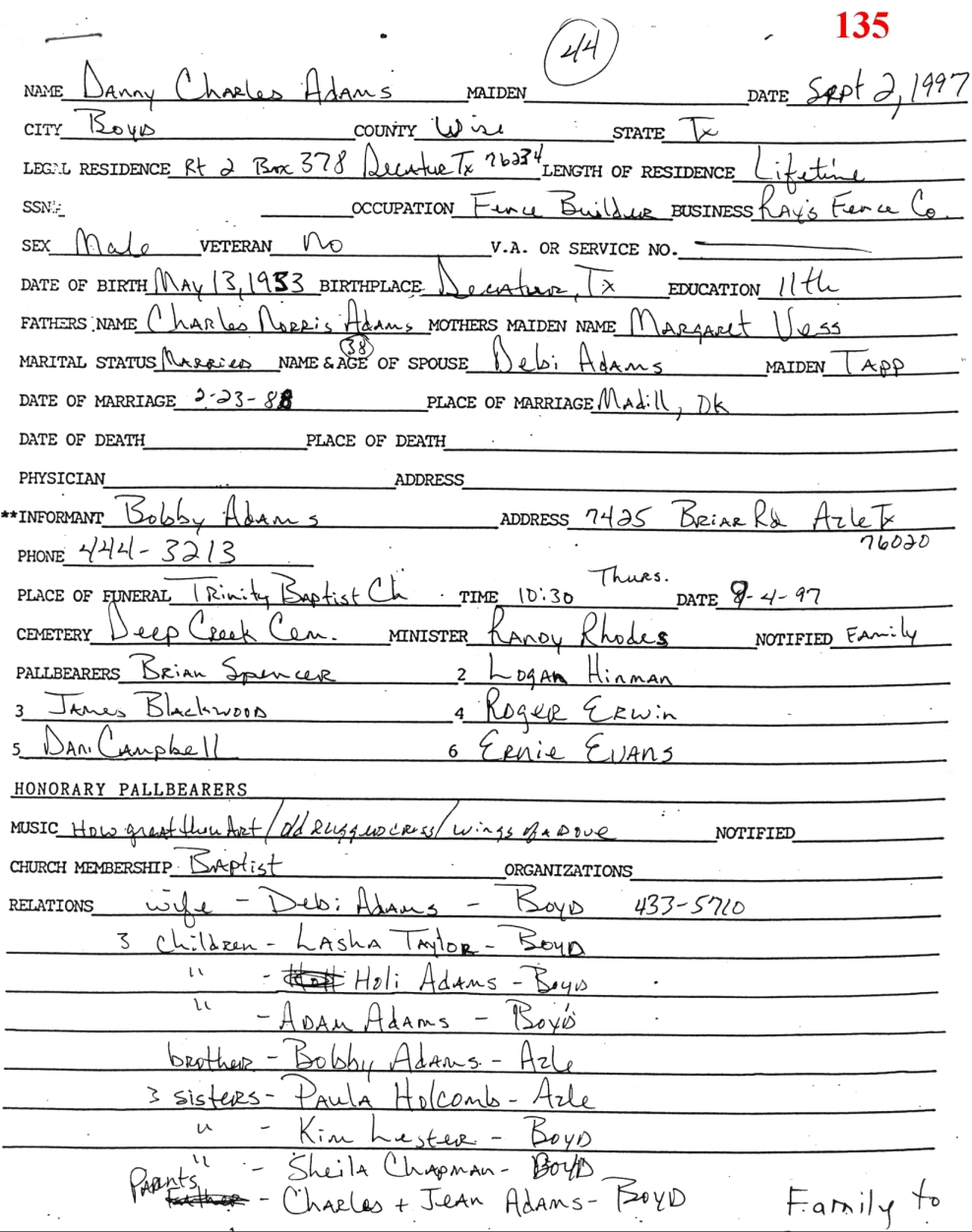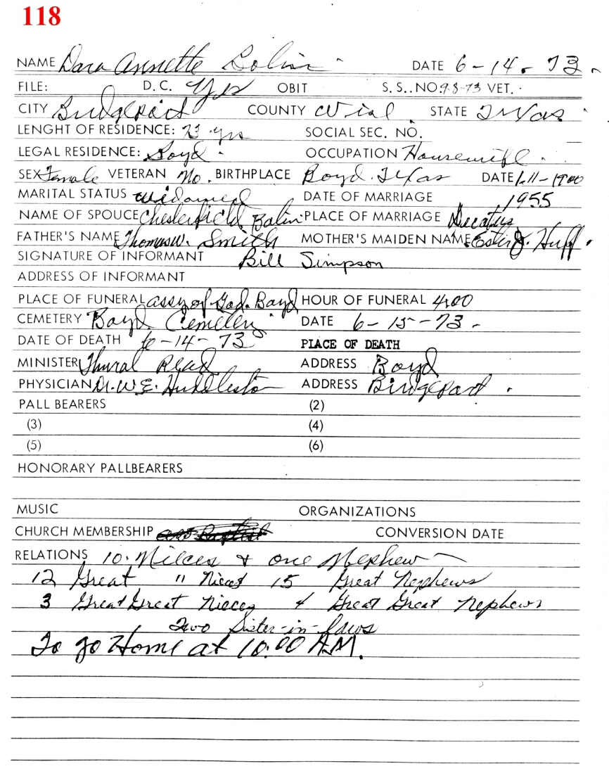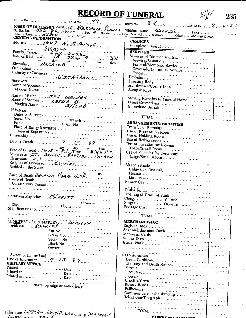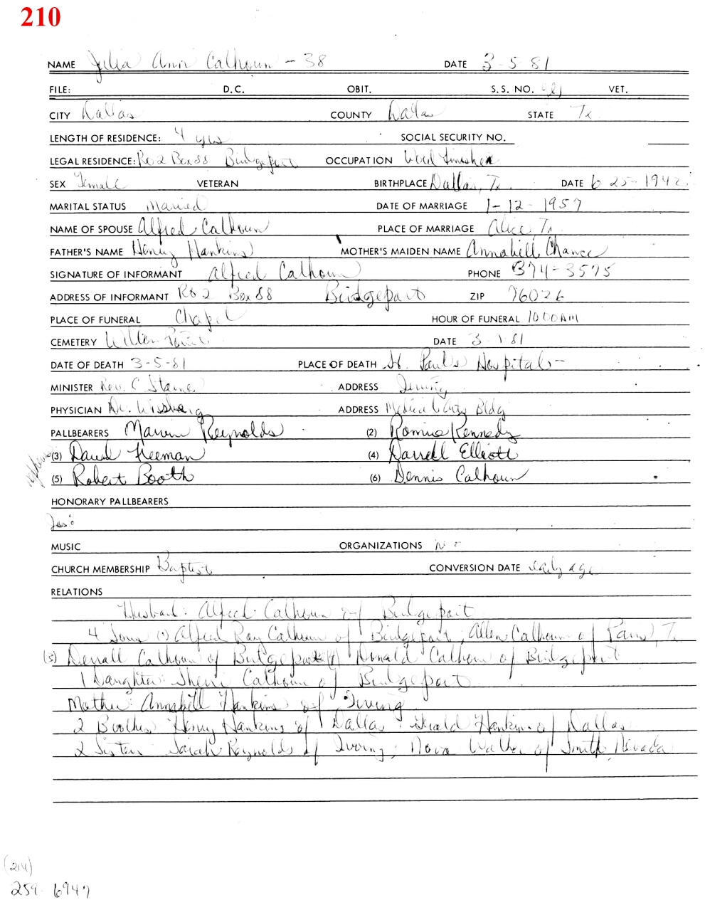 A boy from AR, Killed on railroad Christian Funeral Home C22/C22-254.jpg Aaron, James Thomas Christian Funeral Home C31/C31-110.jpg Abbott, Julia Gage Christian Funeral Home C31/C31-123.jpg Abbott, Lewis Elmer Coker Funeral Home C56/C56-091.jpg Abbott, T. Aleck Christian Funeral Home C35/C35-273.jpg Abbs, James Russell Christian Funeral Home C01/C01-110.jpg Abel, Anto A., Boyd Funeral Home B88/B88-135.jpg Abel, Arlyce Astor, Boyd Funeral File Sheet BF81/BF81-141.jpg Abel, Evelyn Myra Muse, Boyd Funeral File Sheet BF95/BF95-001.jpg Abel, Helen Elizabeth Miller, Boyd Funeral File Sheet BF91/BF91-006.jpg Abel, Helen Miller, Boyd Funeral Home B88/B88-125.jpg Abel, Nancy Jean Prince Coker Funeral Home C64/C64-076.jpg Abel, Walter V. Christian Funeral Home C22/C22-162.jpg Abernathy , Mary Ruth Cook Christian Funeral Home C86/C86-137.jpg Abernathy, Baby of Bill & Edna Earl, Hawkins Funeral Home H63/H63-110.jpg Abernathy, Ella Dora Jackson Christian Funeral Home C39/C39-261.jpg Abernathy, L.D., Mr. Christian Funeral Home C22/C22-269.jpg Abernathy, William Glenn, Hawkins Funeral File Sheet HF87/HF87-107.jpg Abernathy, William Glenn, Hawkins Funeral Home H84/H84-282.jpg Able, Barbara Elizabeth "Betty" Morris Coker Funeral Home C64/C64-215.jpg Able, Carrol Floyd "Crick", Hawkins Funeral File Sheet HF00/HF00-001.jpg Able, Forest Lee Christian Funeral Home C50/C50-017.jpg Able, Thomas Franklin Coker Funeral Home C56/C56-148.jpg Able, William Morgan Coker Funeral Home C56/C56-264a.jpg Able, William Morgan Coker Funeral Home C56/C56-264.jpg Absher, Donald Marion Christian Funeral Home C01/C01-182.jpg Absher, Opal Lee Kaker Hunter, Hawkins Funeral File Sheet HF01/HF01-001.jpg Absher, Ulyses Sherman Christian Funeral Home C31/C31-201.jpg Absher, William P. "Bill", Hawkins Funeral File Sheet HF93/HF93-001.jpg Absher, William P., Hawkins Funeral Home H93/H93-088.jpg Acker, Mary Elizabeth Christian Funeral Home C15/C15-102.jpg Acker, William H., Dr. Christian Funeral Home C22/C22-084.jpg Acola, Marian Elizabeth Woody Christian Funeral Home C98/C98-299.jpg Acola, Sam Christian Funeral Home C80/C80-104.jpg Acola, Sam, Hawkins/Christian Funeral Home HCD80/HCD80-003.jpg Action, Bonnie Lynn Bowser, Hawkins Funeral File Sheet HF73/HF73-0001.jpg Acton, Bonnie Lynn Bauser, Hawkins Funeral Home H80/H80-028.jpg Adair, Betty Darline Christian Funeral Home C45/C45-102.jpg Adair, Carl Sine Christian Funeral Home C45/C45-102.jpg Adair, Ester, Hawkins Funeral File Sheet HF73/HF73-0002.jpg Adama, Randy Dale, Jr., Hawkins Funeral Home H90/H90-110.jpg Adams, Acie Dee Christian Funeral Home C76/C76-098.jpg Adams, Alonzo Bright, Hawkins Funeral Home H61/H61-044.jpg Adams, Audrey, Boyd Funeral Home B88/B88-165.jpg Adams, Barry Carroll, Hawkins Funeral File Sheet HF85/HF85-043.jpg Adams, Beulah Etta Pitts, Hawkins Funeral File Sheet HF73/HF73-0004.jpg Adams, Billy Carroll, Hawkins Funeral Home H84/H84-189.jpg Adams, Carl Victor, Hawkins Funeral Home H68/H68-061.jpg Adams, Ceffie Daisy Craighead Christian Funeral Home C45/C45-155.jpg Adams, Charles Norris, Boyd Funeral File Sheet BF98/BF98-064.jpg Adams, Charlie Bruce Christian Funeral Home C59/C59-090.jpg Adams, Corinne P. Peterson Christian Funeral Home C01/C01-193.jpg Adams, Danny Charles, Boyd Funeral File Sheet BF95/BF95-135.jpg Adams, Dewey Avon, Hawkins Funeral File Sheet HF73/HF73-0003.jpg Adams, Edgar Ross, Hawkins Funeral Home H57/H57-039.jpg Adams, Elmer Justice, Hawkins Funeral Home H66/H66-210.jpg Adams, Eula C. Ingle, Hawkins Funeral Home H69/H69-131.jpg Adams, Garland Wayne, Hawkins Funeral File Sheet HF89/HF89-002.jpg Adams, Garland Wayne, Hawkins Funeral Home H88/H88-126.jpg Adams, George Martain Christian Funeral Home C49/C49-028.jpg Adams, Jerry Dean Christian Funeral Home C73/C73-206.jpg Adams, John Christian Funeral Home C35/C35-289.jpg Adams, John Henry, Hawkins Funeral File Sheet HF01/HF01-002.jpg Adams, John Louis, Hawkins Funeral Home H55/H55-147.jpg Adams, Josie Jones Churchhill Christian Funeral Home C91/C91-116.jpg Adams, Kenney Milton "Ragmop", Boyd Funeral File Sheet BF81/BF81-015.jpg Adams, Laura Sue Coker Funeral Home C27/C27-008.jpg Adams, Leatrice Isabell Moler, Hawkins Funeral File Sheet HF99/HF99-001.jpg Adams, Lera "Gerry" Burnette Woltz, Hawkins Funeral File Sheet HF98/HF98-001.jpg Adams, Leroy Franklin Christian Funeral Home C93/C93-076.jpg Adams, Lillian Josie Christian Funeral Home C73/C73-167.jpg Adams, Margaret Alma Murphy Christian Funeral Home C68/C68-465.jpg Adams, Margaret Iola Parish Christian Funeral Home C95/C95-146.jpg Adams, Marina Helen Young, Hawkins Funeral Home H69/H69-005.jpg Adams, Martha Ann Malone Christian Funeral Home C42/C42-076.jpg Adams, Mary Elizabeth "Betty"(Karen), Hawkins Funeral Home H53/H53-107.jpg Adams, Mary Ferguson Dill, Hawkins Funeral Home H60/H60-031.jpg Adams, Milton Elmore Christian Funeral Home C39/C39-106.jpg Adams, Myrtle Floyd Harris, Hawkins Funeral File Sheet HF01/HF01-003.jpg Adams, Newell Wayne "Bill" Dec 10, 1980 Mrs. Adams Pleasant Grove #1 CL80/CL80-38 Adams, Oma Nov 23, 1981 Bud Adams & Jessie Ragsdale Sweetwater CL80/CL80-107 Adams, Randy Dale, Jr., Hawkins Funeral File Sheet HF91/HF91-001.jpg Adams, Robert Esco, Hawkins Funeral File Sheet HF73/HF73-0005.jpg Adams, Robert Louis, Hawkins Funeral Home H57/H57-171.jpg Adams, Ronald Floyd Christian Funeral Home C89/C89-163.jpg Adams, Sarah F. Christian Funeral Home C45/C45-259.jpg Adams, W., Hawkins Funeral Home H23/H23-148.jpg Adams, William Rosco "Bud" Christian Funeral Home C88/C88-185.jpg Adams, William Walter, Hawkins Funeral Home H61/H61-145.jpg Addington, Jimmy Ray Christian Funeral Home C88/C88-260.jpg Adkins, Lonnie Roe Christian Funeral Home C93/C93-012.jpg Adkins, Paul William, Hawkins Funeral Home H33/H33-091.jpg Adkins, Peggy Mildred Thomas Christian Funeral Home C86/C86-283.jpg Admire, Clarence Holt, Hawkins Funeral Home H57/H57-114.jpg Admire, Willie Audrey King, Hawkins Funeral Home H55/H55-151.jpg Aerni, Lucile Flowers, Hawki