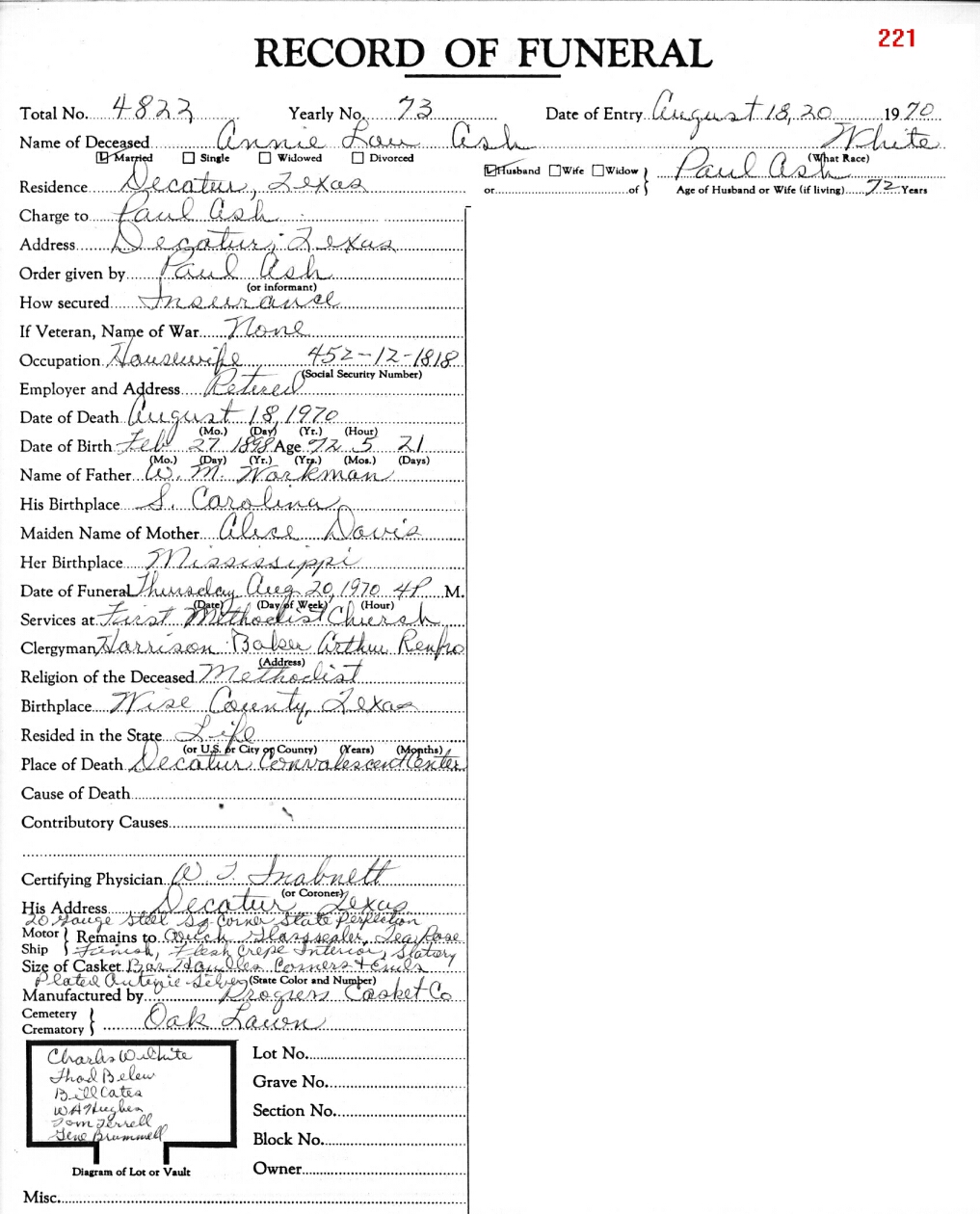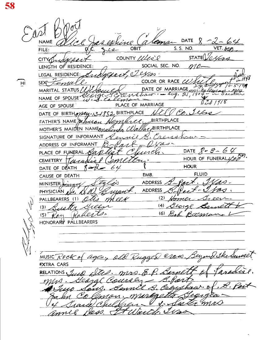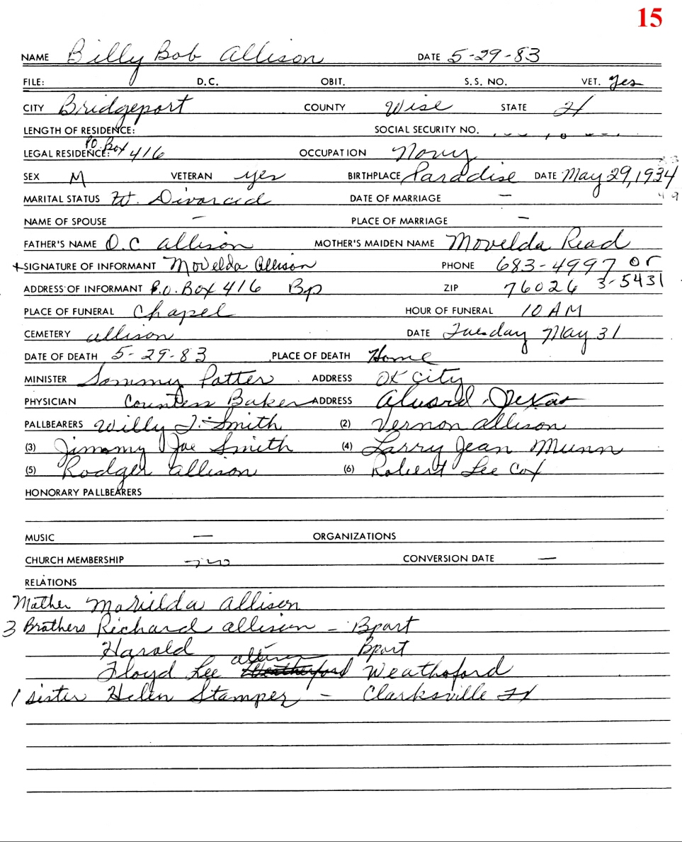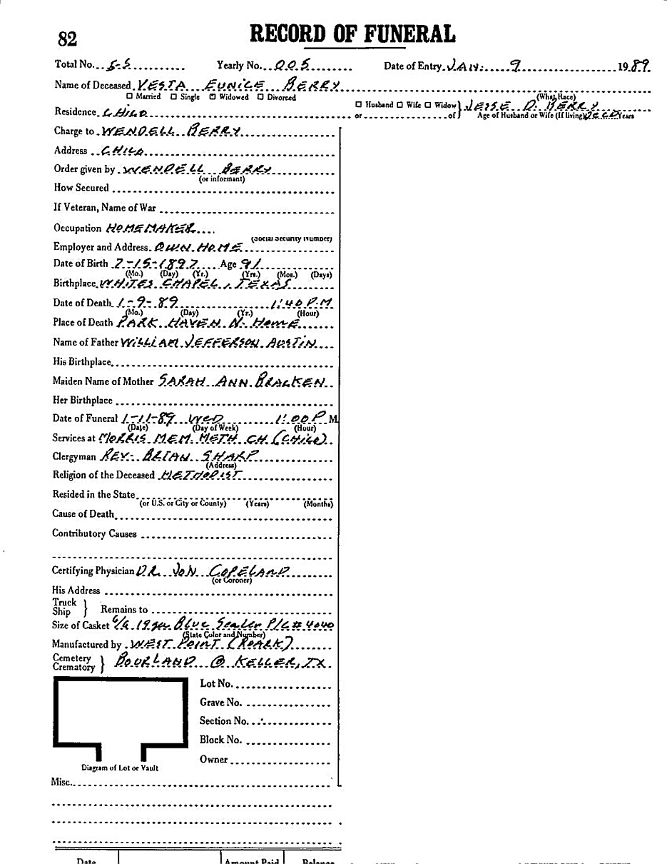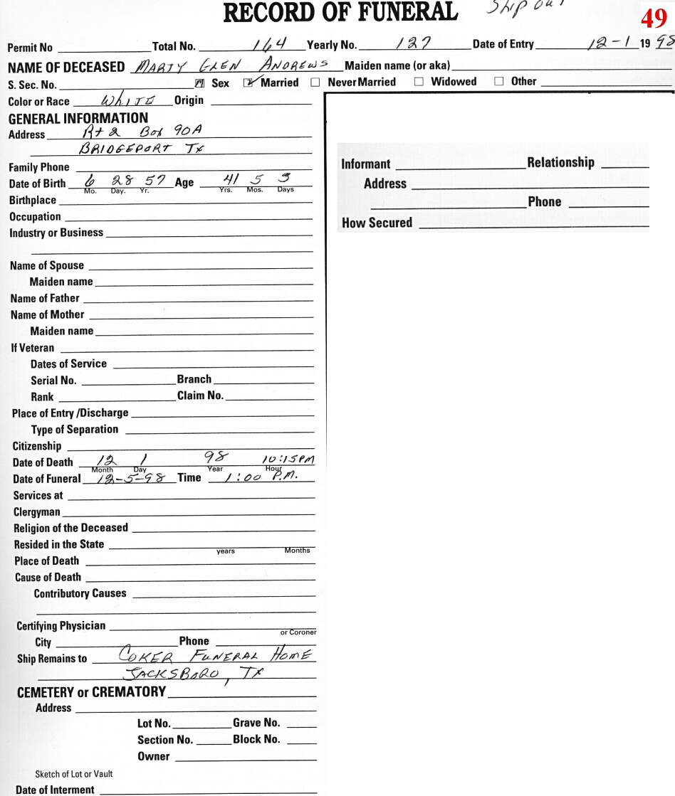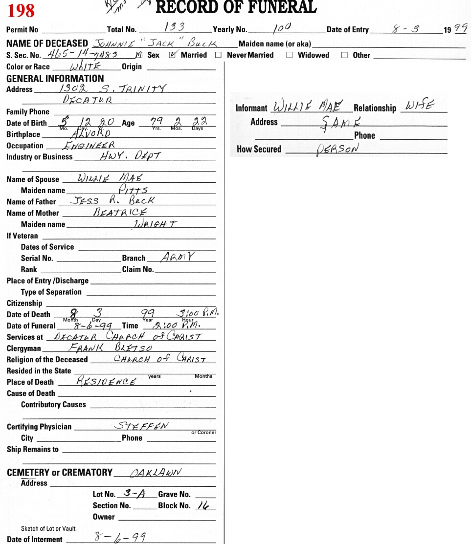 A boy from AR, Killed on railroad Christian Funeral Home C22/C22-254.jpg Aaron, James Thomas Christian Funeral Home C31/C31-110.jpg Abbott, Julia Gage Christian Funeral Home C31/C31-123.jpg Abbott, Lewis Elmer Coker Funeral Home C56/C56-091.jpg Abbott, T. Aleck Christian Funeral Home C35/C35-273.jpg Abbs, James Russell Christian Funeral Home C01/C01-110.jpg Abel, Anto A., Boyd Funeral Home B88/B88-135.jpg Abel, Arlyce Astor, Boyd Funeral File Sheet BF81/BF81-141.jpg Abel, Evelyn Myra Muse, Boyd Funeral File Sheet BF95/BF95-001.jpg Abel, Helen Elizabeth Miller, Boyd Funeral File Sheet BF91/BF91-006.jpg Abel, Helen Miller, Boyd Funeral Home B88/B88-125.jpg Abel, Nancy Jean Prince Coker Funeral Home C64/C64-076.jpg Abel, Walter V. Christian Funeral Home C22/C22-162.jpg Abernathy , Mary Ruth Cook Christian Funeral Home C86/C86-137.jpg Abernathy, Baby of Bill & Edna Earl, Hawkins Funeral Home H63/H63-110.jpg Abernathy, Ella Dora Jackson Christian Funeral Home C39/C39-261.jpg Abernathy, L.D., Mr. Christian Funeral Home C22/C22-269.jpg Abernathy, William Glenn, Hawkins Funeral File Sheet HF87/HF87-107.jpg Abernathy, William Glenn, Hawkins Funeral Home H84/H84-282.jpg Able, Barbara Elizabeth "Betty" Morris Coker Funeral Home C64/C64-215.jpg Able, Carrol Floyd "Crick", Hawkins Funeral File Sheet HF00/HF00-001.jpg Able, Forest Lee Christian Funeral Home C50/C50-017.jpg Able, Thomas Franklin Coker Funeral Home C56/C56-148.jpg Able, William Morgan Coker Funeral Home C56/C56-264a.jpg Able, William Morgan Coker Funeral Home C56/C56-264.jpg Absher, Donald Marion Christian Funeral Home C01/C01-182.jpg Absher, Opal Lee Kaker Hunter, Hawkins Funeral File Sheet HF01/HF01-001.jpg Absher, Ulyses Sherman Christian Funeral Home C31/C31-201.jpg Absher, William P. "Bill", Hawkins Funeral File Sheet HF93/HF93-001.jpg Absher, William P., Hawkins Funeral Home H93/H93-088.jpg Acker, Mary Elizabeth Christian Funeral Home C15/C15-102.jpg Acker, William H., Dr. Christian Funeral Home C22/C22-084.jpg Acola, Marian Elizabeth Woody Christian Funeral Home C98/C98-299.jpg Acola, Sam Christian Funeral Home C80/C80-104.jpg Acola, Sam, Hawkins/Christian Funeral Home HCD80/HCD80-003.jpg Action, Bonnie Lynn Bowser, Hawkins Funeral File Sheet HF73/HF73-0001.jpg Acton, Bonnie Lynn Bauser, Hawkins Funeral Home H80/H80-028.jpg Adair, Betty Darline Christian Funeral Home C45/C45-102.jpg Adair, Carl Sine Christian Funeral Home C45/C45-102.jpg Adair, Ester, Hawkins Funeral File Sheet HF73/HF73-0002.jpg Adama, Randy Dale, Jr., Hawkins Funeral Home H90/H90-110.jpg Adams, Acie Dee Christian Funeral Home C76/C76-098.jpg Adams, Alonzo Bright, Hawkins Funeral Home H61/H61-044.jpg Adams, Audrey, Boyd Funeral Home B88/B88-165.jpg Adams, Barry Carroll, Hawkins Funeral File Sheet HF85/HF85-043.jpg Adams, Beulah Etta Pitts, Hawkins Funeral File Sheet HF73/HF73-0004.jpg Adams, Billy Carroll, Hawkins Funeral Home H84/H84-189.jpg Adams, Carl Victor, Hawkins Funeral Home H68/H68-061.jpg Adams, Ceffie Daisy Craighead Christian Funeral Home C45/C45-155.jpg Adams, Charles Norris, Boyd Funeral File Sheet BF98/BF98-064.jpg Adams, Charlie Bruce Christian Funeral Home C59/C59-090.jpg Adams, Corinne P. Peterson Christian Funeral Home C01/C01-193.jpg Adams, Danny Charles, Boyd Funeral File Sheet BF95/BF95-135.jpg Adams, Dewey Avon, Hawkins Funeral File Sheet HF73/HF73-0003.jpg Adams, Edgar Ross, Hawkins Funeral Home H57/H57-039.jpg Adams, Elmer Justice, Hawkins Funeral Home H66/H66-210.jpg Adams, Eula C. Ingle, Hawkins Funeral Home H69/H69-131.jpg Adams, Garland Wayne, Hawkins Funeral File Sheet HF89/HF89-002.jpg Adams, Garland Wayne, Hawkins Funeral Home H88/H88-126.jpg Adams, George Martain Christian Funeral Home C49/C49-028.jpg Adams, Jerry Dean Christian Funeral Home C73/C73-206.jpg Adams, John Christian Funeral Home C35/C35-289.jpg Adams, John Henry, Hawkins Funeral File Sheet HF01/HF01-002.jpg Adams, John Louis, Hawkins Funeral Home H55/H55-147.jpg Adams, Josie Jones Churchhill Christian Funeral Home C91/C91-116.jpg Adams, Kenney Milton "Ragmop", Boyd Funeral File Sheet BF81/BF81-015.jpg Adams, Laura Sue Coker Funeral Home C27/C27-008.jpg Adams, Leatrice Isabell Moler, Hawkins Funeral File Sheet HF99/HF99-001.jpg Adams, Lera "Gerry" Burnette Woltz, Hawkins Funeral File Sheet HF98/HF98-001.jpg Adams, Leroy Franklin Christian Funeral Home C93/C93-076.jpg Adams, Lillian Josie Christian Funeral Home C73/C73-167.jpg Adams, Margaret Alma Murphy Christian Funeral Home C68/C68-465.jpg Adams, Margaret Iola Parish Christian Funeral Home C95/C95-146.jpg Adams, Marina Helen Young, Hawkins Funeral Home H69/H69-005.jpg Adams, Martha Ann Malone Christian Funeral Home C42/C42-076.jpg Adams, Mary Elizabeth "Betty"(Karen), Hawkins Funeral Home H53/H53-107.jpg Adams, Mary Ferguson Dill, Hawkins Funeral Home H60/H60-031.jpg Adams, Milton Elmore Christian Funeral Home C39/C39-106.jpg Adams, Myrtle Floyd Harris, Hawkins Funeral File Sheet HF01/HF01-003.jpg Adams, Newell Wayne "Bill" Dec 10, 1980 Mrs. Adams Pleasant Grove #1 CL80/CL80-38 Adams, Oma Nov 23, 1981 Bud Adams & Jessie Ragsdale Sweetwater CL80/CL80-107 Adams, Randy Dale, Jr., Hawkins Funeral File Sheet HF91/HF91-001.jpg Adams, Robert Esco, Hawkins Funeral File Sheet HF73/HF73-0005.jpg Adams, Robert Louis, Hawkins Funeral Home H57/H57-171.jpg Adams, Ronald Floyd Christian Funeral Home C89/C89-163.jpg Adams, Sarah F. Christian Funeral Home C45/C45-259.jpg Adams, W., Hawkins Funeral Home H23/H23-148.jpg Adams, William Rosco "Bud" Christian Funeral Home C88/C88-185.jpg Adams, William Walter, Hawkins Funeral Home H61/H61-145.jpg Addington, Jimmy Ray Christian Funeral Home C88/C88-260.jpg Adkins, Lonnie Roe Christian Funeral Home C93/C93-012.jpg Adkins, Paul William, Hawkins Funeral Home H33/H33-091.jpg Adkins, Peggy Mildred Thomas Christian Funeral Home C86/C86-283.jpg Admire, Clarence Holt, Hawkins Funeral Home H57/H57-114.jpg Admire, Willie Audrey King, Hawkins Funeral Home H55/H55-151.jpg Aerni, Lucile Flowers, Hawki