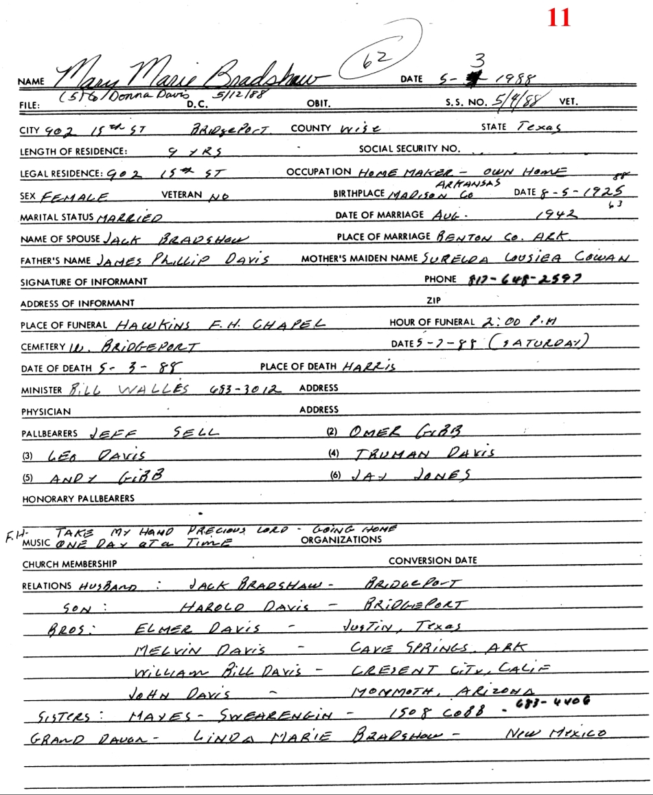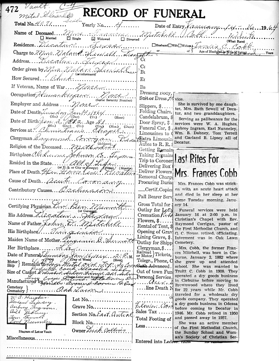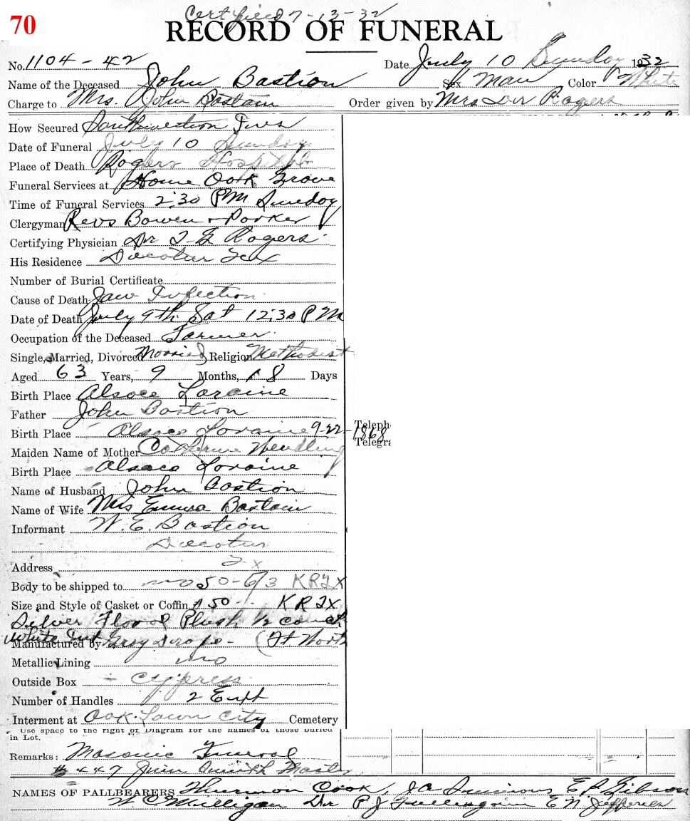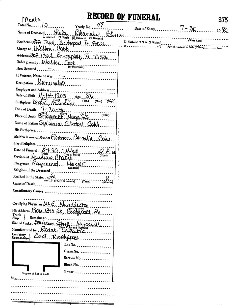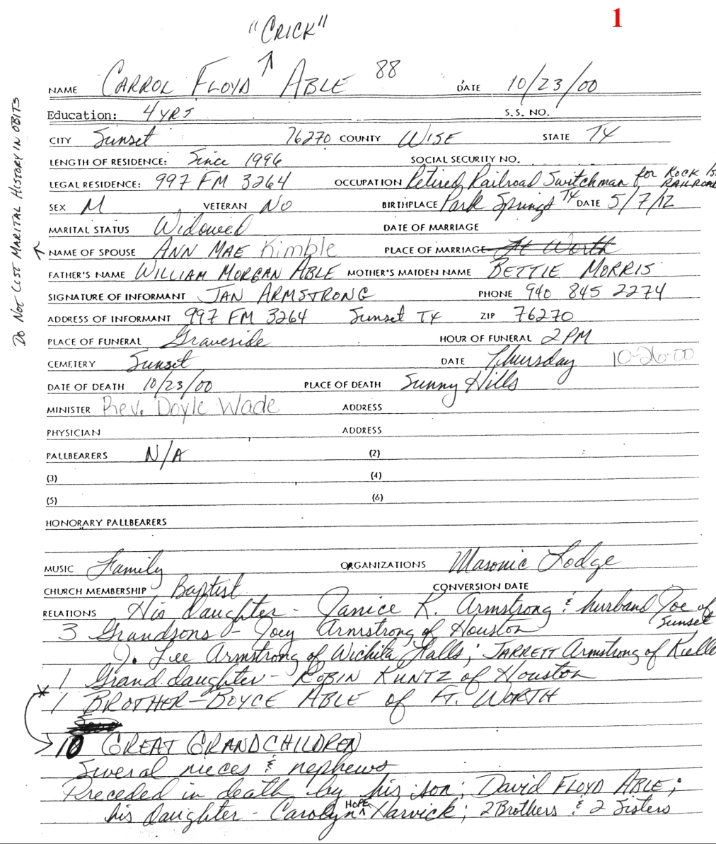 A boy from AR, Killed on railroad Christian Funeral Home C22/C22-254.jpg Aaron, James Thomas Christian Funeral Home C31/C31-110.jpg Abbott, Julia Gage Christian Funeral Home C31/C31-123.jpg Abbott, Lewis Elmer Coker Funeral Home C56/C56-091.jpg Abbott, T. Aleck Christian Funeral Home C35/C35-273.jpg Abbs, James Russell Christian Funeral Home C01/C01-110.jpg Abel, Anto A., Boyd Funeral Home B88/B88-135.jpg Abel, Arlyce Astor, Boyd Funeral File Sheet BF81/BF81-141.jpg Abel, Evelyn Myra Muse, Boyd Funeral File Sheet BF95/BF95-001.jpg Abel, Helen Elizabeth Miller, Boyd Funeral File Sheet BF91/BF91-006.jpg Abel, Helen Miller, Boyd Funeral Home B88/B88-125.jpg Abel, Nancy Jean Prince Coker Funeral Home C64/C64-076.jpg Abel, Walter V. Christian Funeral Home C22/C22-162.jpg Abernathy , Mary Ruth Cook Christian Funeral Home C86/C86-137.jpg Abernathy, Baby of Bill & Edna Earl, Hawkins Funeral Home H63/H63-110.jpg Abernathy, Ella Dora Jackson Christian Funeral Home C39/C39-261.jpg Abernathy, L.D., Mr. Christian Funeral Home C22/C22-269.jpg Abernathy, William Glenn, Hawkins Funeral File Sheet HF87/HF87-107.jpg Abernathy, William Glenn, Hawkins Funeral Home H84/H84-282.jpg Able, Barbara Elizabeth "Betty" Morris Coker Funeral Home C64/C64-215.jpg Able, Carrol Floyd "Crick", Hawkins Funeral File Sheet HF00/HF00-001.jpg Able, Forest Lee Christian Funeral Home C50/C50-017.jpg Able, Thomas Franklin Coker Funeral Home C56/C56-148.jpg Able, William Morgan Coker Funeral Home C56/C56-264a.jpg Able, William Morgan Coker Funeral Home C56/C56-264.jpg Absher, Donald Marion Christian Funeral Home C01/C01-182.jpg Absher, Opal Lee Kaker Hunter, Hawkins Funeral File Sheet HF01/HF01-001.jpg Absher, Ulyses Sherman Christian Funeral Home C31/C31-201.jpg Absher, William P. "Bill", Hawkins Funeral File Sheet HF93/HF93-001.jpg Absher, William P., Hawkins Funeral Home H93/H93-088.jpg Acker, Mary Elizabeth Christian Funeral Home C15/C15-102.jpg Acker, William H., Dr. Christian Funeral Home C22/C22-084.jpg Acola, Marian Elizabeth Woody Christian Funeral Home C98/C98-299.jpg Acola, Sam Christian Funeral Home C80/C80-104.jpg Acola, Sam, Hawkins/Christian Funeral Home HCD80/HCD80-003.jpg Action, Bonnie Lynn Bowser, Hawkins Funeral File Sheet HF73/HF73-0001.jpg Acton, Bonnie Lynn Bauser, Hawkins Funeral Home H80/H80-028.jpg Adair, Betty Darline Christian Funeral Home C45/C45-102.jpg Adair, Carl Sine Christian Funeral Home C45/C45-102.jpg Adair, Ester, Hawkins Funeral File Sheet HF73/HF73-0002.jpg Adama, Randy Dale, Jr., Hawkins Funeral Home H90/H90-110.jpg Adams, Acie Dee Christian Funeral Home C76/C76-098.jpg Adams, Alonzo Bright, Hawkins Funeral Home H61/H61-044.jpg Adams, Audrey, Boyd Funeral Home B88/B88-165.jpg Adams, Barry Carroll, Hawkins Funeral File Sheet HF85/HF85-043.jpg Adams, Beulah Etta Pitts, Hawkins Funeral File Sheet HF73/HF73-0004.jpg Adams, Billy Carroll, Hawkins Funeral Home H84/H84-189.jpg Adams, Carl Victor, Hawkins Funeral Home H68/H68-061.jpg Adams, Ceffie Daisy Craighead Christian Funeral Home C45/C45-155.jpg Adams, Charles Norris, Boyd Funeral File Sheet BF98/BF98-064.jpg Adams, Charlie Bruce Christian Funeral Home C59/C59-090.jpg Adams, Corinne P. Peterson Christian Funeral Home C01/C01-193.jpg Adams, Danny Charles, Boyd Funeral File Sheet BF95/BF95-135.jpg Adams, Dewey Avon, Hawkins Funeral File Sheet HF73/HF73-0003.jpg Adams, Edgar Ross, Hawkins Funeral Home H57/H57-039.jpg Adams, Elmer Justice, Hawkins Funeral Home H66/H66-210.jpg Adams, Eula C. Ingle, Hawkins Funeral Home H69/H69-131.jpg Adams, Garland Wayne, Hawkins Funeral File Sheet HF89/HF89-002.jpg Adams, Garland Wayne, Hawkins Funeral Home H88/H88-126.jpg Adams, George Martain Christian Funeral Home C49/C49-028.jpg Adams, Jerry Dean Christian Funeral Home C73/C73-206.jpg Adams, John Christian Funeral Home C35/C35-289.jpg Adams, John Henry, Hawkins Funeral File Sheet HF01/HF01-002.jpg Adams, John Louis, Hawkins Funeral Home H55/H55-147.jpg Adams, Josie Jones Churchhill Christian Funeral Home C91/C91-116.jpg Adams, Kenney Milton "Ragmop", Boyd Funeral File Sheet BF81/BF81-015.jpg Adams, Laura Sue Coker Funeral Home C27/C27-008.jpg Adams, Leatrice Isabell Moler, Hawkins Funeral File Sheet HF99/HF99-001.jpg Adams, Lera "Gerry" Burnette Woltz, Hawkins Funeral File Sheet HF98/HF98-001.jpg Adams, Leroy Franklin Christian Funeral Home C93/C93-076.jpg Adams, Lillian Josie Christian Funeral Home C73/C73-167.jpg Adams, Margaret Alma Murphy Christian Funeral Home C68/C68-465.jpg Adams, Margaret Iola Parish Christian Funeral Home C95/C95-146.jpg Adams, Marina Helen Young, Hawkins Funeral Home H69/H69-005.jpg Adams, Martha Ann Malone Christian Funeral Home C42/C42-076.jpg Adams, Mary Elizabeth "Betty"(Karen), Hawkins Funeral Home H53/H53-107.jpg Adams, Mary Ferguson Dill, Hawkins Funeral Home H60/H60-031.jpg Adams, Milton Elmore Christian Funeral Home C39/C39-106.jpg Adams, Myrtle Floyd Harris, Hawkins Funeral File Sheet HF01/HF01-003.jpg Adams, Newell Wayne "Bill" Dec 10, 1980 Mrs. Adams Pleasant Grove #1 CL80/CL80-38 Adams, Oma Nov 23, 1981 Bud Adams & Jessie Ragsdale Sweetwater CL80/CL80-107 Adams, Randy Dale, Jr., Hawkins Funeral File Sheet HF91/HF91-001.jpg Adams, Robert Esco, Hawkins Funeral File Sheet HF73/HF73-0005.jpg Adams, Robert Louis, Hawkins Funeral Home H57/H57-171.jpg Adams, Ronald Floyd Christian Funeral Home C89/C89-163.jpg Adams, Sarah F. Christian Funeral Home C45/C45-259.jpg Adams, W., Hawkins Funeral Home H23/H23-148.jpg Adams, William Rosco "Bud" Christian Funeral Home C88/C88-185.jpg Adams, William Walter, Hawkins Funeral Home H61/H61-145.jpg Addington, Jimmy Ray Christian Funeral Home C88/C88-260.jpg Adkins, Lonnie Roe Christian Funeral Home C93/C93-012.jpg Adkins, Paul William, Hawkins Funeral Home H33/H33-091.jpg Adkins, Peggy Mildred Thomas Christian Funeral Home C86/C86-283.jpg Admire, Clarence Holt, Hawkins Funeral Home H57/H57-114.jpg Admire, Willie Audrey King, Hawkins Funeral Home H55/H55-151.jpg Aerni, Lucile Flowers, Hawki