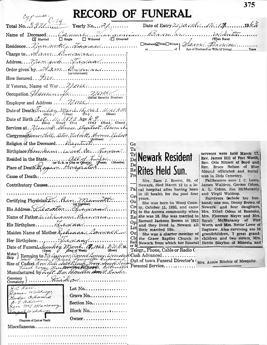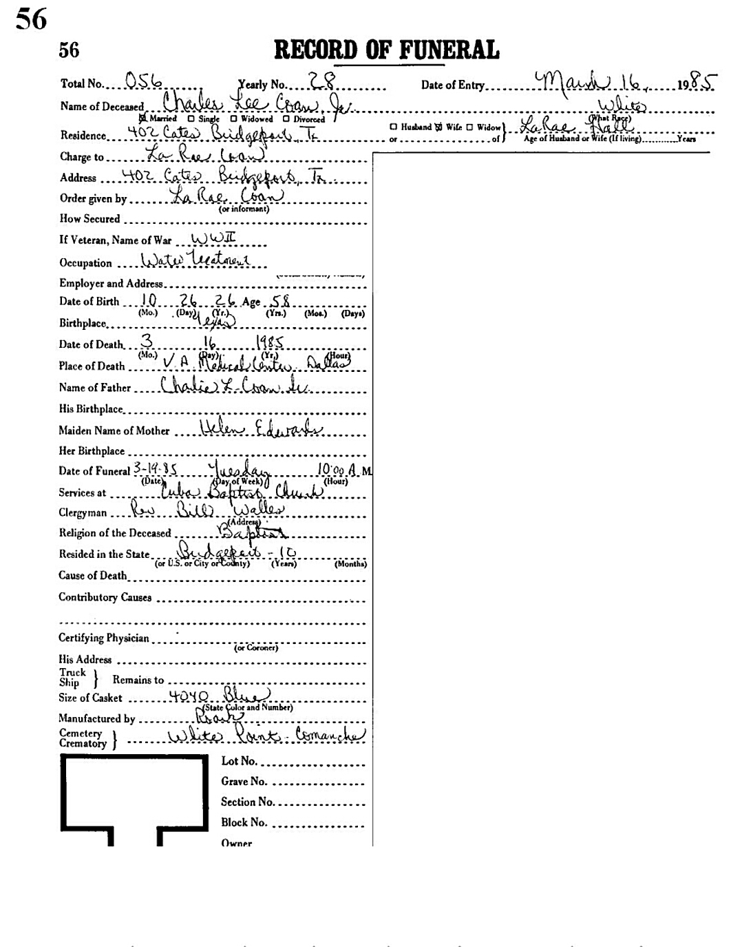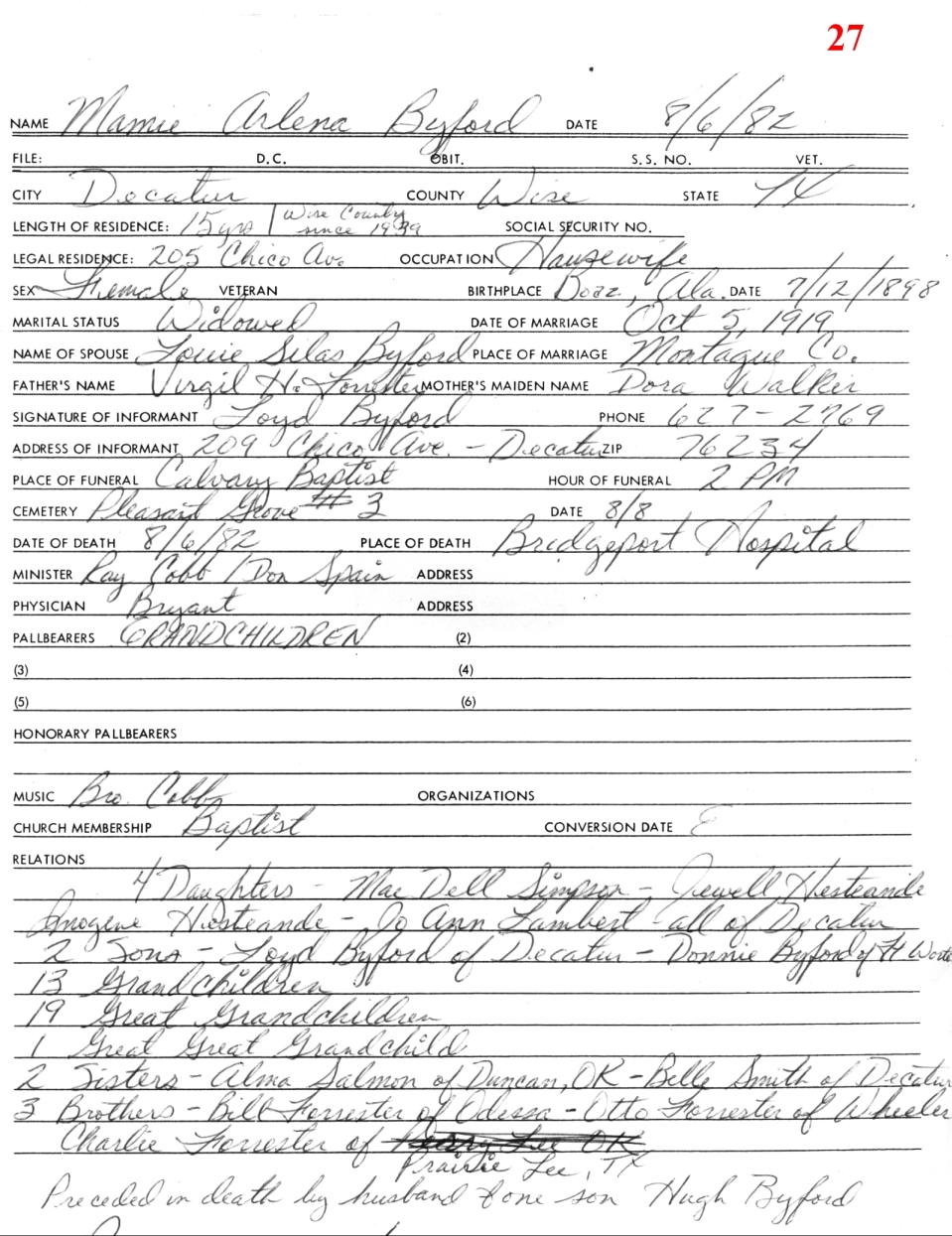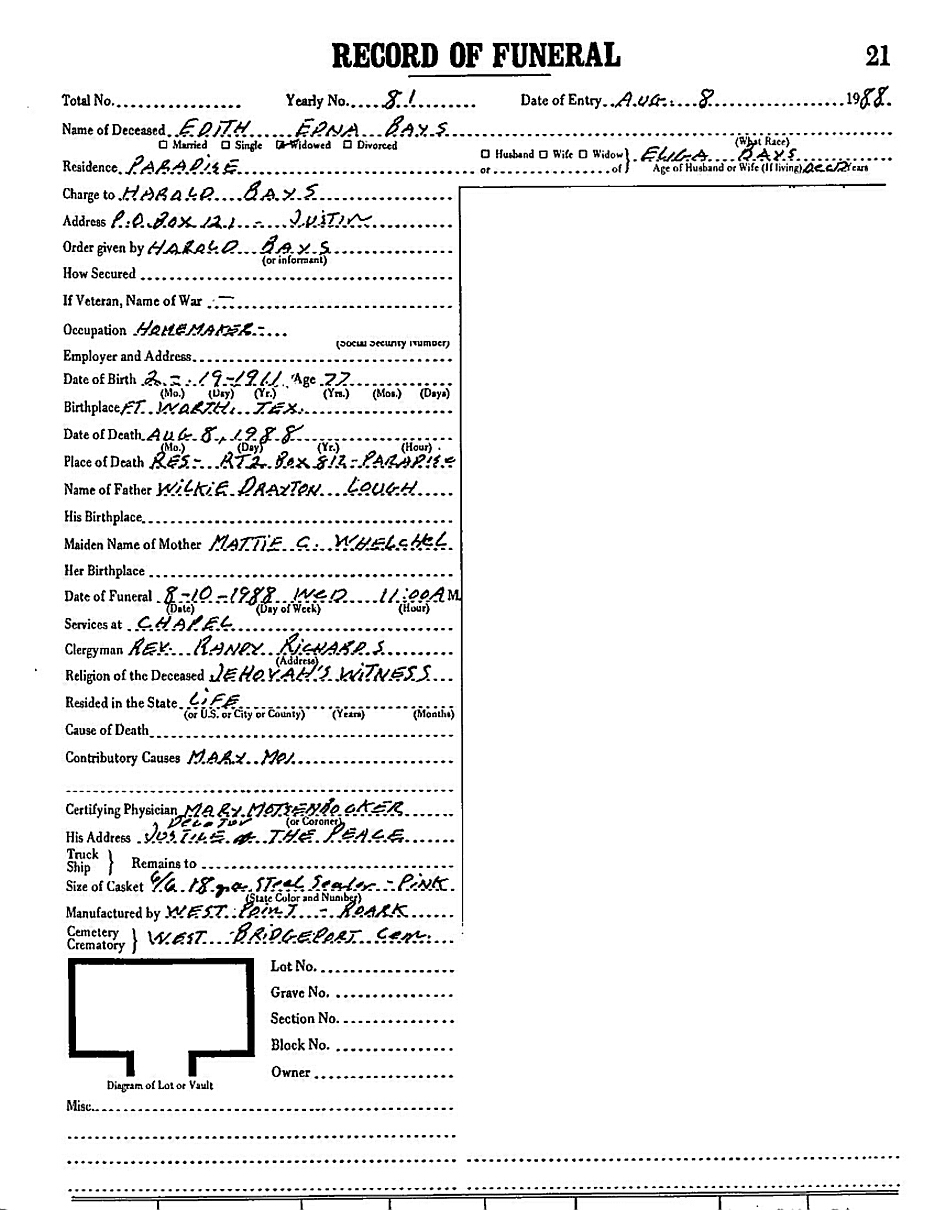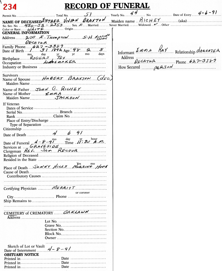 A boy from AR, Killed on railroad Christian Funeral Home C22/C22-254.jpg Aaron, James Thomas Christian Funeral Home C31/C31-110.jpg Abbott, Julia Gage Christian Funeral Home C31/C31-123.jpg Abbott, Lewis Elmer Coker Funeral Home C56/C56-091.jpg Abbott, T. Aleck Christian Funeral Home C35/C35-273.jpg Abbs, James Russell Christian Funeral Home C01/C01-110.jpg Abel, Anto A., Boyd Funeral Home B88/B88-135.jpg Abel, Arlyce Astor, Boyd Funeral File Sheet BF81/BF81-141.jpg Abel, Evelyn Myra Muse, Boyd Funeral File Sheet BF95/BF95-001.jpg Abel, Helen Elizabeth Miller, Boyd Funeral File Sheet BF91/BF91-006.jpg Abel, Helen Miller, Boyd Funeral Home B88/B88-125.jpg Abel, Nancy Jean Prince Coker Funeral Home C64/C64-076.jpg Abel, Walter V. Christian Funeral Home C22/C22-162.jpg Abernathy , Mary Ruth Cook Christian Funeral Home C86/C86-137.jpg Abernathy, Baby of Bill & Edna Earl, Hawkins Funeral Home H63/H63-110.jpg Abernathy, Ella Dora Jackson Christian Funeral Home C39/C39-261.jpg Abernathy, L.D., Mr. Christian Funeral Home C22/C22-269.jpg Abernathy, William Glenn, Hawkins Funeral File Sheet HF87/HF87-107.jpg Abernathy, William Glenn, Hawkins Funeral Home H84/H84-282.jpg Able, Barbara Elizabeth "Betty" Morris Coker Funeral Home C64/C64-215.jpg Able, Carrol Floyd "Crick", Hawkins Funeral File Sheet HF00/HF00-001.jpg Able, Forest Lee Christian Funeral Home C50/C50-017.jpg Able, Thomas Franklin Coker Funeral Home C56/C56-148.jpg Able, William Morgan Coker Funeral Home C56/C56-264a.jpg Able, William Morgan Coker Funeral Home C56/C56-264.jpg Absher, Donald Marion Christian Funeral Home C01/C01-182.jpg Absher, Opal Lee Kaker Hunter, Hawkins Funeral File Sheet HF01/HF01-001.jpg Absher, Ulyses Sherman Christian Funeral Home C31/C31-201.jpg Absher, William P. "Bill", Hawkins Funeral File Sheet HF93/HF93-001.jpg Absher, William P., Hawkins Funeral Home H93/H93-088.jpg Acker, Mary Elizabeth Christian Funeral Home C15/C15-102.jpg Acker, William H., Dr. Christian Funeral Home C22/C22-084.jpg Acola, Marian Elizabeth Woody Christian Funeral Home C98/C98-299.jpg Acola, Sam Christian Funeral Home C80/C80-104.jpg Acola, Sam, Hawkins/Christian Funeral Home HCD80/HCD80-003.jpg Action, Bonnie Lynn Bowser, Hawkins Funeral File Sheet HF73/HF73-0001.jpg Acton, Bonnie Lynn Bauser, Hawkins Funeral Home H80/H80-028.jpg Adair, Betty Darline Christian Funeral Home C45/C45-102.jpg Adair, Carl Sine Christian Funeral Home C45/C45-102.jpg Adair, Ester, Hawkins Funeral File Sheet HF73/HF73-0002.jpg Adama, Randy Dale, Jr., Hawkins Funeral Home H90/H90-110.jpg Adams, Acie Dee Christian Funeral Home C76/C76-098.jpg Adams, Alonzo Bright, Hawkins Funeral Home H61/H61-044.jpg Adams, Audrey, Boyd Funeral Home B88/B88-165.jpg Adams, Barry Carroll, Hawkins Funeral File Sheet HF85/HF85-043.jpg Adams, Beulah Etta Pitts, Hawkins Funeral File Sheet HF73/HF73-0004.jpg Adams, Billy Carroll, Hawkins Funeral Home H84/H84-189.jpg Adams, Carl Victor, Hawkins Funeral Home H68/H68-061.jpg Adams, Ceffie Daisy Craighead Christian Funeral Home C45/C45-155.jpg Adams, Charles Norris, Boyd Funeral File Sheet BF98/BF98-064.jpg Adams, Charlie Bruce Christian Funeral Home C59/C59-090.jpg Adams, Corinne P. Peterson Christian Funeral Home C01/C01-193.jpg Adams, Danny Charles, Boyd Funeral File Sheet BF95/BF95-135.jpg Adams, Dewey Avon, Hawkins Funeral File Sheet HF73/HF73-0003.jpg Adams, Edgar Ross, Hawkins Funeral Home H57/H57-039.jpg Adams, Elmer Justice, Hawkins Funeral Home H66/H66-210.jpg Adams, Eula C. Ingle, Hawkins Funeral Home H69/H69-131.jpg Adams, Garland Wayne, Hawkins Funeral File Sheet HF89/HF89-002.jpg Adams, Garland Wayne, Hawkins Funeral Home H88/H88-126.jpg Adams, George Martain Christian Funeral Home C49/C49-028.jpg Adams, Jerry Dean Christian Funeral Home C73/C73-206.jpg Adams, John Christian Funeral Home C35/C35-289.jpg Adams, John Henry, Hawkins Funeral File Sheet HF01/HF01-002.jpg Adams, John Louis, Hawkins Funeral Home H55/H55-147.jpg Adams, Josie Jones Churchhill Christian Funeral Home C91/C91-116.jpg Adams, Kenney Milton "Ragmop", Boyd Funeral File Sheet BF81/BF81-015.jpg Adams, Laura Sue Coker Funeral Home C27/C27-008.jpg Adams, Leatrice Isabell Moler, Hawkins Funeral File Sheet HF99/HF99-001.jpg Adams, Lera "Gerry" Burnette Woltz, Hawkins Funeral File Sheet HF98/HF98-001.jpg Adams, Leroy Franklin Christian Funeral Home C93/C93-076.jpg Adams, Lillian Josie Christian Funeral Home C73/C73-167.jpg Adams, Margaret Alma Murphy Christian Funeral Home C68/C68-465.jpg Adams, Margaret Iola Parish Christian Funeral Home C95/C95-146.jpg Adams, Marina Helen Young, Hawkins Funeral Home H69/H69-005.jpg Adams, Martha Ann Malone Christian Funeral Home C42/C42-076.jpg Adams, Mary Elizabeth "Betty"(Karen), Hawkins Funeral Home H53/H53-107.jpg Adams, Mary Ferguson Dill, Hawkins Funeral Home H60/H60-031.jpg Adams, Milton Elmore Christian Funeral Home C39/C39-106.jpg Adams, Myrtle Floyd Harris, Hawkins Funeral File Sheet HF01/HF01-003.jpg Adams, Newell Wayne "Bill" Dec 10, 1980 Mrs. Adams Pleasant Grove #1 CL80/CL80-38 Adams, Oma Nov 23, 1981 Bud Adams & Jessie Ragsdale Sweetwater CL80/CL80-107 Adams, Randy Dale, Jr., Hawkins Funeral File Sheet HF91/HF91-001.jpg Adams, Robert Esco, Hawkins Funeral File Sheet HF73/HF73-0005.jpg Adams, Robert Louis, Hawkins Funeral Home H57/H57-171.jpg Adams, Ronald Floyd Christian Funeral Home C89/C89-163.jpg Adams, Sarah F. Christian Funeral Home C45/C45-259.jpg Adams, W., Hawkins Funeral Home H23/H23-148.jpg Adams, William Rosco "Bud" Christian Funeral Home C88/C88-185.jpg Adams, William Walter, Hawkins Funeral Home H61/H61-145.jpg Addington, Jimmy Ray Christian Funeral Home C88/C88-260.jpg Adkins, Lonnie Roe Christian Funeral Home C93/C93-012.jpg Adkins, Paul William, Hawkins Funeral Home H33/H33-091.jpg Adkins, Peggy Mildred Thomas Christian Funeral Home C86/C86-283.jpg Admire, Clarence Holt, Hawkins Funeral Home H57/H57-114.jpg Admire, Willie Audrey King, Hawkins Funeral Home H55/H55-151.jpg Aerni, Lucile Flowers, Hawki