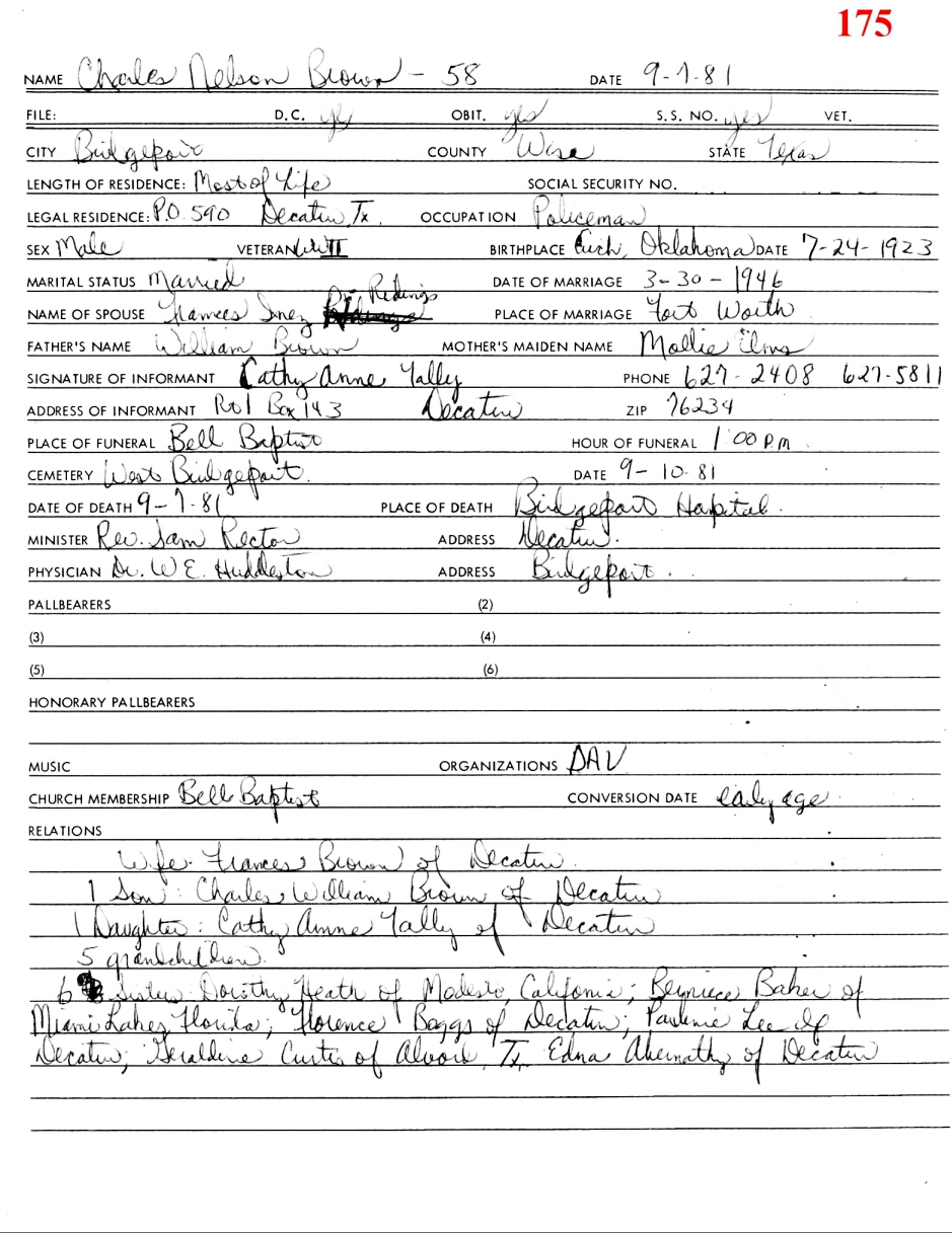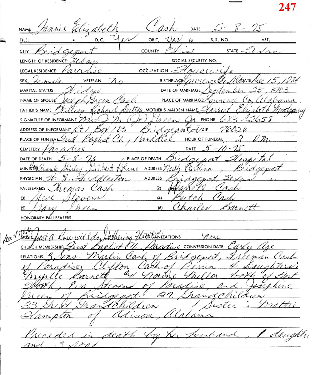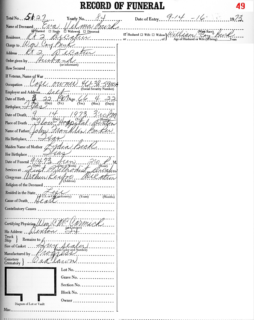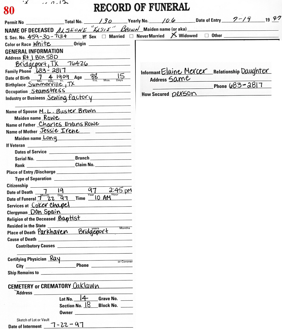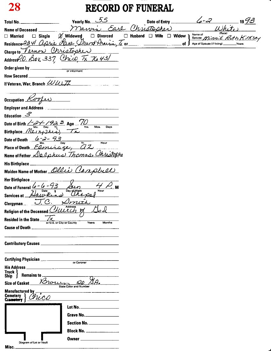 A boy from AR, Killed on railroad Christian Funeral Home C22/C22-254.jpg Aaron, James Thomas Christian Funeral Home C31/C31-110.jpg Abbott, Julia Gage Christian Funeral Home C31/C31-123.jpg Abbott, Lewis Elmer Coker Funeral Home C56/C56-091.jpg Abbott, T. Aleck Christian Funeral Home C35/C35-273.jpg Abbs, James Russell Christian Funeral Home C01/C01-110.jpg Abel, Anto A., Boyd Funeral Home B88/B88-135.jpg Abel, Arlyce Astor, Boyd Funeral File Sheet BF81/BF81-141.jpg Abel, Evelyn Myra Muse, Boyd Funeral File Sheet BF95/BF95-001.jpg Abel, Helen Elizabeth Miller, Boyd Funeral File Sheet BF91/BF91-006.jpg Abel, Helen Miller, Boyd Funeral Home B88/B88-125.jpg Abel, Nancy Jean Prince Coker Funeral Home C64/C64-076.jpg Abel, Walter V. Christian Funeral Home C22/C22-162.jpg Abernathy , Mary Ruth Cook Christian Funeral Home C86/C86-137.jpg Abernathy, Baby of Bill & Edna Earl, Hawkins Funeral Home H63/H63-110.jpg Abernathy, Ella Dora Jackson Christian Funeral Home C39/C39-261.jpg Abernathy, L.D., Mr. Christian Funeral Home C22/C22-269.jpg Abernathy, William Glenn, Hawkins Funeral File Sheet HF87/HF87-107.jpg Abernathy, William Glenn, Hawkins Funeral Home H84/H84-282.jpg Able, Barbara Elizabeth "Betty" Morris Coker Funeral Home C64/C64-215.jpg Able, Carrol Floyd "Crick", Hawkins Funeral File Sheet HF00/HF00-001.jpg Able, Forest Lee Christian Funeral Home C50/C50-017.jpg Able, Thomas Franklin Coker Funeral Home C56/C56-148.jpg Able, William Morgan Coker Funeral Home C56/C56-264a.jpg Able, William Morgan Coker Funeral Home C56/C56-264.jpg Absher, Donald Marion Christian Funeral Home C01/C01-182.jpg Absher, Opal Lee Kaker Hunter, Hawkins Funeral File Sheet HF01/HF01-001.jpg Absher, Ulyses Sherman Christian Funeral Home C31/C31-201.jpg Absher, William P. "Bill", Hawkins Funeral File Sheet HF93/HF93-001.jpg Absher, William P., Hawkins Funeral Home H93/H93-088.jpg Acker, Mary Elizabeth Christian Funeral Home C15/C15-102.jpg Acker, William H., Dr. Christian Funeral Home C22/C22-084.jpg Acola, Marian Elizabeth Woody Christian Funeral Home C98/C98-299.jpg Acola, Sam Christian Funeral Home C80/C80-104.jpg Acola, Sam, Hawkins/Christian Funeral Home HCD80/HCD80-003.jpg Action, Bonnie Lynn Bowser, Hawkins Funeral File Sheet HF73/HF73-0001.jpg Acton, Bonnie Lynn Bauser, Hawkins Funeral Home H80/H80-028.jpg Adair, Betty Darline Christian Funeral Home C45/C45-102.jpg Adair, Carl Sine Christian Funeral Home C45/C45-102.jpg Adair, Ester, Hawkins Funeral File Sheet HF73/HF73-0002.jpg Adama, Randy Dale, Jr., Hawkins Funeral Home H90/H90-110.jpg Adams, Acie Dee Christian Funeral Home C76/C76-098.jpg Adams, Alonzo Bright, Hawkins Funeral Home H61/H61-044.jpg Adams, Audrey, Boyd Funeral Home B88/B88-165.jpg Adams, Barry Carroll, Hawkins Funeral File Sheet HF85/HF85-043.jpg Adams, Beulah Etta Pitts, Hawkins Funeral File Sheet HF73/HF73-0004.jpg Adams, Billy Carroll, Hawkins Funeral Home H84/H84-189.jpg Adams, Carl Victor, Hawkins Funeral Home H68/H68-061.jpg Adams, Ceffie Daisy Craighead Christian Funeral Home C45/C45-155.jpg Adams, Charles Norris, Boyd Funeral File Sheet BF98/BF98-064.jpg Adams, Charlie Bruce Christian Funeral Home C59/C59-090.jpg Adams, Corinne P. Peterson Christian Funeral Home C01/C01-193.jpg Adams, Danny Charles, Boyd Funeral File Sheet BF95/BF95-135.jpg Adams, Dewey Avon, Hawkins Funeral File Sheet HF73/HF73-0003.jpg Adams, Edgar Ross, Hawkins Funeral Home H57/H57-039.jpg Adams, Elmer Justice, Hawkins Funeral Home H66/H66-210.jpg Adams, Eula C. Ingle, Hawkins Funeral Home H69/H69-131.jpg Adams, Garland Wayne, Hawkins Funeral File Sheet HF89/HF89-002.jpg Adams, Garland Wayne, Hawkins Funeral Home H88/H88-126.jpg Adams, George Martain Christian Funeral Home C49/C49-028.jpg Adams, Jerry Dean Christian Funeral Home C73/C73-206.jpg Adams, John Christian Funeral Home C35/C35-289.jpg Adams, John Henry, Hawkins Funeral File Sheet HF01/HF01-002.jpg Adams, John Louis, Hawkins Funeral Home H55/H55-147.jpg Adams, Josie Jones Churchhill Christian Funeral Home C91/C91-116.jpg Adams, Kenney Milton "Ragmop", Boyd Funeral File Sheet BF81/BF81-015.jpg Adams, Laura Sue Coker Funeral Home C27/C27-008.jpg Adams, Leatrice Isabell Moler, Hawkins Funeral File Sheet HF99/HF99-001.jpg Adams, Lera "Gerry" Burnette Woltz, Hawkins Funeral File Sheet HF98/HF98-001.jpg Adams, Leroy Franklin Christian Funeral Home C93/C93-076.jpg Adams, Lillian Josie Christian Funeral Home C73/C73-167.jpg Adams, Margaret Alma Murphy Christian Funeral Home C68/C68-465.jpg Adams, Margaret Iola Parish Christian Funeral Home C95/C95-146.jpg Adams, Marina Helen Young, Hawkins Funeral Home H69/H69-005.jpg Adams, Martha Ann Malone Christian Funeral Home C42/C42-076.jpg Adams, Mary Elizabeth "Betty"(Karen), Hawkins Funeral Home H53/H53-107.jpg Adams, Mary Ferguson Dill, Hawkins Funeral Home H60/H60-031.jpg Adams, Milton Elmore Christian Funeral Home C39/C39-106.jpg Adams, Myrtle Floyd Harris, Hawkins Funeral File Sheet HF01/HF01-003.jpg Adams, Newell Wayne "Bill" Dec 10, 1980 Mrs. Adams Pleasant Grove #1 CL80/CL80-38 Adams, Oma Nov 23, 1981 Bud Adams & Jessie Ragsdale Sweetwater CL80/CL80-107 Adams, Randy Dale, Jr., Hawkins Funeral File Sheet HF91/HF91-001.jpg Adams, Robert Esco, Hawkins Funeral File Sheet HF73/HF73-0005.jpg Adams, Robert Louis, Hawkins Funeral Home H57/H57-171.jpg Adams, Ronald Floyd Christian Funeral Home C89/C89-163.jpg Adams, Sarah F. Christian Funeral Home C45/C45-259.jpg Adams, W., Hawkins Funeral Home H23/H23-148.jpg Adams, William Rosco "Bud" Christian Funeral Home C88/C88-185.jpg Adams, William Walter, Hawkins Funeral Home H61/H61-145.jpg Addington, Jimmy Ray Christian Funeral Home C88/C88-260.jpg Adkins, Lonnie Roe Christian Funeral Home C93/C93-012.jpg Adkins, Paul William, Hawkins Funeral Home H33/H33-091.jpg Adkins, Peggy Mildred Thomas Christian Funeral Home C86/C86-283.jpg Admire, Clarence Holt, Hawkins Funeral Home H57/H57-114.jpg Admire, Willie Audrey King, Hawkins Funeral Home H55/H55-151.jpg Aerni, Lucile Flowers, Hawki