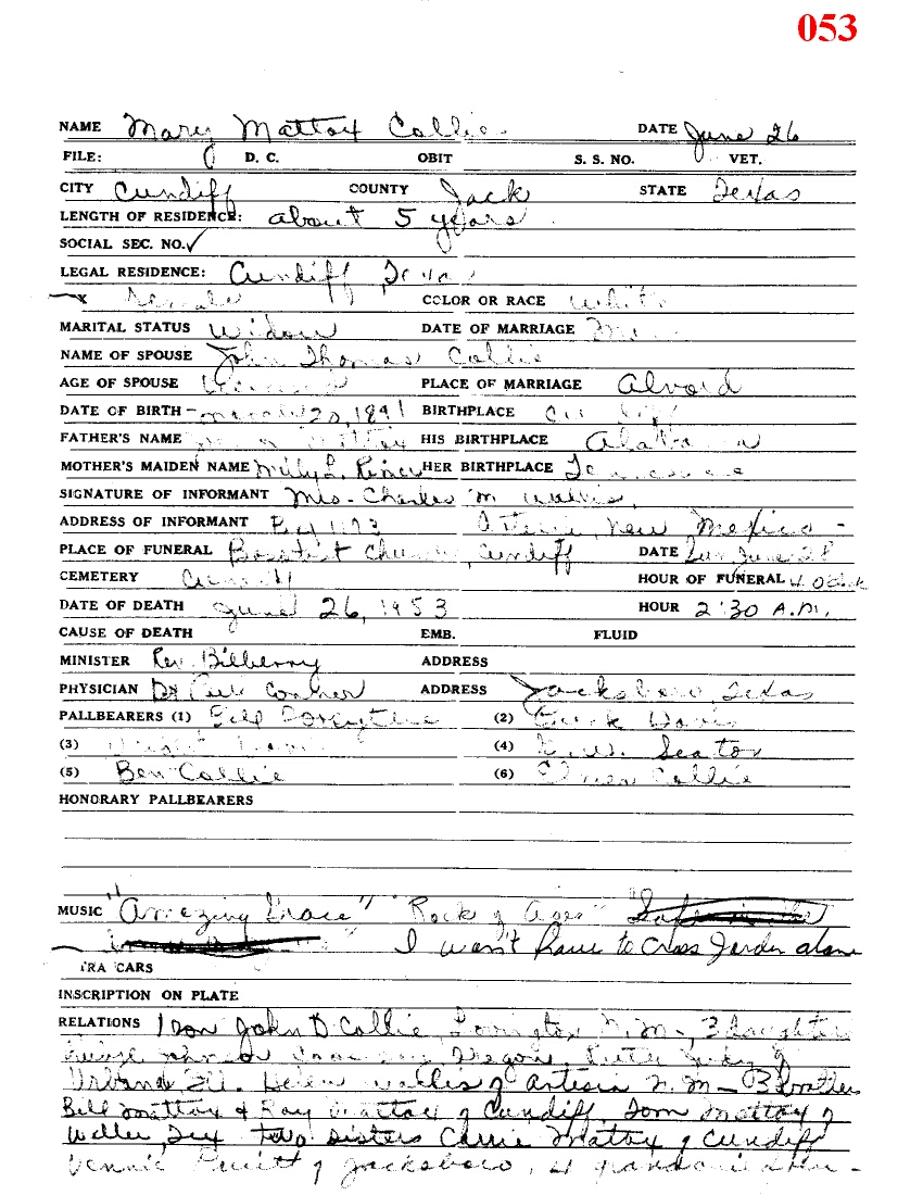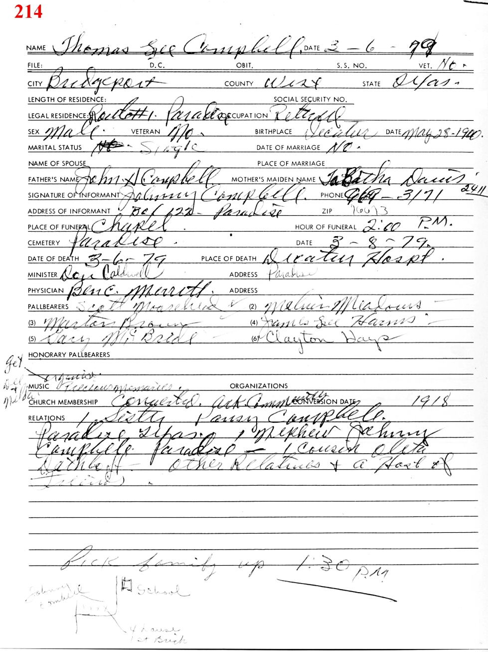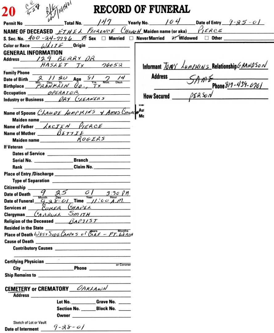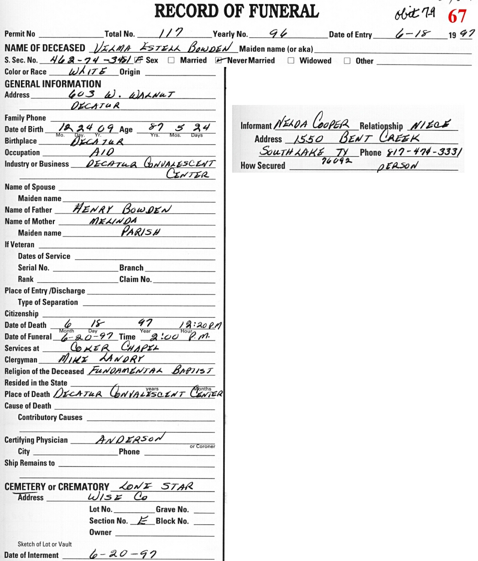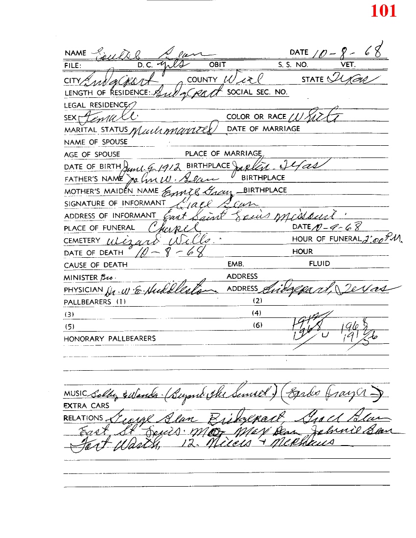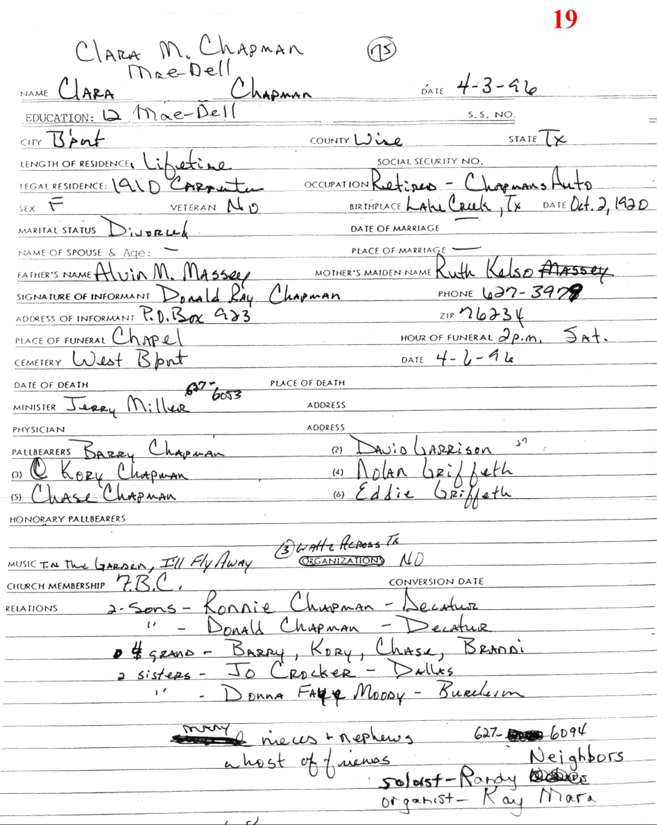 A boy from AR, Killed on railroad Christian Funeral Home C22/C22-254.jpg Aaron, James Thomas Christian Funeral Home C31/C31-110.jpg Abbott, Julia Gage Christian Funeral Home C31/C31-123.jpg Abbott, Lewis Elmer Coker Funeral Home C56/C56-091.jpg Abbott, T. Aleck Christian Funeral Home C35/C35-273.jpg Abbs, James Russell Christian Funeral Home C01/C01-110.jpg Abel, Anto A., Boyd Funeral Home B88/B88-135.jpg Abel, Arlyce Astor, Boyd Funeral File Sheet BF81/BF81-141.jpg Abel, Evelyn Myra Muse, Boyd Funeral File Sheet BF95/BF95-001.jpg Abel, Helen Elizabeth Miller, Boyd Funeral File Sheet BF91/BF91-006.jpg Abel, Helen Miller, Boyd Funeral Home B88/B88-125.jpg Abel, Nancy Jean Prince Coker Funeral Home C64/C64-076.jpg Abel, Walter V. Christian Funeral Home C22/C22-162.jpg Abernathy , Mary Ruth Cook Christian Funeral Home C86/C86-137.jpg Abernathy, Baby of Bill & Edna Earl, Hawkins Funeral Home H63/H63-110.jpg Abernathy, Ella Dora Jackson Christian Funeral Home C39/C39-261.jpg Abernathy, L.D., Mr. Christian Funeral Home C22/C22-269.jpg Abernathy, William Glenn, Hawkins Funeral File Sheet HF87/HF87-107.jpg Abernathy, William Glenn, Hawkins Funeral Home H84/H84-282.jpg Able, Barbara Elizabeth "Betty" Morris Coker Funeral Home C64/C64-215.jpg Able, Carrol Floyd "Crick", Hawkins Funeral File Sheet HF00/HF00-001.jpg Able, Forest Lee Christian Funeral Home C50/C50-017.jpg Able, Thomas Franklin Coker Funeral Home C56/C56-148.jpg Able, William Morgan Coker Funeral Home C56/C56-264a.jpg Able, William Morgan Coker Funeral Home C56/C56-264.jpg Absher, Donald Marion Christian Funeral Home C01/C01-182.jpg Absher, Opal Lee Kaker Hunter, Hawkins Funeral File Sheet HF01/HF01-001.jpg Absher, Ulyses Sherman Christian Funeral Home C31/C31-201.jpg Absher, William P. "Bill", Hawkins Funeral File Sheet HF93/HF93-001.jpg Absher, William P., Hawkins Funeral Home H93/H93-088.jpg Acker, Mary Elizabeth Christian Funeral Home C15/C15-102.jpg Acker, William H., Dr. Christian Funeral Home C22/C22-084.jpg Acola, Marian Elizabeth Woody Christian Funeral Home C98/C98-299.jpg Acola, Sam Christian Funeral Home C80/C80-104.jpg Acola, Sam, Hawkins/Christian Funeral Home HCD80/HCD80-003.jpg Action, Bonnie Lynn Bowser, Hawkins Funeral File Sheet HF73/HF73-0001.jpg Acton, Bonnie Lynn Bauser, Hawkins Funeral Home H80/H80-028.jpg Adair, Betty Darline Christian Funeral Home C45/C45-102.jpg Adair, Carl Sine Christian Funeral Home C45/C45-102.jpg Adair, Ester, Hawkins Funeral File Sheet HF73/HF73-0002.jpg Adama, Randy Dale, Jr., Hawkins Funeral Home H90/H90-110.jpg Adams, Acie Dee Christian Funeral Home C76/C76-098.jpg Adams, Alonzo Bright, Hawkins Funeral Home H61/H61-044.jpg Adams, Audrey, Boyd Funeral Home B88/B88-165.jpg Adams, Barry Carroll, Hawkins Funeral File Sheet HF85/HF85-043.jpg Adams, Beulah Etta Pitts, Hawkins Funeral File Sheet HF73/HF73-0004.jpg Adams, Billy Carroll, Hawkins Funeral Home H84/H84-189.jpg Adams, Carl Victor, Hawkins Funeral Home H68/H68-061.jpg Adams, Ceffie Daisy Craighead Christian Funeral Home C45/C45-155.jpg Adams, Charles Norris, Boyd Funeral File Sheet BF98/BF98-064.jpg Adams, Charlie Bruce Christian Funeral Home C59/C59-090.jpg Adams, Corinne P. Peterson Christian Funeral Home C01/C01-193.jpg Adams, Danny Charles, Boyd Funeral File Sheet BF95/BF95-135.jpg Adams, Dewey Avon, Hawkins Funeral File Sheet HF73/HF73-0003.jpg Adams, Edgar Ross, Hawkins Funeral Home H57/H57-039.jpg Adams, Elmer Justice, Hawkins Funeral Home H66/H66-210.jpg Adams, Eula C. Ingle, Hawkins Funeral Home H69/H69-131.jpg Adams, Garland Wayne, Hawkins Funeral File Sheet HF89/HF89-002.jpg Adams, Garland Wayne, Hawkins Funeral Home H88/H88-126.jpg Adams, George Martain Christian Funeral Home C49/C49-028.jpg Adams, Jerry Dean Christian Funeral Home C73/C73-206.jpg Adams, John Christian Funeral Home C35/C35-289.jpg Adams, John Henry, Hawkins Funeral File Sheet HF01/HF01-002.jpg Adams, John Louis, Hawkins Funeral Home H55/H55-147.jpg Adams, Josie Jones Churchhill Christian Funeral Home C91/C91-116.jpg Adams, Kenney Milton "Ragmop", Boyd Funeral File Sheet BF81/BF81-015.jpg Adams, Laura Sue Coker Funeral Home C27/C27-008.jpg Adams, Leatrice Isabell Moler, Hawkins Funeral File Sheet HF99/HF99-001.jpg Adams, Lera "Gerry" Burnette Woltz, Hawkins Funeral File Sheet HF98/HF98-001.jpg Adams, Leroy Franklin Christian Funeral Home C93/C93-076.jpg Adams, Lillian Josie Christian Funeral Home C73/C73-167.jpg Adams, Margaret Alma Murphy Christian Funeral Home C68/C68-465.jpg Adams, Margaret Iola Parish Christian Funeral Home C95/C95-146.jpg Adams, Marina Helen Young, Hawkins Funeral Home H69/H69-005.jpg Adams, Martha Ann Malone Christian Funeral Home C42/C42-076.jpg Adams, Mary Elizabeth "Betty"(Karen), Hawkins Funeral Home H53/H53-107.jpg Adams, Mary Ferguson Dill, Hawkins Funeral Home H60/H60-031.jpg Adams, Milton Elmore Christian Funeral Home C39/C39-106.jpg Adams, Myrtle Floyd Harris, Hawkins Funeral File Sheet HF01/HF01-003.jpg Adams, Newell Wayne "Bill" Dec 10, 1980 Mrs. Adams Pleasant Grove #1 CL80/CL80-38 Adams, Oma Nov 23, 1981 Bud Adams & Jessie Ragsdale Sweetwater CL80/CL80-107 Adams, Randy Dale, Jr., Hawkins Funeral File Sheet HF91/HF91-001.jpg Adams, Robert Esco, Hawkins Funeral File Sheet HF73/HF73-0005.jpg Adams, Robert Louis, Hawkins Funeral Home H57/H57-171.jpg Adams, Ronald Floyd Christian Funeral Home C89/C89-163.jpg Adams, Sarah F. Christian Funeral Home C45/C45-259.jpg Adams, W., Hawkins Funeral Home H23/H23-148.jpg Adams, William Rosco "Bud" Christian Funeral Home C88/C88-185.jpg Adams, William Walter, Hawkins Funeral Home H61/H61-145.jpg Addington, Jimmy Ray Christian Funeral Home C88/C88-260.jpg Adkins, Lonnie Roe Christian Funeral Home C93/C93-012.jpg Adkins, Paul William, Hawkins Funeral Home H33/H33-091.jpg Adkins, Peggy Mildred Thomas Christian Funeral Home C86/C86-283.jpg Admire, Clarence Holt, Hawkins Funeral Home H57/H57-114.jpg Admire, Willie Audrey King, Hawkins Funeral Home H55/H55-151.jpg Aerni, Lucile Flowers, Hawki
