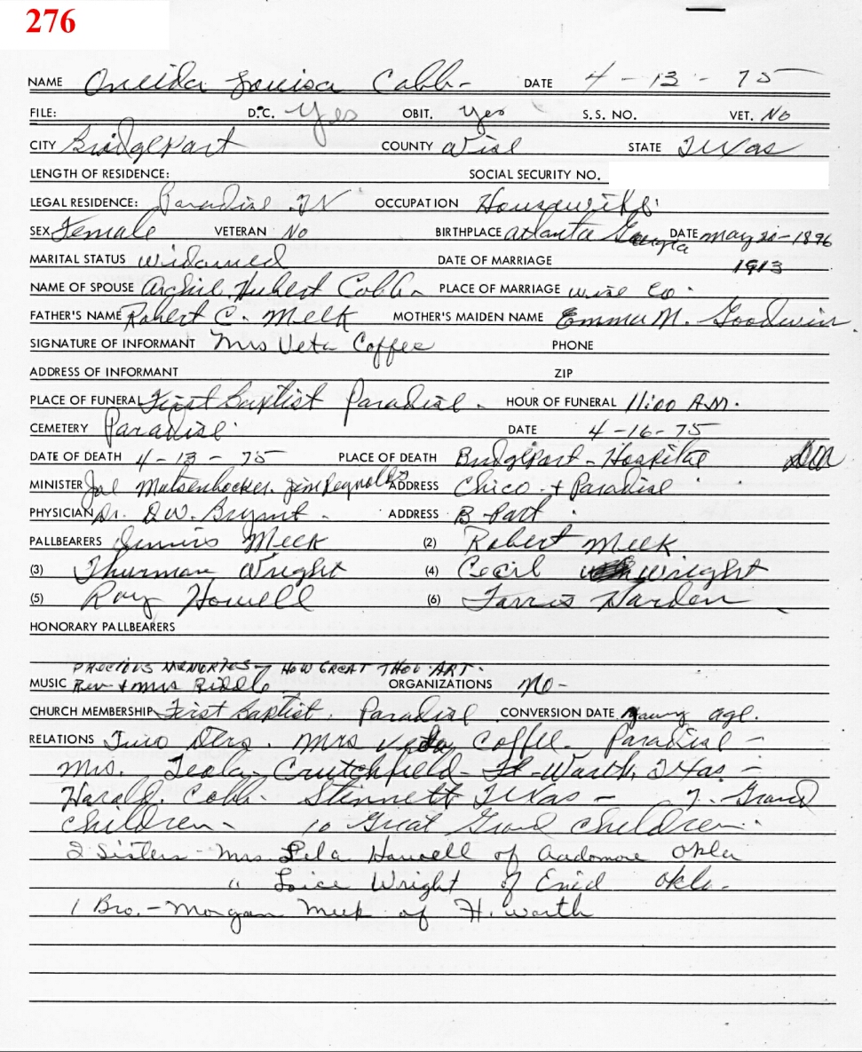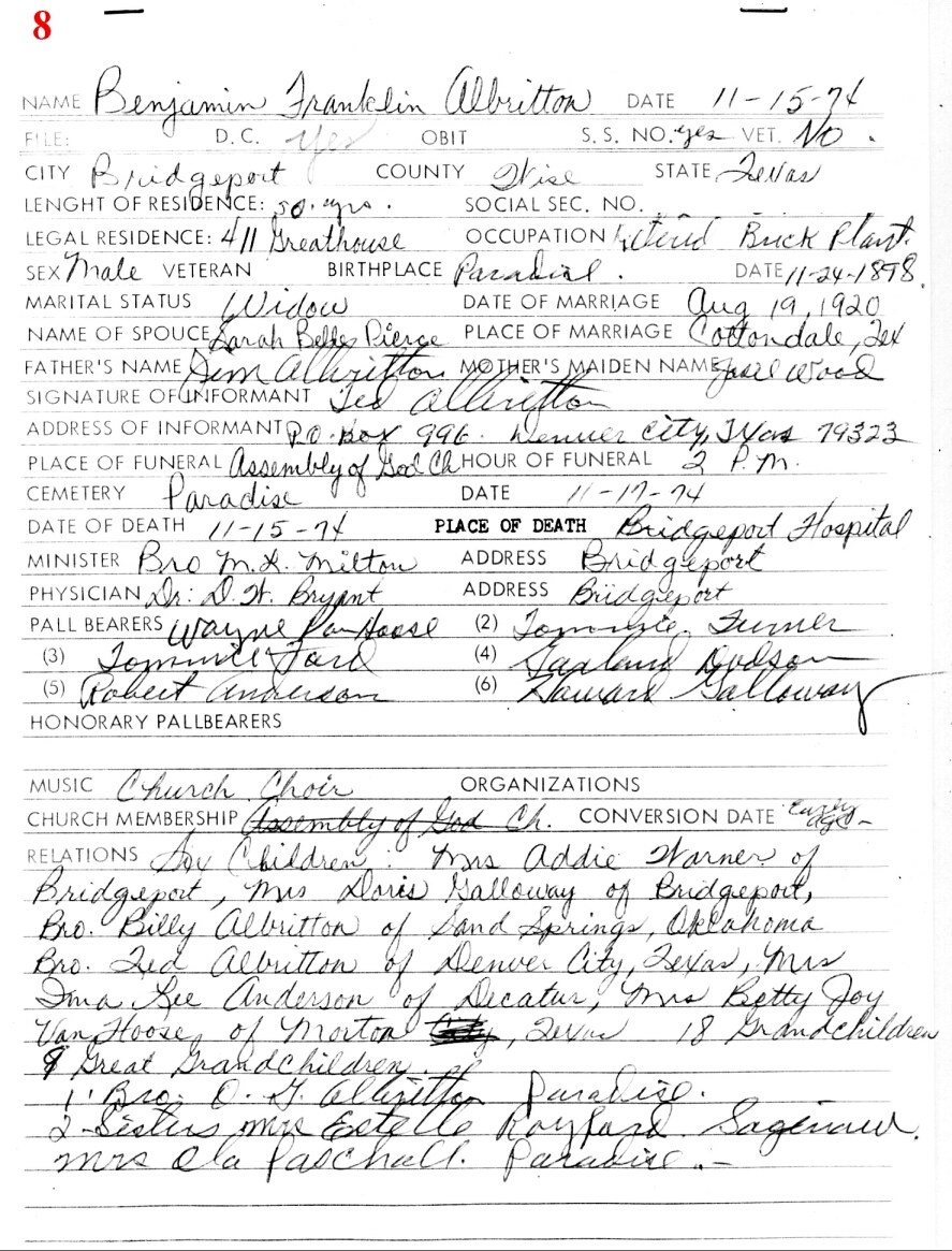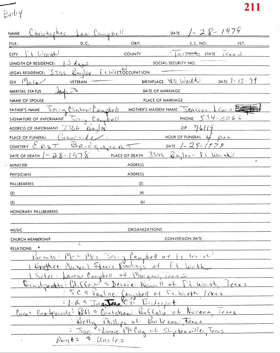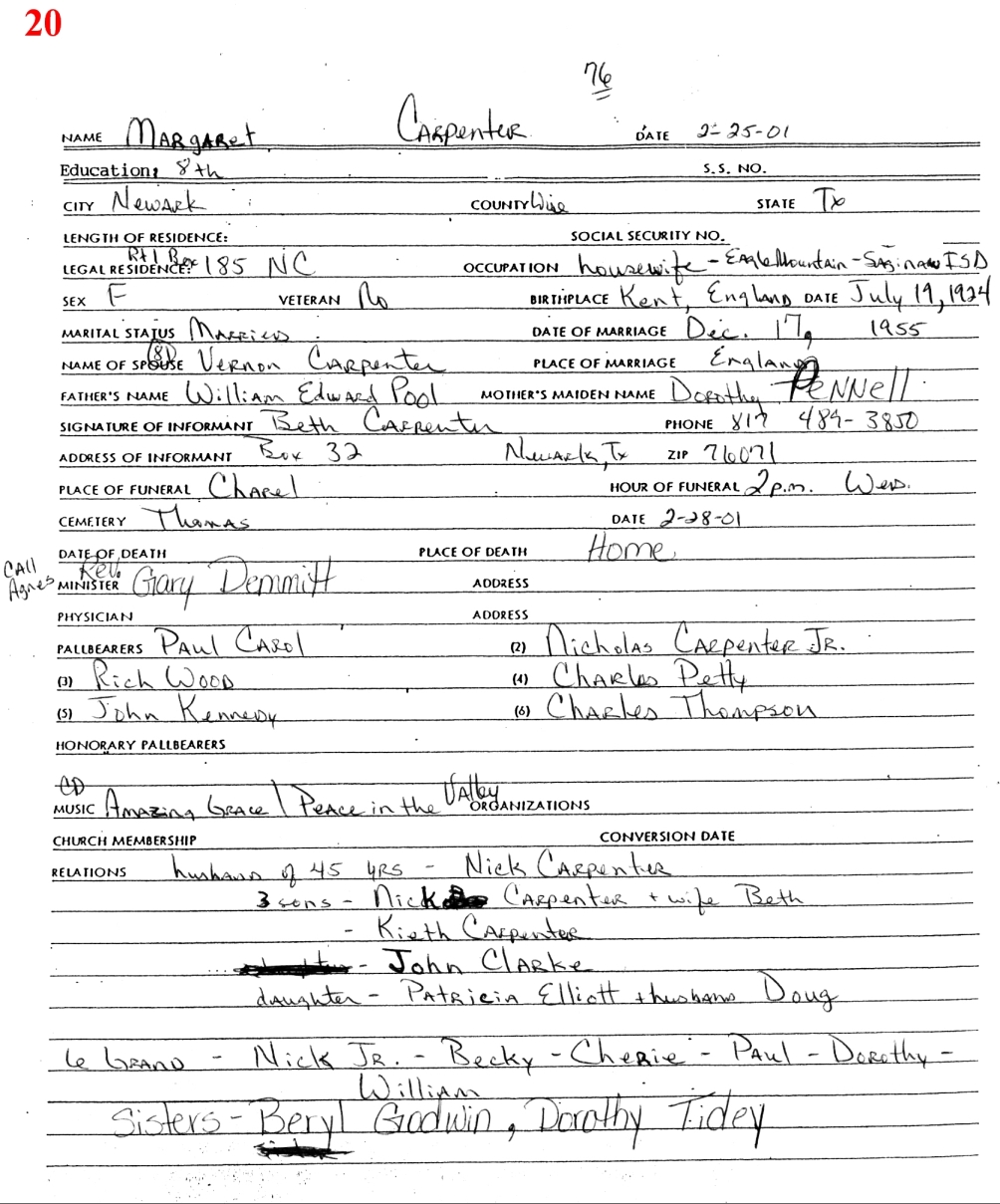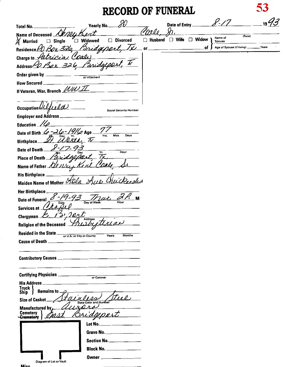 A boy from AR, Killed on railroad Christian Funeral Home C22/C22-254.jpg Aaron, James Thomas Christian Funeral Home C31/C31-110.jpg Abbott, Julia Gage Christian Funeral Home C31/C31-123.jpg Abbott, Lewis Elmer Coker Funeral Home C56/C56-091.jpg Abbott, T. Aleck Christian Funeral Home C35/C35-273.jpg Abbs, James Russell Christian Funeral Home C01/C01-110.jpg Abel, Anto A., Boyd Funeral Home B88/B88-135.jpg Abel, Arlyce Astor, Boyd Funeral File Sheet BF81/BF81-141.jpg Abel, Evelyn Myra Muse, Boyd Funeral File Sheet BF95/BF95-001.jpg Abel, Helen Elizabeth Miller, Boyd Funeral File Sheet BF91/BF91-006.jpg Abel, Helen Miller, Boyd Funeral Home B88/B88-125.jpg Abel, Nancy Jean Prince Coker Funeral Home C64/C64-076.jpg Abel, Walter V. Christian Funeral Home C22/C22-162.jpg Abernathy , Mary Ruth Cook Christian Funeral Home C86/C86-137.jpg Abernathy, Baby of Bill & Edna Earl, Hawkins Funeral Home H63/H63-110.jpg Abernathy, Ella Dora Jackson Christian Funeral Home C39/C39-261.jpg Abernathy, L.D., Mr. Christian Funeral Home C22/C22-269.jpg Abernathy, William Glenn, Hawkins Funeral File Sheet HF87/HF87-107.jpg Abernathy, William Glenn, Hawkins Funeral Home H84/H84-282.jpg Able, Barbara Elizabeth "Betty" Morris Coker Funeral Home C64/C64-215.jpg Able, Carrol Floyd "Crick", Hawkins Funeral File Sheet HF00/HF00-001.jpg Able, Forest Lee Christian Funeral Home C50/C50-017.jpg Able, Thomas Franklin Coker Funeral Home C56/C56-148.jpg Able, William Morgan Coker Funeral Home C56/C56-264a.jpg Able, William Morgan Coker Funeral Home C56/C56-264.jpg Absher, Donald Marion Christian Funeral Home C01/C01-182.jpg Absher, Opal Lee Kaker Hunter, Hawkins Funeral File Sheet HF01/HF01-001.jpg Absher, Ulyses Sherman Christian Funeral Home C31/C31-201.jpg Absher, William P. "Bill", Hawkins Funeral File Sheet HF93/HF93-001.jpg Absher, William P., Hawkins Funeral Home H93/H93-088.jpg Acker, Mary Elizabeth Christian Funeral Home C15/C15-102.jpg Acker, William H., Dr. Christian Funeral Home C22/C22-084.jpg Acola, Marian Elizabeth Woody Christian Funeral Home C98/C98-299.jpg Acola, Sam Christian Funeral Home C80/C80-104.jpg Acola, Sam, Hawkins/Christian Funeral Home HCD80/HCD80-003.jpg Action, Bonnie Lynn Bowser, Hawkins Funeral File Sheet HF73/HF73-0001.jpg Acton, Bonnie Lynn Bauser, Hawkins Funeral Home H80/H80-028.jpg Adair, Betty Darline Christian Funeral Home C45/C45-102.jpg Adair, Carl Sine Christian Funeral Home C45/C45-102.jpg Adair, Ester, Hawkins Funeral File Sheet HF73/HF73-0002.jpg Adama, Randy Dale, Jr., Hawkins Funeral Home H90/H90-110.jpg Adams, Acie Dee Christian Funeral Home C76/C76-098.jpg Adams, Alonzo Bright, Hawkins Funeral Home H61/H61-044.jpg Adams, Audrey, Boyd Funeral Home B88/B88-165.jpg Adams, Barry Carroll, Hawkins Funeral File Sheet HF85/HF85-043.jpg Adams, Beulah Etta Pitts, Hawkins Funeral File Sheet HF73/HF73-0004.jpg Adams, Billy Carroll, Hawkins Funeral Home H84/H84-189.jpg Adams, Carl Victor, Hawkins Funeral Home H68/H68-061.jpg Adams, Ceffie Daisy Craighead Christian Funeral Home C45/C45-155.jpg Adams, Charles Norris, Boyd Funeral File Sheet BF98/BF98-064.jpg Adams, Charlie Bruce Christian Funeral Home C59/C59-090.jpg Adams, Corinne P. Peterson Christian Funeral Home C01/C01-193.jpg Adams, Danny Charles, Boyd Funeral File Sheet BF95/BF95-135.jpg Adams, Dewey Avon, Hawkins Funeral File Sheet HF73/HF73-0003.jpg Adams, Edgar Ross, Hawkins Funeral Home H57/H57-039.jpg Adams, Elmer Justice, Hawkins Funeral Home H66/H66-210.jpg Adams, Eula C. Ingle, Hawkins Funeral Home H69/H69-131.jpg Adams, Garland Wayne, Hawkins Funeral File Sheet HF89/HF89-002.jpg Adams, Garland Wayne, Hawkins Funeral Home H88/H88-126.jpg Adams, George Martain Christian Funeral Home C49/C49-028.jpg Adams, Jerry Dean Christian Funeral Home C73/C73-206.jpg Adams, John Christian Funeral Home C35/C35-289.jpg Adams, John Henry, Hawkins Funeral File Sheet HF01/HF01-002.jpg Adams, John Louis, Hawkins Funeral Home H55/H55-147.jpg Adams, Josie Jones Churchhill Christian Funeral Home C91/C91-116.jpg Adams, Kenney Milton "Ragmop", Boyd Funeral File Sheet BF81/BF81-015.jpg Adams, Laura Sue Coker Funeral Home C27/C27-008.jpg Adams, Leatrice Isabell Moler, Hawkins Funeral File Sheet HF99/HF99-001.jpg Adams, Lera "Gerry" Burnette Woltz, Hawkins Funeral File Sheet HF98/HF98-001.jpg Adams, Leroy Franklin Christian Funeral Home C93/C93-076.jpg Adams, Lillian Josie Christian Funeral Home C73/C73-167.jpg Adams, Margaret Alma Murphy Christian Funeral Home C68/C68-465.jpg Adams, Margaret Iola Parish Christian Funeral Home C95/C95-146.jpg Adams, Marina Helen Young, Hawkins Funeral Home H69/H69-005.jpg Adams, Martha Ann Malone Christian Funeral Home C42/C42-076.jpg Adams, Mary Elizabeth "Betty"(Karen), Hawkins Funeral Home H53/H53-107.jpg Adams, Mary Ferguson Dill, Hawkins Funeral Home H60/H60-031.jpg Adams, Milton Elmore Christian Funeral Home C39/C39-106.jpg Adams, Myrtle Floyd Harris, Hawkins Funeral File Sheet HF01/HF01-003.jpg Adams, Newell Wayne "Bill" Dec 10, 1980 Mrs. Adams Pleasant Grove #1 CL80/CL80-38 Adams, Oma Nov 23, 1981 Bud Adams & Jessie Ragsdale Sweetwater CL80/CL80-107 Adams, Randy Dale, Jr., Hawkins Funeral File Sheet HF91/HF91-001.jpg Adams, Robert Esco, Hawkins Funeral File Sheet HF73/HF73-0005.jpg Adams, Robert Louis, Hawkins Funeral Home H57/H57-171.jpg Adams, Ronald Floyd Christian Funeral Home C89/C89-163.jpg Adams, Sarah F. Christian Funeral Home C45/C45-259.jpg Adams, W., Hawkins Funeral Home H23/H23-148.jpg Adams, William Rosco "Bud" Christian Funeral Home C88/C88-185.jpg Adams, William Walter, Hawkins Funeral Home H61/H61-145.jpg Addington, Jimmy Ray Christian Funeral Home C88/C88-260.jpg Adkins, Lonnie Roe Christian Funeral Home C93/C93-012.jpg Adkins, Paul William, Hawkins Funeral Home H33/H33-091.jpg Adkins, Peggy Mildred Thomas Christian Funeral Home C86/C86-283.jpg Admire, Clarence Holt, Hawkins Funeral Home H57/H57-114.jpg Admire, Willie Audrey King, Hawkins Funeral Home H55/H55-151.jpg Aerni, Lucile Flowers, Hawki