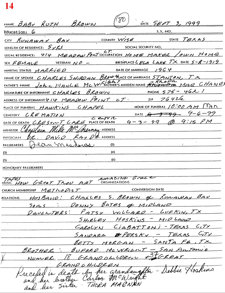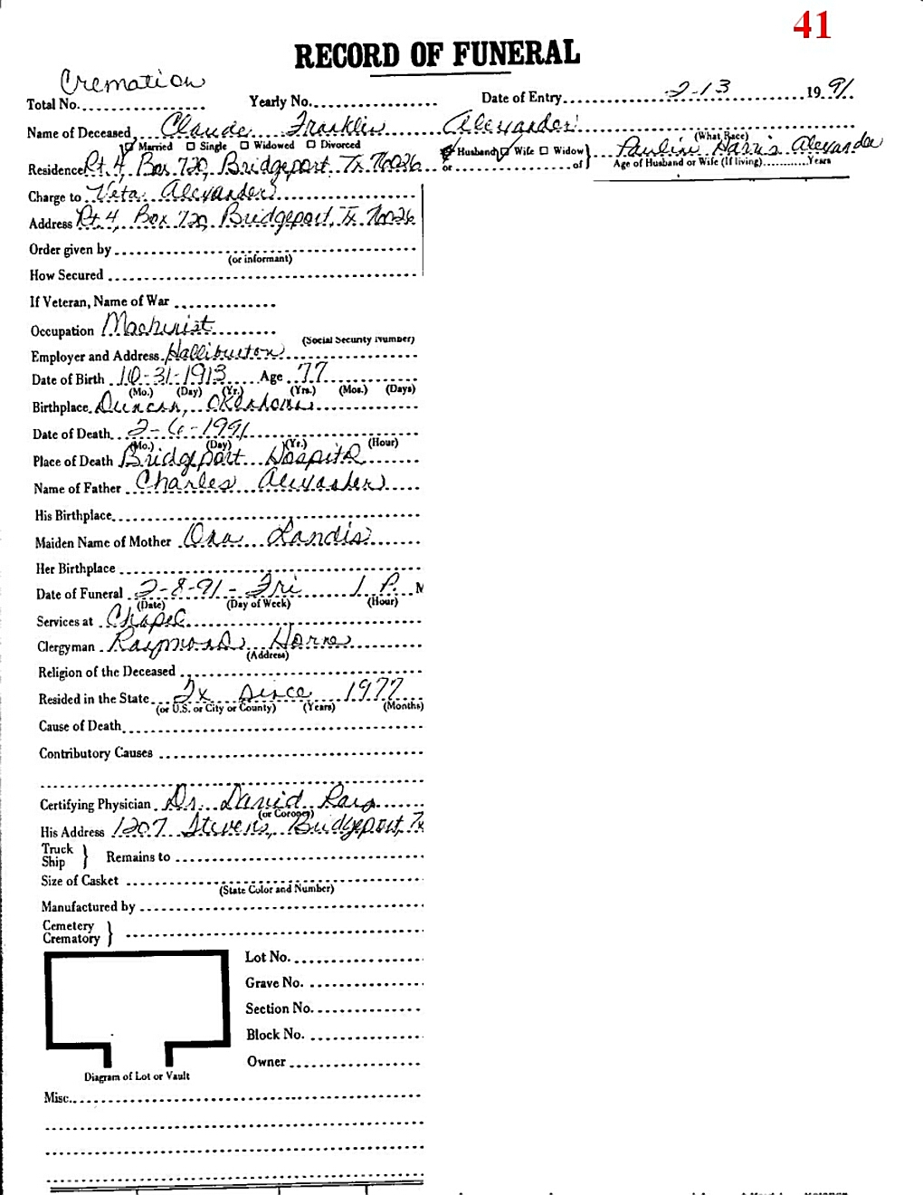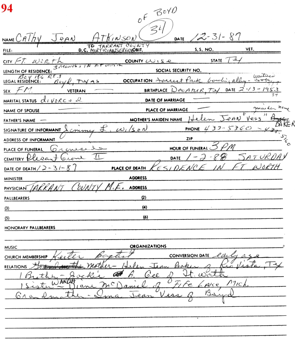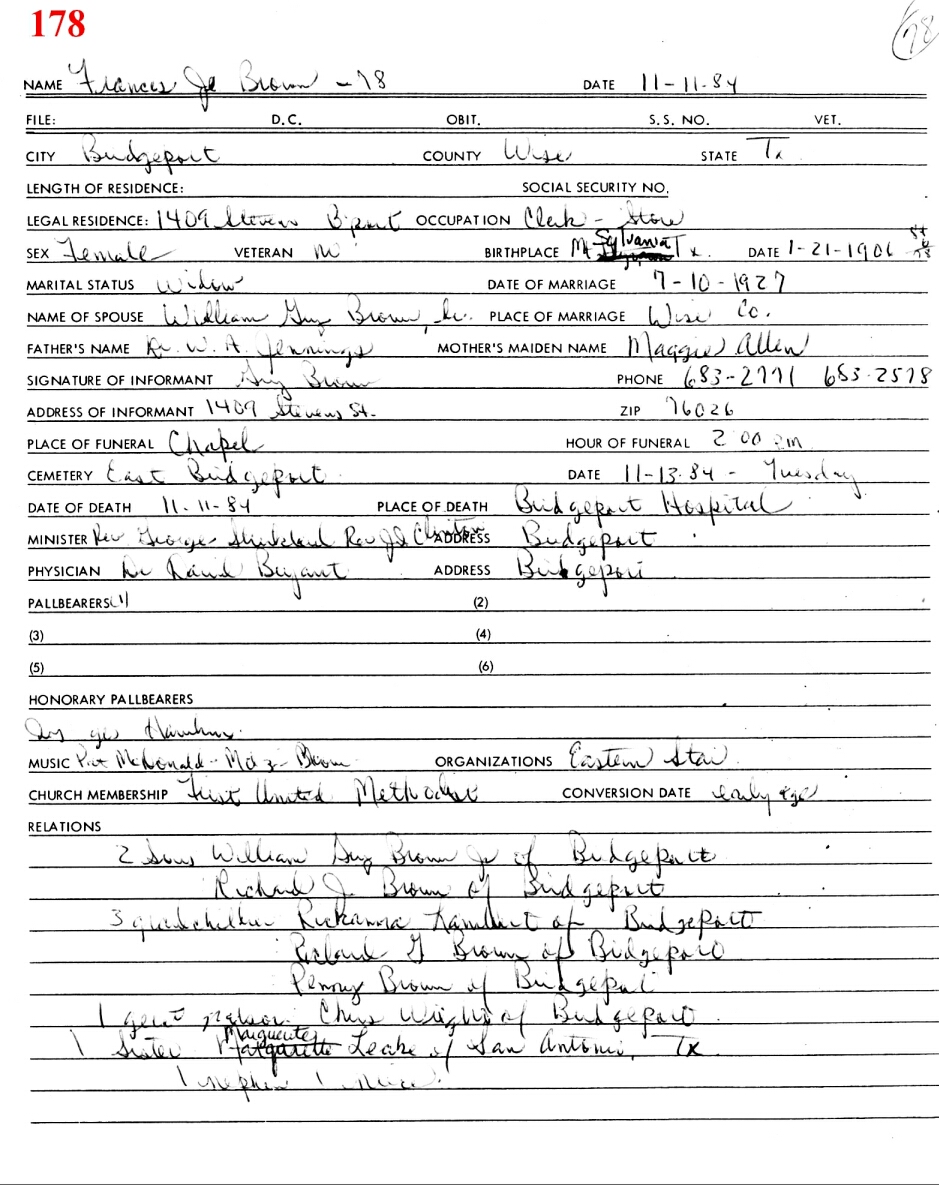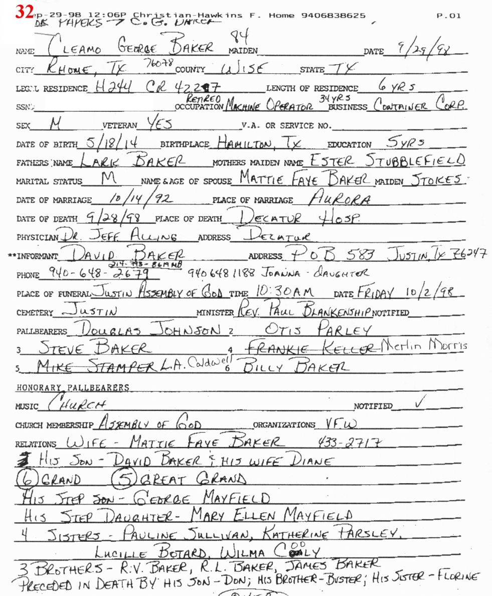 A boy from AR, Killed on railroad Christian Funeral Home C22/C22-254.jpg Aaron, James Thomas Christian Funeral Home C31/C31-110.jpg Abbott, Julia Gage Christian Funeral Home C31/C31-123.jpg Abbott, Lewis Elmer Coker Funeral Home C56/C56-091.jpg Abbott, T. Aleck Christian Funeral Home C35/C35-273.jpg Abbs, James Russell Christian Funeral Home C01/C01-110.jpg Abel, Anto A., Boyd Funeral Home B88/B88-135.jpg Abel, Arlyce Astor, Boyd Funeral File Sheet BF81/BF81-141.jpg Abel, Evelyn Myra Muse, Boyd Funeral File Sheet BF95/BF95-001.jpg Abel, Helen Elizabeth Miller, Boyd Funeral File Sheet BF91/BF91-006.jpg Abel, Helen Miller, Boyd Funeral Home B88/B88-125.jpg Abel, Nancy Jean Prince Coker Funeral Home C64/C64-076.jpg Abel, Walter V. Christian Funeral Home C22/C22-162.jpg Abernathy , Mary Ruth Cook Christian Funeral Home C86/C86-137.jpg Abernathy, Baby of Bill & Edna Earl, Hawkins Funeral Home H63/H63-110.jpg Abernathy, Ella Dora Jackson Christian Funeral Home C39/C39-261.jpg Abernathy, L.D., Mr. Christian Funeral Home C22/C22-269.jpg Abernathy, William Glenn, Hawkins Funeral File Sheet HF87/HF87-107.jpg Abernathy, William Glenn, Hawkins Funeral Home H84/H84-282.jpg Able, Barbara Elizabeth "Betty" Morris Coker Funeral Home C64/C64-215.jpg Able, Carrol Floyd "Crick", Hawkins Funeral File Sheet HF00/HF00-001.jpg Able, Forest Lee Christian Funeral Home C50/C50-017.jpg Able, Thomas Franklin Coker Funeral Home C56/C56-148.jpg Able, William Morgan Coker Funeral Home C56/C56-264a.jpg Able, William Morgan Coker Funeral Home C56/C56-264.jpg Absher, Donald Marion Christian Funeral Home C01/C01-182.jpg Absher, Opal Lee Kaker Hunter, Hawkins Funeral File Sheet HF01/HF01-001.jpg Absher, Ulyses Sherman Christian Funeral Home C31/C31-201.jpg Absher, William P. "Bill", Hawkins Funeral File Sheet HF93/HF93-001.jpg Absher, William P., Hawkins Funeral Home H93/H93-088.jpg Acker, Mary Elizabeth Christian Funeral Home C15/C15-102.jpg Acker, William H., Dr. Christian Funeral Home C22/C22-084.jpg Acola, Marian Elizabeth Woody Christian Funeral Home C98/C98-299.jpg Acola, Sam Christian Funeral Home C80/C80-104.jpg Acola, Sam, Hawkins/Christian Funeral Home HCD80/HCD80-003.jpg Action, Bonnie Lynn Bowser, Hawkins Funeral File Sheet HF73/HF73-0001.jpg Acton, Bonnie Lynn Bauser, Hawkins Funeral Home H80/H80-028.jpg Adair, Betty Darline Christian Funeral Home C45/C45-102.jpg Adair, Carl Sine Christian Funeral Home C45/C45-102.jpg Adair, Ester, Hawkins Funeral File Sheet HF73/HF73-0002.jpg Adama, Randy Dale, Jr., Hawkins Funeral Home H90/H90-110.jpg Adams, Acie Dee Christian Funeral Home C76/C76-098.jpg Adams, Alonzo Bright, Hawkins Funeral Home H61/H61-044.jpg Adams, Audrey, Boyd Funeral Home B88/B88-165.jpg Adams, Barry Carroll, Hawkins Funeral File Sheet HF85/HF85-043.jpg Adams, Beulah Etta Pitts, Hawkins Funeral File Sheet HF73/HF73-0004.jpg Adams, Billy Carroll, Hawkins Funeral Home H84/H84-189.jpg Adams, Carl Victor, Hawkins Funeral Home H68/H68-061.jpg Adams, Ceffie Daisy Craighead Christian Funeral Home C45/C45-155.jpg Adams, Charles Norris, Boyd Funeral File Sheet BF98/BF98-064.jpg Adams, Charlie Bruce Christian Funeral Home C59/C59-090.jpg Adams, Corinne P. Peterson Christian Funeral Home C01/C01-193.jpg Adams, Danny Charles, Boyd Funeral File Sheet BF95/BF95-135.jpg Adams, Dewey Avon, Hawkins Funeral File Sheet HF73/HF73-0003.jpg Adams, Edgar Ross, Hawkins Funeral Home H57/H57-039.jpg Adams, Elmer Justice, Hawkins Funeral Home H66/H66-210.jpg Adams, Eula C. Ingle, Hawkins Funeral Home H69/H69-131.jpg Adams, Garland Wayne, Hawkins Funeral File Sheet HF89/HF89-002.jpg Adams, Garland Wayne, Hawkins Funeral Home H88/H88-126.jpg Adams, George Martain Christian Funeral Home C49/C49-028.jpg Adams, Jerry Dean Christian Funeral Home C73/C73-206.jpg Adams, John Christian Funeral Home C35/C35-289.jpg Adams, John Henry, Hawkins Funeral File Sheet HF01/HF01-002.jpg Adams, John Louis, Hawkins Funeral Home H55/H55-147.jpg Adams, Josie Jones Churchhill Christian Funeral Home C91/C91-116.jpg Adams, Kenney Milton "Ragmop", Boyd Funeral File Sheet BF81/BF81-015.jpg Adams, Laura Sue Coker Funeral Home C27/C27-008.jpg Adams, Leatrice Isabell Moler, Hawkins Funeral File Sheet HF99/HF99-001.jpg Adams, Lera "Gerry" Burnette Woltz, Hawkins Funeral File Sheet HF98/HF98-001.jpg Adams, Leroy Franklin Christian Funeral Home C93/C93-076.jpg Adams, Lillian Josie Christian Funeral Home C73/C73-167.jpg Adams, Margaret Alma Murphy Christian Funeral Home C68/C68-465.jpg Adams, Margaret Iola Parish Christian Funeral Home C95/C95-146.jpg Adams, Marina Helen Young, Hawkins Funeral Home H69/H69-005.jpg Adams, Martha Ann Malone Christian Funeral Home C42/C42-076.jpg Adams, Mary Elizabeth "Betty"(Karen), Hawkins Funeral Home H53/H53-107.jpg Adams, Mary Ferguson Dill, Hawkins Funeral Home H60/H60-031.jpg Adams, Milton Elmore Christian Funeral Home C39/C39-106.jpg Adams, Myrtle Floyd Harris, Hawkins Funeral File Sheet HF01/HF01-003.jpg Adams, Newell Wayne "Bill" Dec 10, 1980 Mrs. Adams Pleasant Grove #1 CL80/CL80-38 Adams, Oma Nov 23, 1981 Bud Adams & Jessie Ragsdale Sweetwater CL80/CL80-107 Adams, Randy Dale, Jr., Hawkins Funeral File Sheet HF91/HF91-001.jpg Adams, Robert Esco, Hawkins Funeral File Sheet HF73/HF73-0005.jpg Adams, Robert Louis, Hawkins Funeral Home H57/H57-171.jpg Adams, Ronald Floyd Christian Funeral Home C89/C89-163.jpg Adams, Sarah F. Christian Funeral Home C45/C45-259.jpg Adams, W., Hawkins Funeral Home H23/H23-148.jpg Adams, William Rosco "Bud" Christian Funeral Home C88/C88-185.jpg Adams, William Walter, Hawkins Funeral Home H61/H61-145.jpg Addington, Jimmy Ray Christian Funeral Home C88/C88-260.jpg Adkins, Lonnie Roe Christian Funeral Home C93/C93-012.jpg Adkins, Paul William, Hawkins Funeral Home H33/H33-091.jpg Adkins, Peggy Mildred Thomas Christian Funeral Home C86/C86-283.jpg Admire, Clarence Holt, Hawkins Funeral Home H57/H57-114.jpg Admire, Willie Audrey King, Hawkins Funeral Home H55/H55-151.jpg Aerni, Lucile Flowers, Hawki