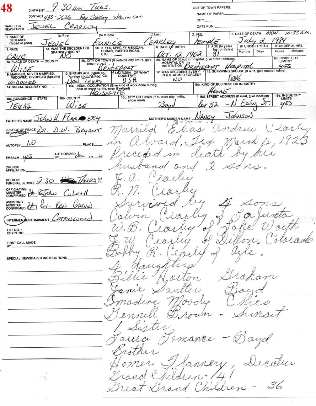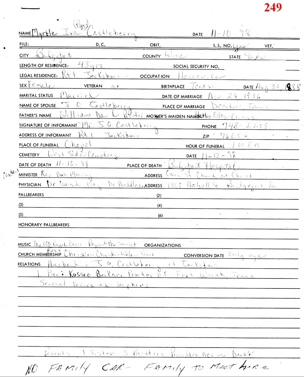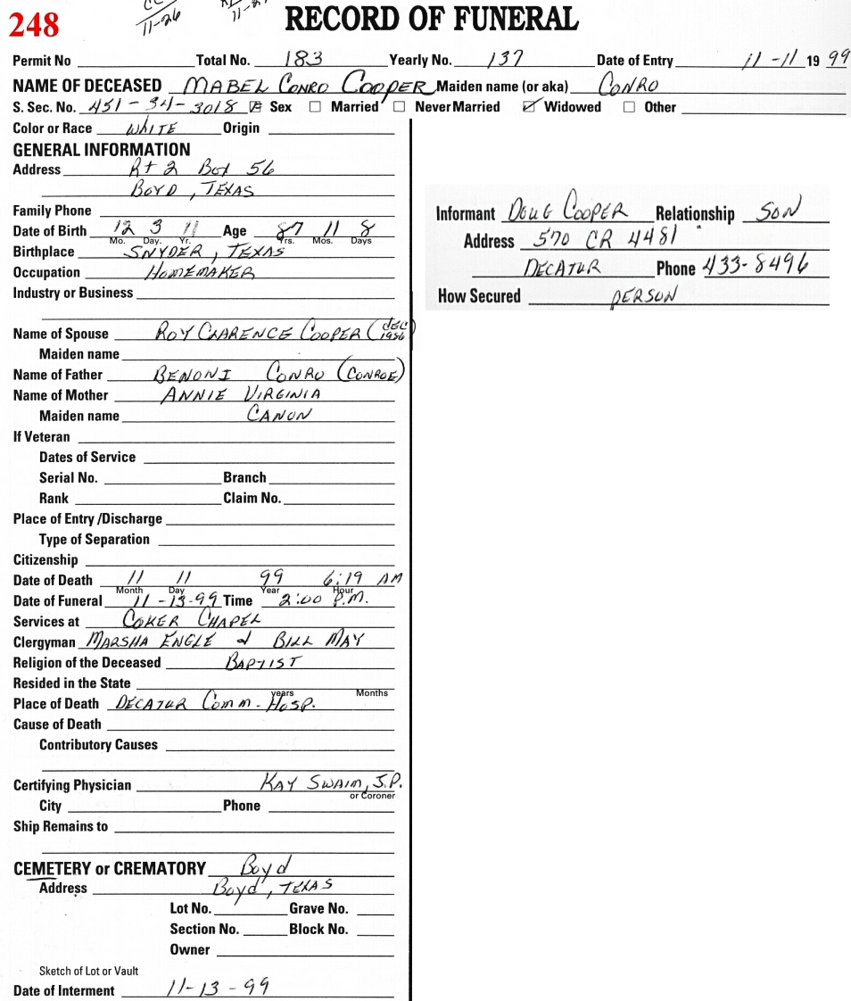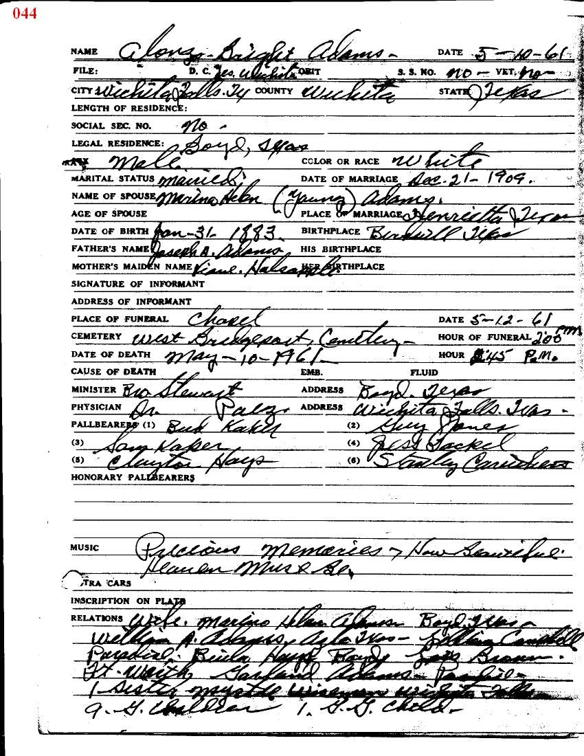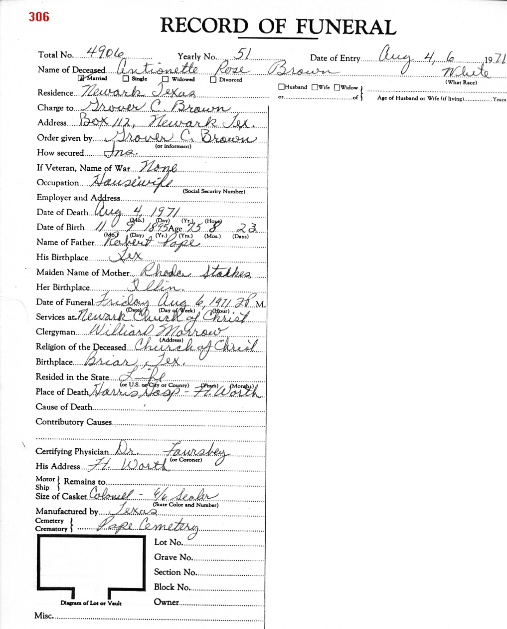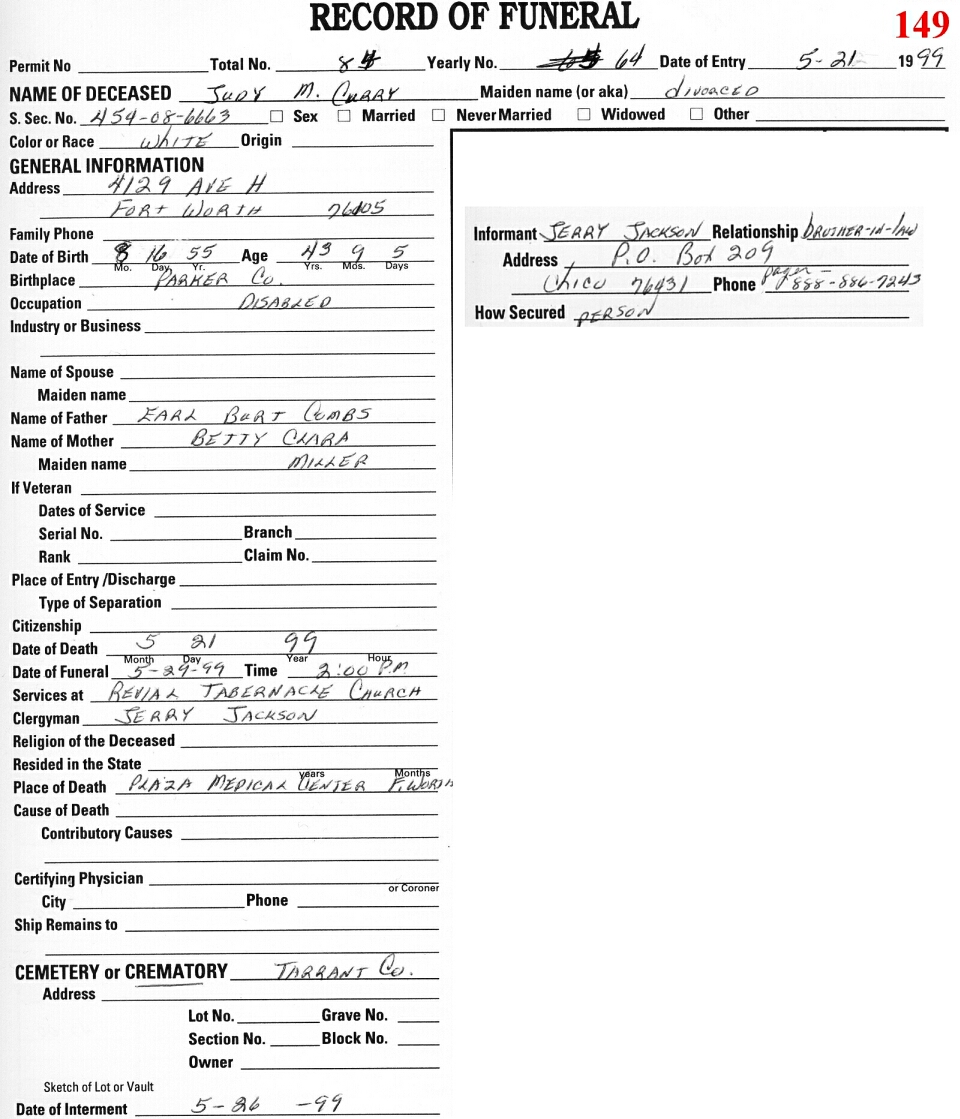 A boy from AR, Killed on railroad Christian Funeral Home C22/C22-254.jpg Aaron, James Thomas Christian Funeral Home C31/C31-110.jpg Abbott, Julia Gage Christian Funeral Home C31/C31-123.jpg Abbott, Lewis Elmer Coker Funeral Home C56/C56-091.jpg Abbott, T. Aleck Christian Funeral Home C35/C35-273.jpg Abbs, James Russell Christian Funeral Home C01/C01-110.jpg Abel, Anto A., Boyd Funeral Home B88/B88-135.jpg Abel, Arlyce Astor, Boyd Funeral File Sheet BF81/BF81-141.jpg Abel, Evelyn Myra Muse, Boyd Funeral File Sheet BF95/BF95-001.jpg Abel, Helen Elizabeth Miller, Boyd Funeral File Sheet BF91/BF91-006.jpg Abel, Helen Miller, Boyd Funeral Home B88/B88-125.jpg Abel, Nancy Jean Prince Coker Funeral Home C64/C64-076.jpg Abel, Walter V. Christian Funeral Home C22/C22-162.jpg Abernathy , Mary Ruth Cook Christian Funeral Home C86/C86-137.jpg Abernathy, Baby of Bill & Edna Earl, Hawkins Funeral Home H63/H63-110.jpg Abernathy, Ella Dora Jackson Christian Funeral Home C39/C39-261.jpg Abernathy, L.D., Mr. Christian Funeral Home C22/C22-269.jpg Abernathy, William Glenn, Hawkins Funeral File Sheet HF87/HF87-107.jpg Abernathy, William Glenn, Hawkins Funeral Home H84/H84-282.jpg Able, Barbara Elizabeth "Betty" Morris Coker Funeral Home C64/C64-215.jpg Able, Carrol Floyd "Crick", Hawkins Funeral File Sheet HF00/HF00-001.jpg Able, Forest Lee Christian Funeral Home C50/C50-017.jpg Able, Thomas Franklin Coker Funeral Home C56/C56-148.jpg Able, William Morgan Coker Funeral Home C56/C56-264a.jpg Able, William Morgan Coker Funeral Home C56/C56-264.jpg Absher, Donald Marion Christian Funeral Home C01/C01-182.jpg Absher, Opal Lee Kaker Hunter, Hawkins Funeral File Sheet HF01/HF01-001.jpg Absher, Ulyses Sherman Christian Funeral Home C31/C31-201.jpg Absher, William P. "Bill", Hawkins Funeral File Sheet HF93/HF93-001.jpg Absher, William P., Hawkins Funeral Home H93/H93-088.jpg Acker, Mary Elizabeth Christian Funeral Home C15/C15-102.jpg Acker, William H., Dr. Christian Funeral Home C22/C22-084.jpg Acola, Marian Elizabeth Woody Christian Funeral Home C98/C98-299.jpg Acola, Sam Christian Funeral Home C80/C80-104.jpg Acola, Sam, Hawkins/Christian Funeral Home HCD80/HCD80-003.jpg Action, Bonnie Lynn Bowser, Hawkins Funeral File Sheet HF73/HF73-0001.jpg Acton, Bonnie Lynn Bauser, Hawkins Funeral Home H80/H80-028.jpg Adair, Betty Darline Christian Funeral Home C45/C45-102.jpg Adair, Carl Sine Christian Funeral Home C45/C45-102.jpg Adair, Ester, Hawkins Funeral File Sheet HF73/HF73-0002.jpg Adama, Randy Dale, Jr., Hawkins Funeral Home H90/H90-110.jpg Adams, Acie Dee Christian Funeral Home C76/C76-098.jpg Adams, Alonzo Bright, Hawkins Funeral Home H61/H61-044.jpg Adams, Audrey, Boyd Funeral Home B88/B88-165.jpg Adams, Barry Carroll, Hawkins Funeral File Sheet HF85/HF85-043.jpg Adams, Beulah Etta Pitts, Hawkins Funeral File Sheet HF73/HF73-0004.jpg Adams, Billy Carroll, Hawkins Funeral Home H84/H84-189.jpg Adams, Carl Victor, Hawkins Funeral Home H68/H68-061.jpg Adams, Ceffie Daisy Craighead Christian Funeral Home C45/C45-155.jpg Adams, Charles Norris, Boyd Funeral File Sheet BF98/BF98-064.jpg Adams, Charlie Bruce Christian Funeral Home C59/C59-090.jpg Adams, Corinne P. Peterson Christian Funeral Home C01/C01-193.jpg Adams, Danny Charles, Boyd Funeral File Sheet BF95/BF95-135.jpg Adams, Dewey Avon, Hawkins Funeral File Sheet HF73/HF73-0003.jpg Adams, Edgar Ross, Hawkins Funeral Home H57/H57-039.jpg Adams, Elmer Justice, Hawkins Funeral Home H66/H66-210.jpg Adams, Eula C. Ingle, Hawkins Funeral Home H69/H69-131.jpg Adams, Garland Wayne, Hawkins Funeral File Sheet HF89/HF89-002.jpg Adams, Garland Wayne, Hawkins Funeral Home H88/H88-126.jpg Adams, George Martain Christian Funeral Home C49/C49-028.jpg Adams, Jerry Dean Christian Funeral Home C73/C73-206.jpg Adams, John Christian Funeral Home C35/C35-289.jpg Adams, John Henry, Hawkins Funeral File Sheet HF01/HF01-002.jpg Adams, John Louis, Hawkins Funeral Home H55/H55-147.jpg Adams, Josie Jones Churchhill Christian Funeral Home C91/C91-116.jpg Adams, Kenney Milton "Ragmop", Boyd Funeral File Sheet BF81/BF81-015.jpg Adams, Laura Sue Coker Funeral Home C27/C27-008.jpg Adams, Leatrice Isabell Moler, Hawkins Funeral File Sheet HF99/HF99-001.jpg Adams, Lera "Gerry" Burnette Woltz, Hawkins Funeral File Sheet HF98/HF98-001.jpg Adams, Leroy Franklin Christian Funeral Home C93/C93-076.jpg Adams, Lillian Josie Christian Funeral Home C73/C73-167.jpg Adams, Margaret Alma Murphy Christian Funeral Home C68/C68-465.jpg Adams, Margaret Iola Parish Christian Funeral Home C95/C95-146.jpg Adams, Marina Helen Young, Hawkins Funeral Home H69/H69-005.jpg Adams, Martha Ann Malone Christian Funeral Home C42/C42-076.jpg Adams, Mary Elizabeth "Betty"(Karen), Hawkins Funeral Home H53/H53-107.jpg Adams, Mary Ferguson Dill, Hawkins Funeral Home H60/H60-031.jpg Adams, Milton Elmore Christian Funeral Home C39/C39-106.jpg Adams, Myrtle Floyd Harris, Hawkins Funeral File Sheet HF01/HF01-003.jpg Adams, Newell Wayne "Bill" Dec 10, 1980 Mrs. Adams Pleasant Grove #1 CL80/CL80-38 Adams, Oma Nov 23, 1981 Bud Adams & Jessie Ragsdale Sweetwater CL80/CL80-107 Adams, Randy Dale, Jr., Hawkins Funeral File Sheet HF91/HF91-001.jpg Adams, Robert Esco, Hawkins Funeral File Sheet HF73/HF73-0005.jpg Adams, Robert Louis, Hawkins Funeral Home H57/H57-171.jpg Adams, Ronald Floyd Christian Funeral Home C89/C89-163.jpg Adams, Sarah F. Christian Funeral Home C45/C45-259.jpg Adams, W., Hawkins Funeral Home H23/H23-148.jpg Adams, William Rosco "Bud" Christian Funeral Home C88/C88-185.jpg Adams, William Walter, Hawkins Funeral Home H61/H61-145.jpg Addington, Jimmy Ray Christian Funeral Home C88/C88-260.jpg Adkins, Lonnie Roe Christian Funeral Home C93/C93-012.jpg Adkins, Paul William, Hawkins Funeral Home H33/H33-091.jpg Adkins, Peggy Mildred Thomas Christian Funeral Home C86/C86-283.jpg Admire, Clarence Holt, Hawkins Funeral Home H57/H57-114.jpg Admire, Willie Audrey King, Hawkins Funeral Home H55/H55-151.jpg Aerni, Lucile Flowers, Hawki