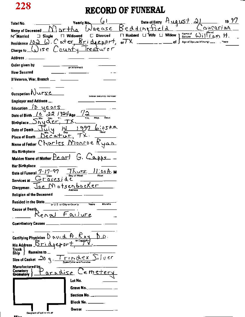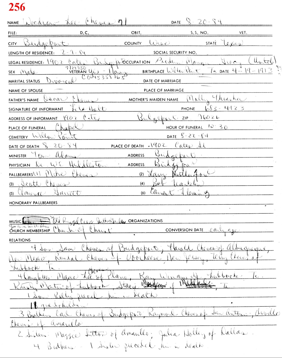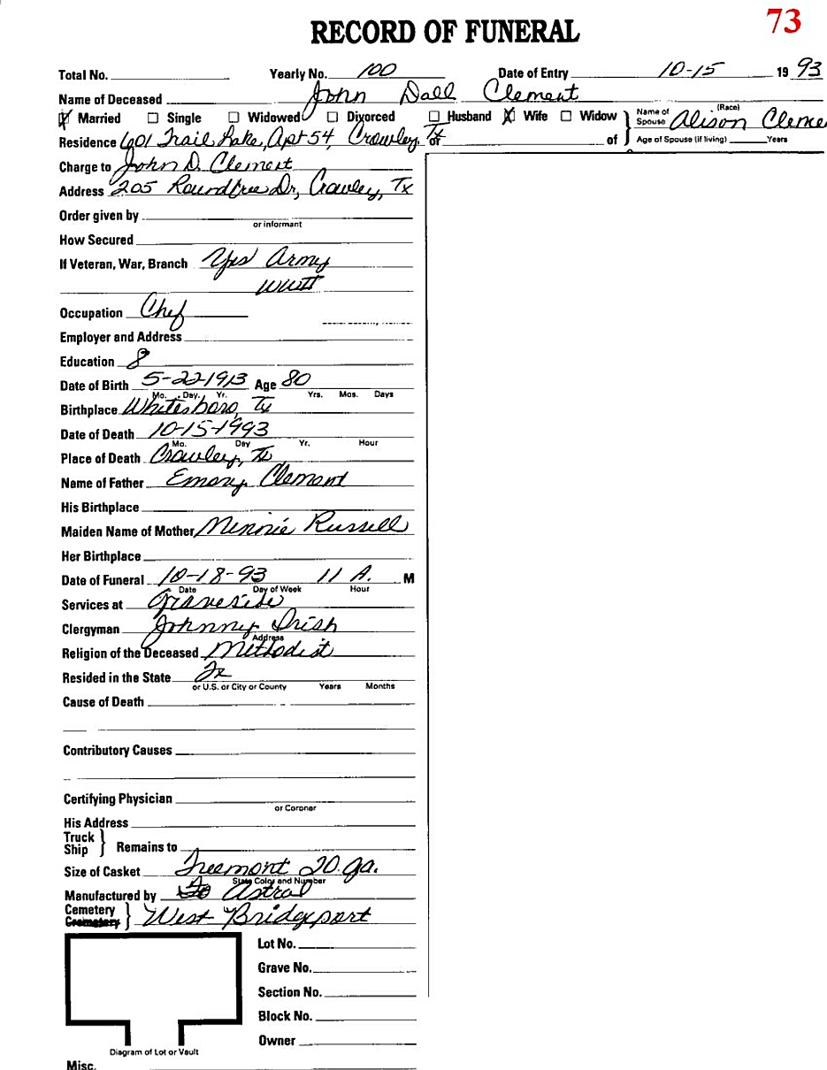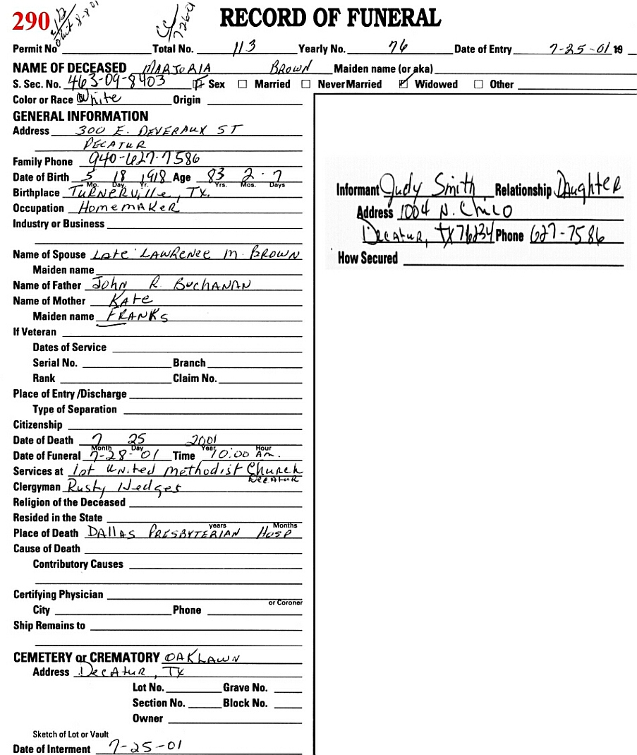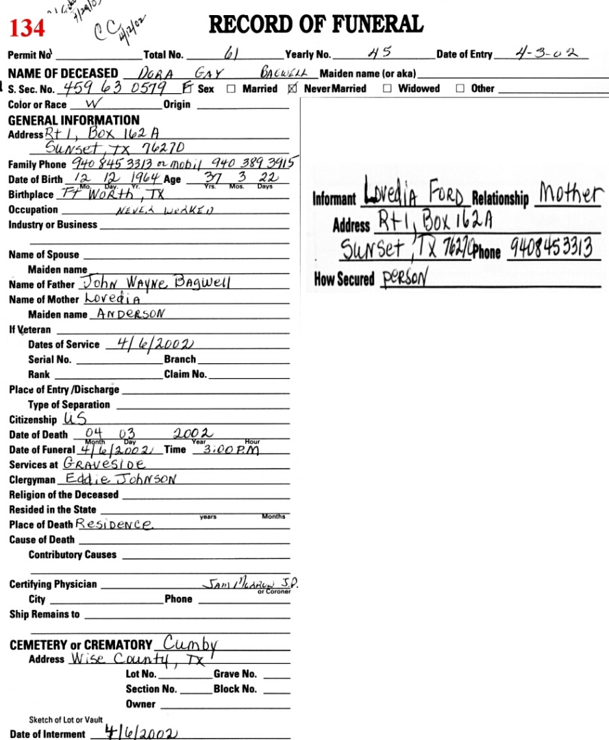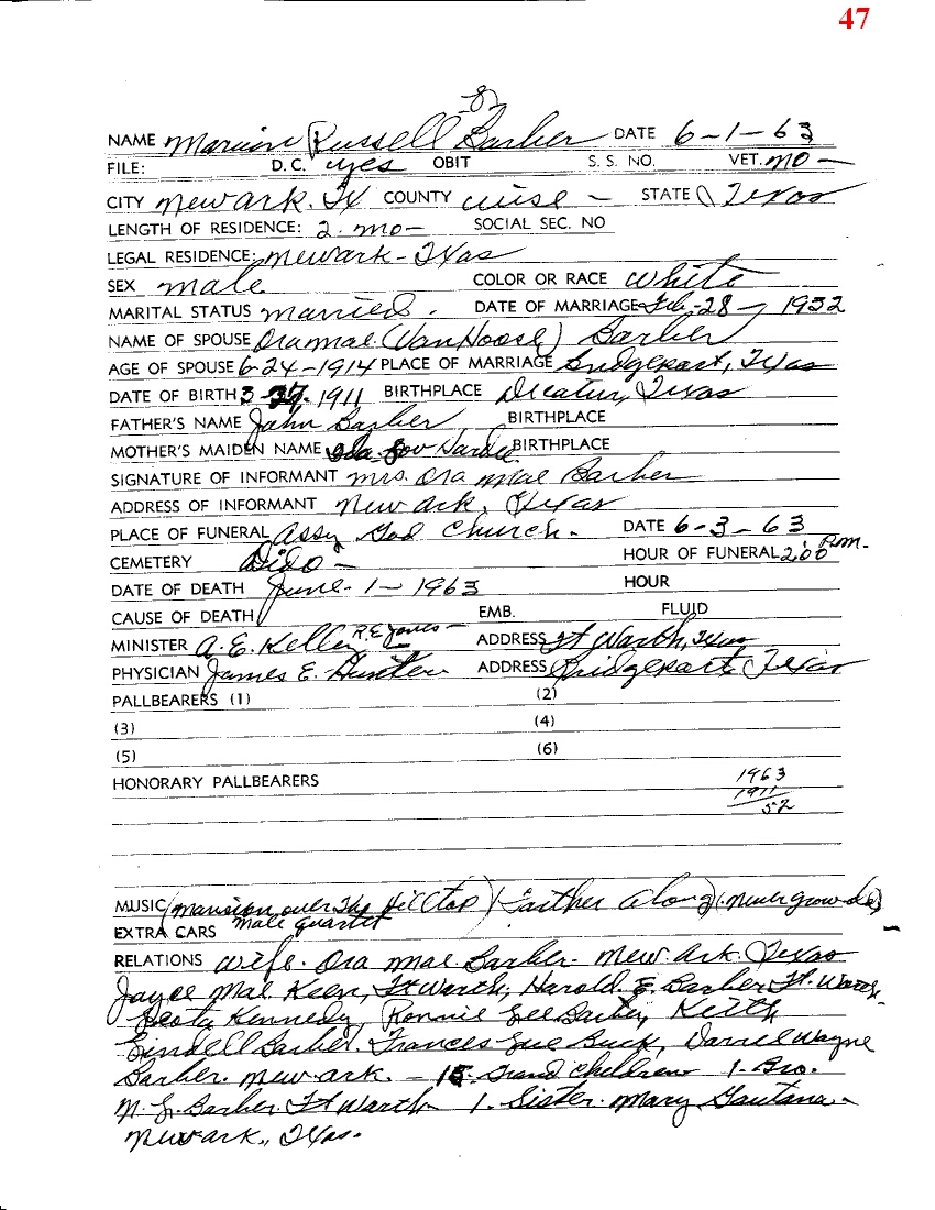 A boy from AR, Killed on railroad Christian Funeral Home C22/C22-254.jpg Aaron, James Thomas Christian Funeral Home C31/C31-110.jpg Abbott, Julia Gage Christian Funeral Home C31/C31-123.jpg Abbott, Lewis Elmer Coker Funeral Home C56/C56-091.jpg Abbott, T. Aleck Christian Funeral Home C35/C35-273.jpg Abbs, James Russell Christian Funeral Home C01/C01-110.jpg Abel, Anto A., Boyd Funeral Home B88/B88-135.jpg Abel, Arlyce Astor, Boyd Funeral File Sheet BF81/BF81-141.jpg Abel, Evelyn Myra Muse, Boyd Funeral File Sheet BF95/BF95-001.jpg Abel, Helen Elizabeth Miller, Boyd Funeral File Sheet BF91/BF91-006.jpg Abel, Helen Miller, Boyd Funeral Home B88/B88-125.jpg Abel, Nancy Jean Prince Coker Funeral Home C64/C64-076.jpg Abel, Walter V. Christian Funeral Home C22/C22-162.jpg Abernathy , Mary Ruth Cook Christian Funeral Home C86/C86-137.jpg Abernathy, Baby of Bill & Edna Earl, Hawkins Funeral Home H63/H63-110.jpg Abernathy, Ella Dora Jackson Christian Funeral Home C39/C39-261.jpg Abernathy, L.D., Mr. Christian Funeral Home C22/C22-269.jpg Abernathy, William Glenn, Hawkins Funeral File Sheet HF87/HF87-107.jpg Abernathy, William Glenn, Hawkins Funeral Home H84/H84-282.jpg Able, Barbara Elizabeth "Betty" Morris Coker Funeral Home C64/C64-215.jpg Able, Carrol Floyd "Crick", Hawkins Funeral File Sheet HF00/HF00-001.jpg Able, Forest Lee Christian Funeral Home C50/C50-017.jpg Able, Thomas Franklin Coker Funeral Home C56/C56-148.jpg Able, William Morgan Coker Funeral Home C56/C56-264a.jpg Able, William Morgan Coker Funeral Home C56/C56-264.jpg Absher, Donald Marion Christian Funeral Home C01/C01-182.jpg Absher, Opal Lee Kaker Hunter, Hawkins Funeral File Sheet HF01/HF01-001.jpg Absher, Ulyses Sherman Christian Funeral Home C31/C31-201.jpg Absher, William P. "Bill", Hawkins Funeral File Sheet HF93/HF93-001.jpg Absher, William P., Hawkins Funeral Home H93/H93-088.jpg Acker, Mary Elizabeth Christian Funeral Home C15/C15-102.jpg Acker, William H., Dr. Christian Funeral Home C22/C22-084.jpg Acola, Marian Elizabeth Woody Christian Funeral Home C98/C98-299.jpg Acola, Sam Christian Funeral Home C80/C80-104.jpg Acola, Sam, Hawkins/Christian Funeral Home HCD80/HCD80-003.jpg Action, Bonnie Lynn Bowser, Hawkins Funeral File Sheet HF73/HF73-0001.jpg Acton, Bonnie Lynn Bauser, Hawkins Funeral Home H80/H80-028.jpg Adair, Betty Darline Christian Funeral Home C45/C45-102.jpg Adair, Carl Sine Christian Funeral Home C45/C45-102.jpg Adair, Ester, Hawkins Funeral File Sheet HF73/HF73-0002.jpg Adama, Randy Dale, Jr., Hawkins Funeral Home H90/H90-110.jpg Adams, Acie Dee Christian Funeral Home C76/C76-098.jpg Adams, Alonzo Bright, Hawkins Funeral Home H61/H61-044.jpg Adams, Audrey, Boyd Funeral Home B88/B88-165.jpg Adams, Barry Carroll, Hawkins Funeral File Sheet HF85/HF85-043.jpg Adams, Beulah Etta Pitts, Hawkins Funeral File Sheet HF73/HF73-0004.jpg Adams, Billy Carroll, Hawkins Funeral Home H84/H84-189.jpg Adams, Carl Victor, Hawkins Funeral Home H68/H68-061.jpg Adams, Ceffie Daisy Craighead Christian Funeral Home C45/C45-155.jpg Adams, Charles Norris, Boyd Funeral File Sheet BF98/BF98-064.jpg Adams, Charlie Bruce Christian Funeral Home C59/C59-090.jpg Adams, Corinne P. Peterson Christian Funeral Home C01/C01-193.jpg Adams, Danny Charles, Boyd Funeral File Sheet BF95/BF95-135.jpg Adams, Dewey Avon, Hawkins Funeral File Sheet HF73/HF73-0003.jpg Adams, Edgar Ross, Hawkins Funeral Home H57/H57-039.jpg Adams, Elmer Justice, Hawkins Funeral Home H66/H66-210.jpg Adams, Eula C. Ingle, Hawkins Funeral Home H69/H69-131.jpg Adams, Garland Wayne, Hawkins Funeral File Sheet HF89/HF89-002.jpg Adams, Garland Wayne, Hawkins Funeral Home H88/H88-126.jpg Adams, George Martain Christian Funeral Home C49/C49-028.jpg Adams, Jerry Dean Christian Funeral Home C73/C73-206.jpg Adams, John Christian Funeral Home C35/C35-289.jpg Adams, John Henry, Hawkins Funeral File Sheet HF01/HF01-002.jpg Adams, John Louis, Hawkins Funeral Home H55/H55-147.jpg Adams, Josie Jones Churchhill Christian Funeral Home C91/C91-116.jpg Adams, Kenney Milton "Ragmop", Boyd Funeral File Sheet BF81/BF81-015.jpg Adams, Laura Sue Coker Funeral Home C27/C27-008.jpg Adams, Leatrice Isabell Moler, Hawkins Funeral File Sheet HF99/HF99-001.jpg Adams, Lera "Gerry" Burnette Woltz, Hawkins Funeral File Sheet HF98/HF98-001.jpg Adams, Leroy Franklin Christian Funeral Home C93/C93-076.jpg Adams, Lillian Josie Christian Funeral Home C73/C73-167.jpg Adams, Margaret Alma Murphy Christian Funeral Home C68/C68-465.jpg Adams, Margaret Iola Parish Christian Funeral Home C95/C95-146.jpg Adams, Marina Helen Young, Hawkins Funeral Home H69/H69-005.jpg Adams, Martha Ann Malone Christian Funeral Home C42/C42-076.jpg Adams, Mary Elizabeth "Betty"(Karen), Hawkins Funeral Home H53/H53-107.jpg Adams, Mary Ferguson Dill, Hawkins Funeral Home H60/H60-031.jpg Adams, Milton Elmore Christian Funeral Home C39/C39-106.jpg Adams, Myrtle Floyd Harris, Hawkins Funeral File Sheet HF01/HF01-003.jpg Adams, Newell Wayne "Bill" Dec 10, 1980 Mrs. Adams Pleasant Grove #1 CL80/CL80-38 Adams, Oma Nov 23, 1981 Bud Adams & Jessie Ragsdale Sweetwater CL80/CL80-107 Adams, Randy Dale, Jr., Hawkins Funeral File Sheet HF91/HF91-001.jpg Adams, Robert Esco, Hawkins Funeral File Sheet HF73/HF73-0005.jpg Adams, Robert Louis, Hawkins Funeral Home H57/H57-171.jpg Adams, Ronald Floyd Christian Funeral Home C89/C89-163.jpg Adams, Sarah F. Christian Funeral Home C45/C45-259.jpg Adams, W., Hawkins Funeral Home H23/H23-148.jpg Adams, William Rosco "Bud" Christian Funeral Home C88/C88-185.jpg Adams, William Walter, Hawkins Funeral Home H61/H61-145.jpg Addington, Jimmy Ray Christian Funeral Home C88/C88-260.jpg Adkins, Lonnie Roe Christian Funeral Home C93/C93-012.jpg Adkins, Paul William, Hawkins Funeral Home H33/H33-091.jpg Adkins, Peggy Mildred Thomas Christian Funeral Home C86/C86-283.jpg Admire, Clarence Holt, Hawkins Funeral Home H57/H57-114.jpg Admire, Willie Audrey King, Hawkins Funeral Home H55/H55-151.jpg Aerni, Lucile Flowers, Hawki