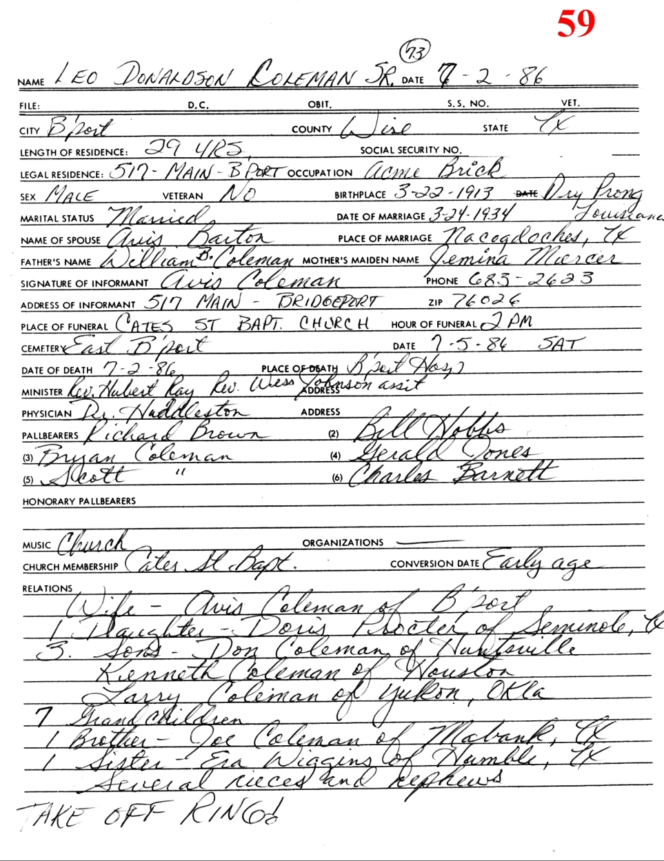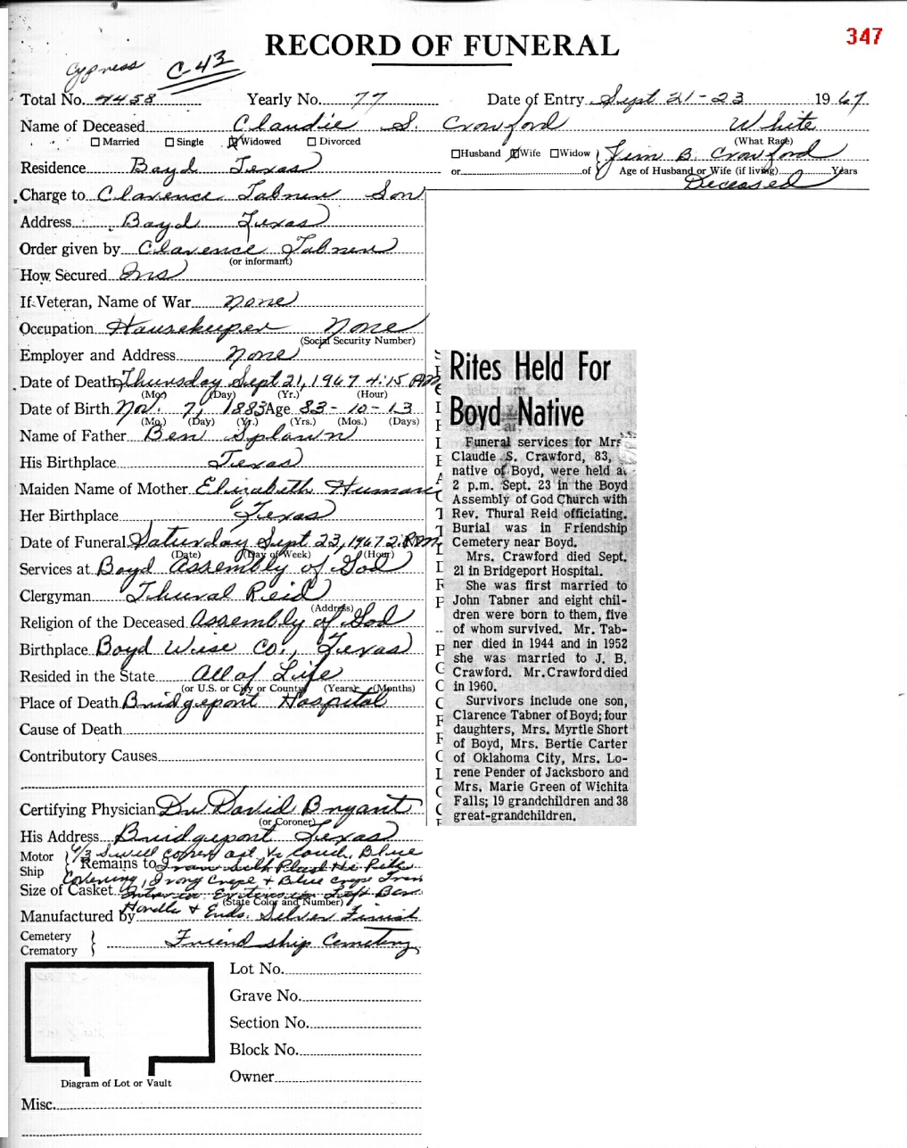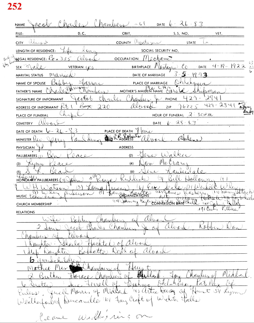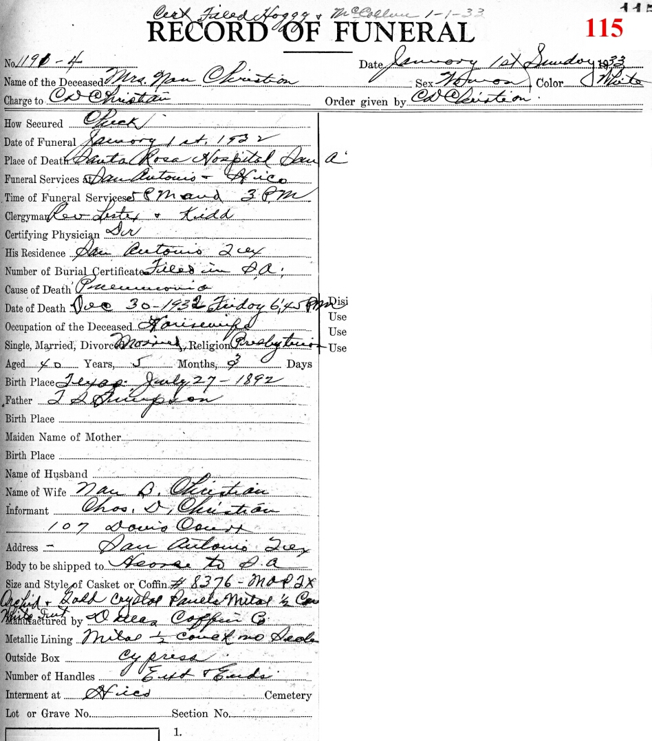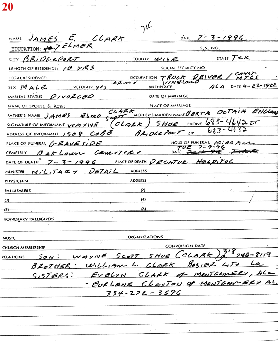 A boy from AR, Killed on railroad Christian Funeral Home C22/C22-254.jpg Aaron, James Thomas Christian Funeral Home C31/C31-110.jpg Abbott, Julia Gage Christian Funeral Home C31/C31-123.jpg Abbott, Lewis Elmer Coker Funeral Home C56/C56-091.jpg Abbott, T. Aleck Christian Funeral Home C35/C35-273.jpg Abbs, James Russell Christian Funeral Home C01/C01-110.jpg Abel, Anto A., Boyd Funeral Home B88/B88-135.jpg Abel, Arlyce Astor, Boyd Funeral File Sheet BF81/BF81-141.jpg Abel, Evelyn Myra Muse, Boyd Funeral File Sheet BF95/BF95-001.jpg Abel, Helen Elizabeth Miller, Boyd Funeral File Sheet BF91/BF91-006.jpg Abel, Helen Miller, Boyd Funeral Home B88/B88-125.jpg Abel, Nancy Jean Prince Coker Funeral Home C64/C64-076.jpg Abel, Walter V. Christian Funeral Home C22/C22-162.jpg Abernathy , Mary Ruth Cook Christian Funeral Home C86/C86-137.jpg Abernathy, Baby of Bill & Edna Earl, Hawkins Funeral Home H63/H63-110.jpg Abernathy, Ella Dora Jackson Christian Funeral Home C39/C39-261.jpg Abernathy, L.D., Mr. Christian Funeral Home C22/C22-269.jpg Abernathy, William Glenn, Hawkins Funeral File Sheet HF87/HF87-107.jpg Abernathy, William Glenn, Hawkins Funeral Home H84/H84-282.jpg Able, Barbara Elizabeth "Betty" Morris Coker Funeral Home C64/C64-215.jpg Able, Carrol Floyd "Crick", Hawkins Funeral File Sheet HF00/HF00-001.jpg Able, Forest Lee Christian Funeral Home C50/C50-017.jpg Able, Thomas Franklin Coker Funeral Home C56/C56-148.jpg Able, William Morgan Coker Funeral Home C56/C56-264a.jpg Able, William Morgan Coker Funeral Home C56/C56-264.jpg Absher, Donald Marion Christian Funeral Home C01/C01-182.jpg Absher, Opal Lee Kaker Hunter, Hawkins Funeral File Sheet HF01/HF01-001.jpg Absher, Ulyses Sherman Christian Funeral Home C31/C31-201.jpg Absher, William P. "Bill", Hawkins Funeral File Sheet HF93/HF93-001.jpg Absher, William P., Hawkins Funeral Home H93/H93-088.jpg Acker, Mary Elizabeth Christian Funeral Home C15/C15-102.jpg Acker, William H., Dr. Christian Funeral Home C22/C22-084.jpg Acola, Marian Elizabeth Woody Christian Funeral Home C98/C98-299.jpg Acola, Sam Christian Funeral Home C80/C80-104.jpg Acola, Sam, Hawkins/Christian Funeral Home HCD80/HCD80-003.jpg Action, Bonnie Lynn Bowser, Hawkins Funeral File Sheet HF73/HF73-0001.jpg Acton, Bonnie Lynn Bauser, Hawkins Funeral Home H80/H80-028.jpg Adair, Betty Darline Christian Funeral Home C45/C45-102.jpg Adair, Carl Sine Christian Funeral Home C45/C45-102.jpg Adair, Ester, Hawkins Funeral File Sheet HF73/HF73-0002.jpg Adama, Randy Dale, Jr., Hawkins Funeral Home H90/H90-110.jpg Adams, Acie Dee Christian Funeral Home C76/C76-098.jpg Adams, Alonzo Bright, Hawkins Funeral Home H61/H61-044.jpg Adams, Audrey, Boyd Funeral Home B88/B88-165.jpg Adams, Barry Carroll, Hawkins Funeral File Sheet HF85/HF85-043.jpg Adams, Beulah Etta Pitts, Hawkins Funeral File Sheet HF73/HF73-0004.jpg Adams, Billy Carroll, Hawkins Funeral Home H84/H84-189.jpg Adams, Carl Victor, Hawkins Funeral Home H68/H68-061.jpg Adams, Ceffie Daisy Craighead Christian Funeral Home C45/C45-155.jpg Adams, Charles Norris, Boyd Funeral File Sheet BF98/BF98-064.jpg Adams, Charlie Bruce Christian Funeral Home C59/C59-090.jpg Adams, Corinne P. Peterson Christian Funeral Home C01/C01-193.jpg Adams, Danny Charles, Boyd Funeral File Sheet BF95/BF95-135.jpg Adams, Dewey Avon, Hawkins Funeral File Sheet HF73/HF73-0003.jpg Adams, Edgar Ross, Hawkins Funeral Home H57/H57-039.jpg Adams, Elmer Justice, Hawkins Funeral Home H66/H66-210.jpg Adams, Eula C. Ingle, Hawkins Funeral Home H69/H69-131.jpg Adams, Garland Wayne, Hawkins Funeral File Sheet HF89/HF89-002.jpg Adams, Garland Wayne, Hawkins Funeral Home H88/H88-126.jpg Adams, George Martain Christian Funeral Home C49/C49-028.jpg Adams, Jerry Dean Christian Funeral Home C73/C73-206.jpg Adams, John Christian Funeral Home C35/C35-289.jpg Adams, John Henry, Hawkins Funeral File Sheet HF01/HF01-002.jpg Adams, John Louis, Hawkins Funeral Home H55/H55-147.jpg Adams, Josie Jones Churchhill Christian Funeral Home C91/C91-116.jpg Adams, Kenney Milton "Ragmop", Boyd Funeral File Sheet BF81/BF81-015.jpg Adams, Laura Sue Coker Funeral Home C27/C27-008.jpg Adams, Leatrice Isabell Moler, Hawkins Funeral File Sheet HF99/HF99-001.jpg Adams, Lera "Gerry" Burnette Woltz, Hawkins Funeral File Sheet HF98/HF98-001.jpg Adams, Leroy Franklin Christian Funeral Home C93/C93-076.jpg Adams, Lillian Josie Christian Funeral Home C73/C73-167.jpg Adams, Margaret Alma Murphy Christian Funeral Home C68/C68-465.jpg Adams, Margaret Iola Parish Christian Funeral Home C95/C95-146.jpg Adams, Marina Helen Young, Hawkins Funeral Home H69/H69-005.jpg Adams, Martha Ann Malone Christian Funeral Home C42/C42-076.jpg Adams, Mary Elizabeth "Betty"(Karen), Hawkins Funeral Home H53/H53-107.jpg Adams, Mary Ferguson Dill, Hawkins Funeral Home H60/H60-031.jpg Adams, Milton Elmore Christian Funeral Home C39/C39-106.jpg Adams, Myrtle Floyd Harris, Hawkins Funeral File Sheet HF01/HF01-003.jpg Adams, Newell Wayne "Bill" Dec 10, 1980 Mrs. Adams Pleasant Grove #1 CL80/CL80-38 Adams, Oma Nov 23, 1981 Bud Adams & Jessie Ragsdale Sweetwater CL80/CL80-107 Adams, Randy Dale, Jr., Hawkins Funeral File Sheet HF91/HF91-001.jpg Adams, Robert Esco, Hawkins Funeral File Sheet HF73/HF73-0005.jpg Adams, Robert Louis, Hawkins Funeral Home H57/H57-171.jpg Adams, Ronald Floyd Christian Funeral Home C89/C89-163.jpg Adams, Sarah F. Christian Funeral Home C45/C45-259.jpg Adams, W., Hawkins Funeral Home H23/H23-148.jpg Adams, William Rosco "Bud" Christian Funeral Home C88/C88-185.jpg Adams, William Walter, Hawkins Funeral Home H61/H61-145.jpg Addington, Jimmy Ray Christian Funeral Home C88/C88-260.jpg Adkins, Lonnie Roe Christian Funeral Home C93/C93-012.jpg Adkins, Paul William, Hawkins Funeral Home H33/H33-091.jpg Adkins, Peggy Mildred Thomas Christian Funeral Home C86/C86-283.jpg Admire, Clarence Holt, Hawkins Funeral Home H57/H57-114.jpg Admire, Willie Audrey King, Hawkins Funeral Home H55/H55-151.jpg Aerni, Lucile Flowers, Hawki