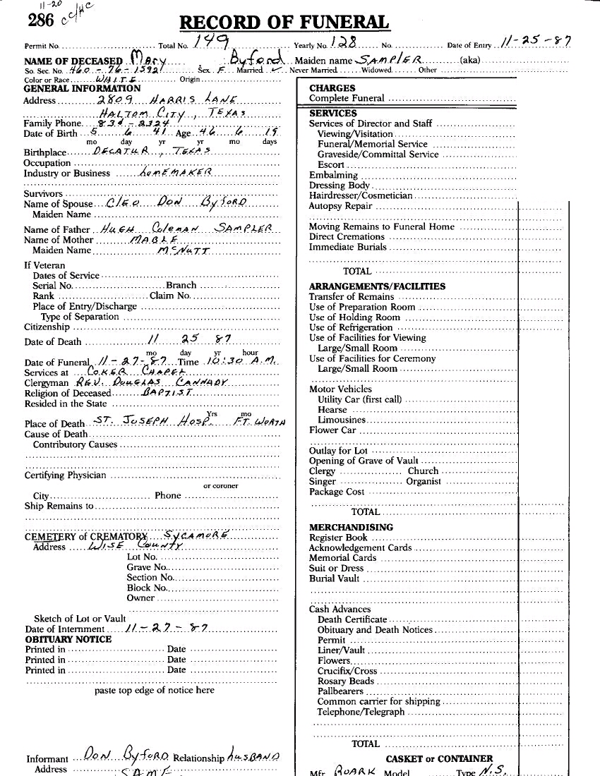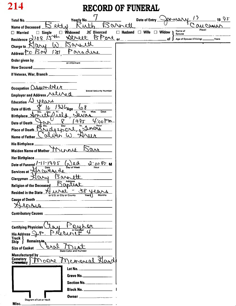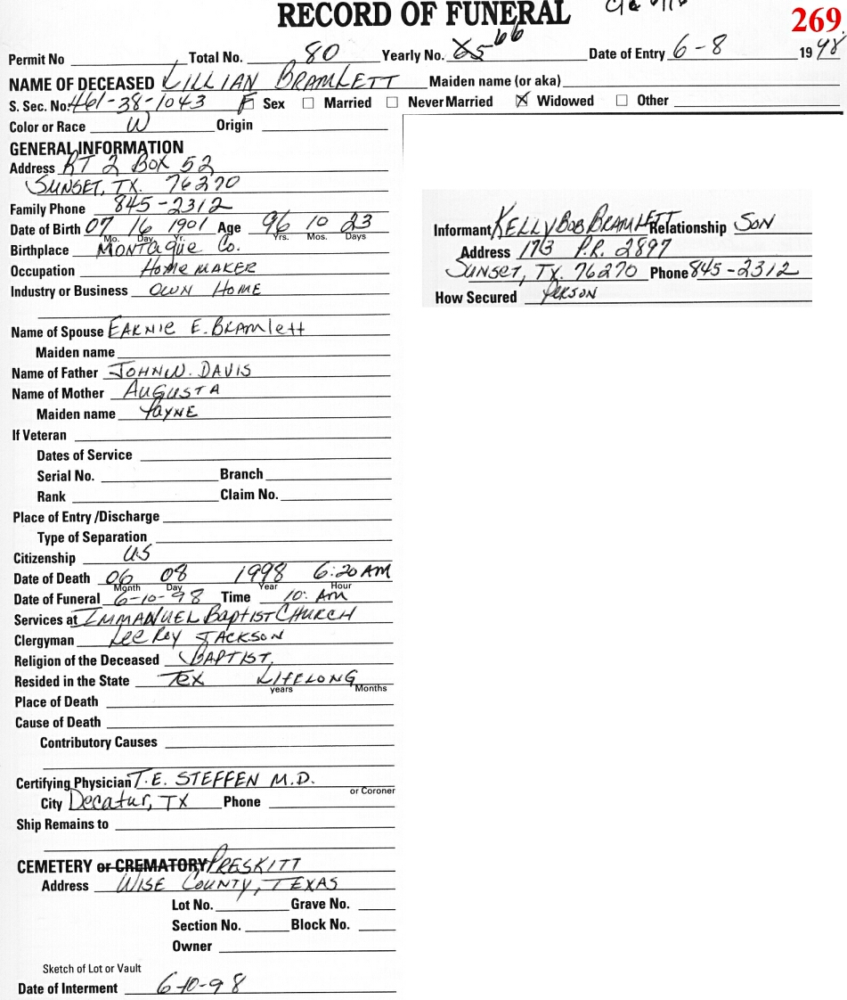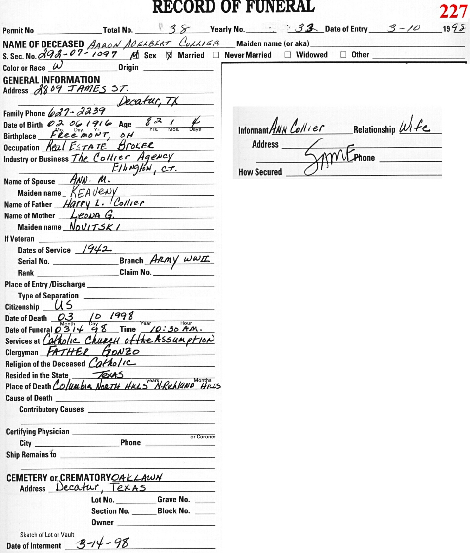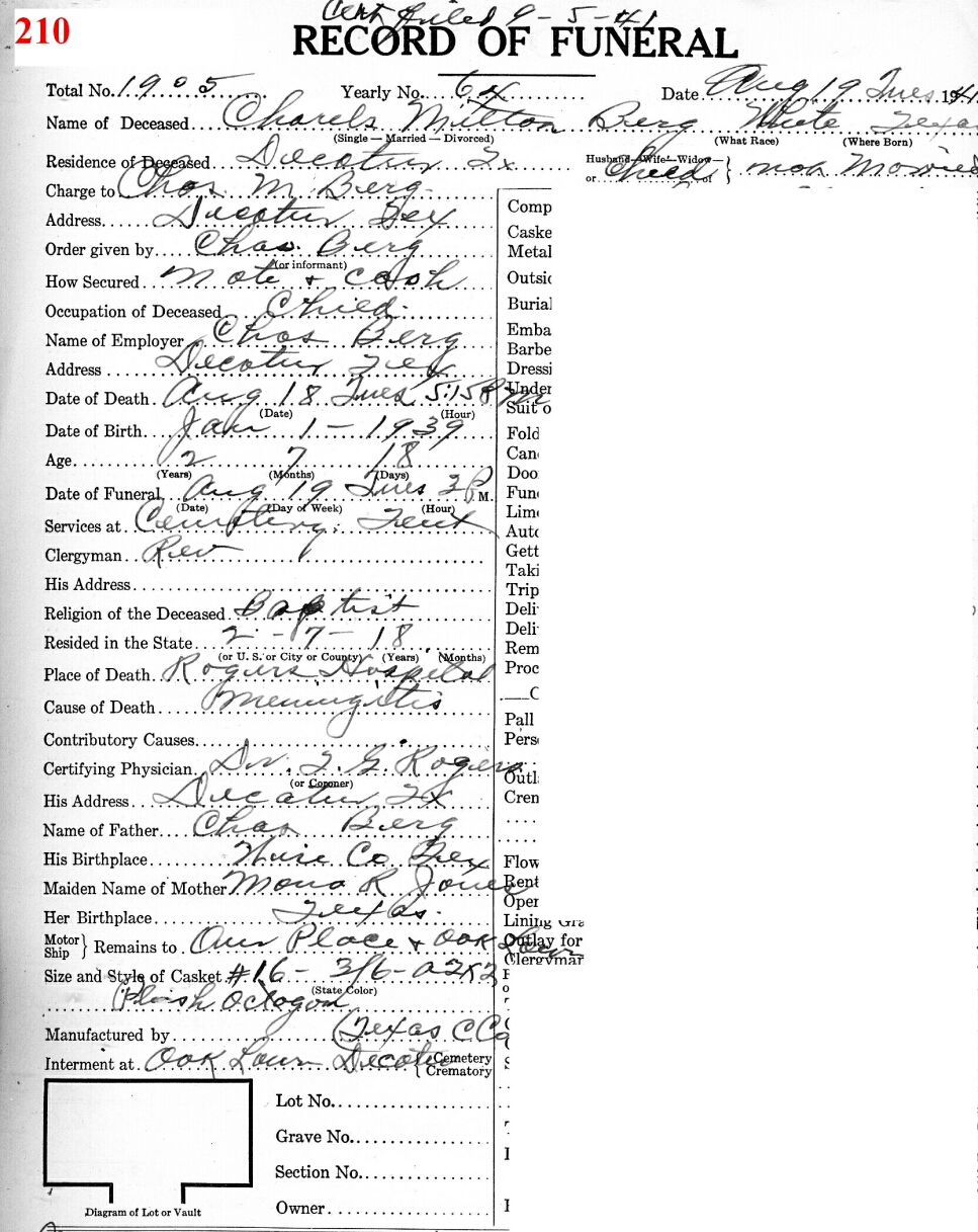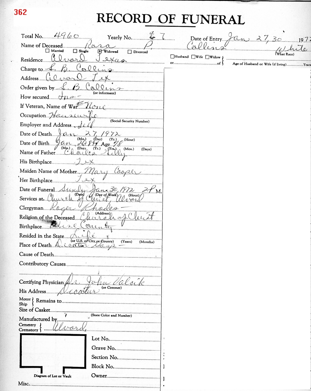 Last Name, First Name Funeral Home Book and Page are Link to image