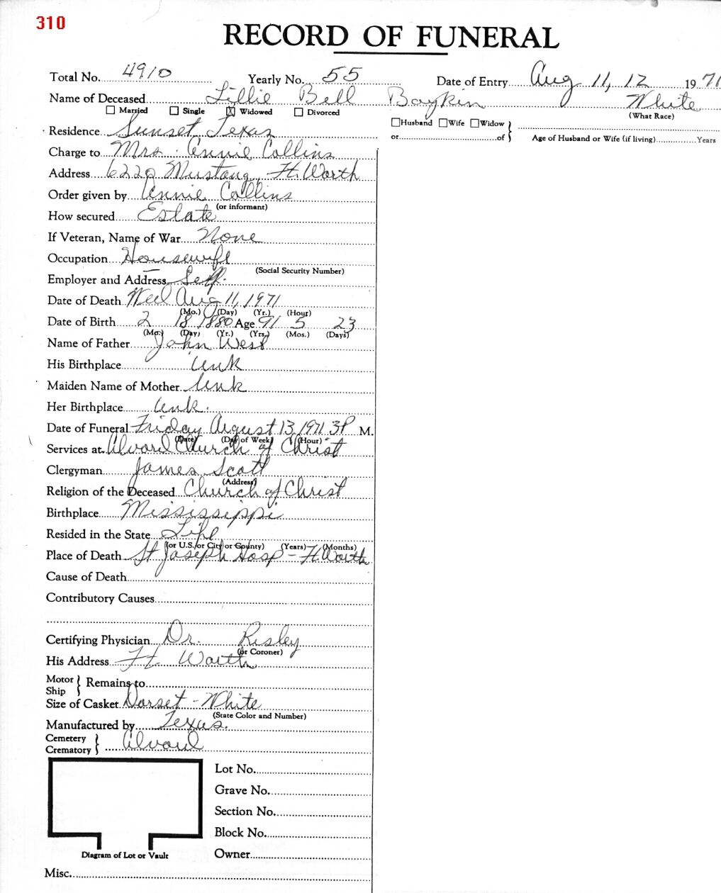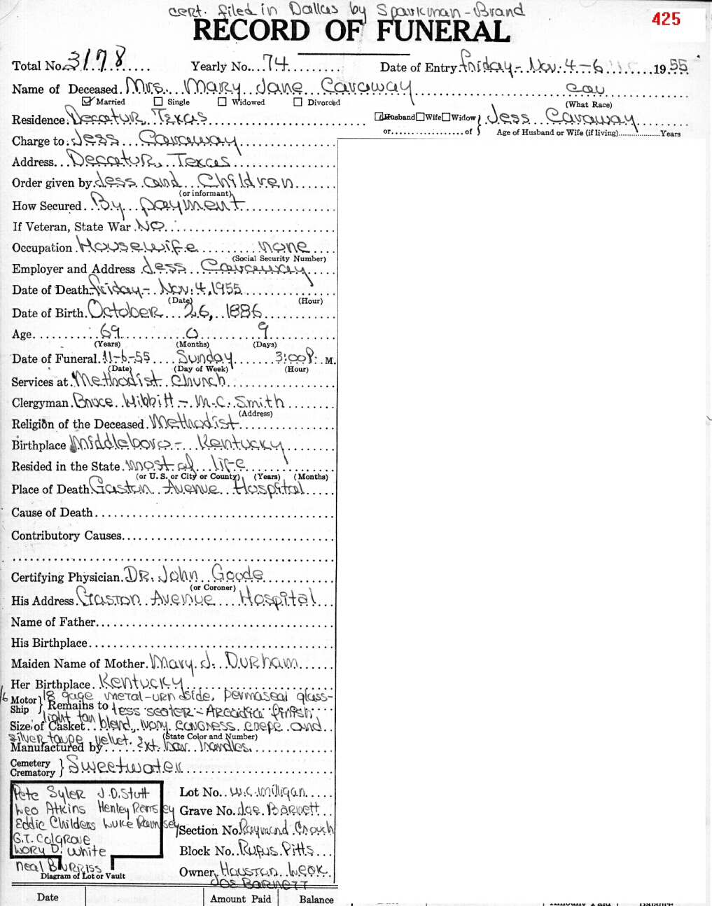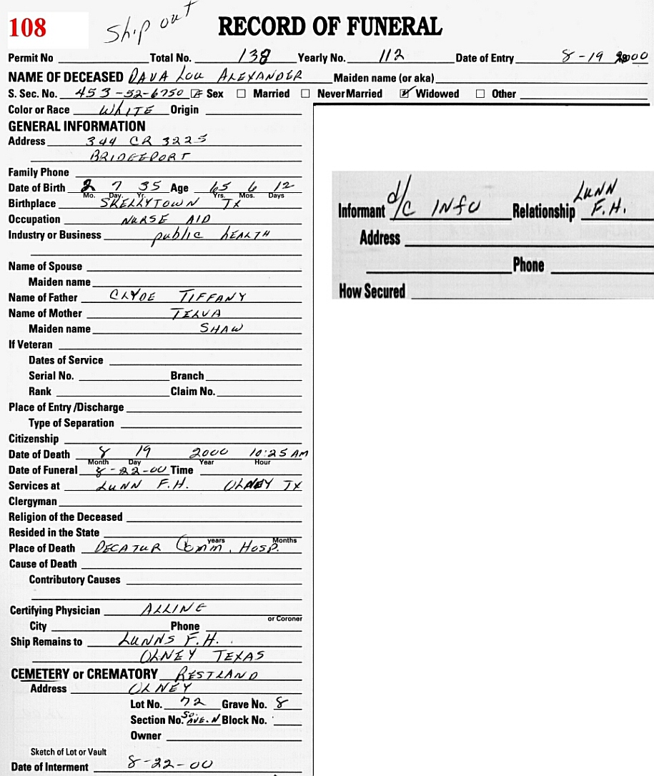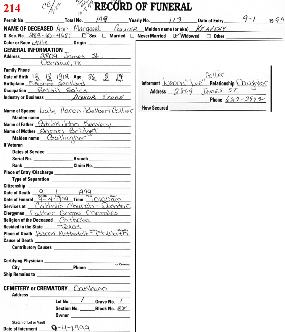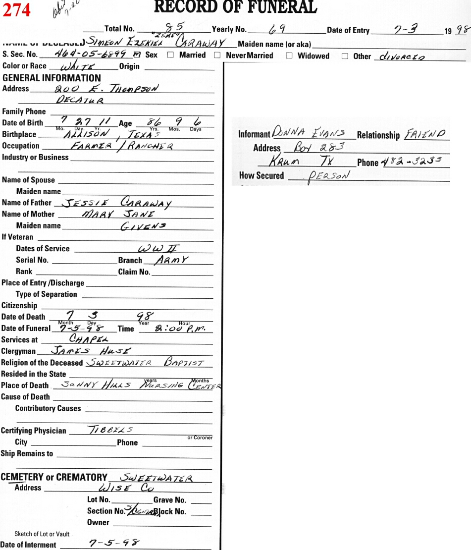 Last Name, First Name Funeral Home Book and Page are Link to image