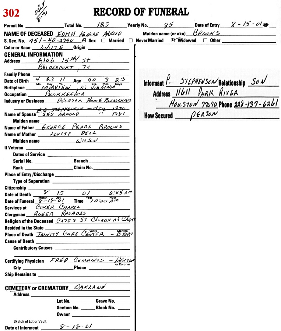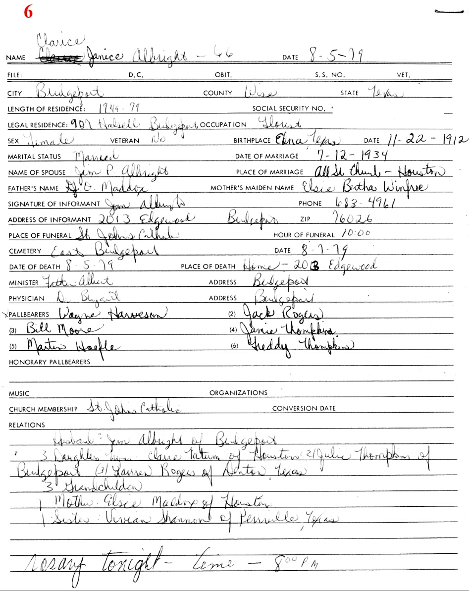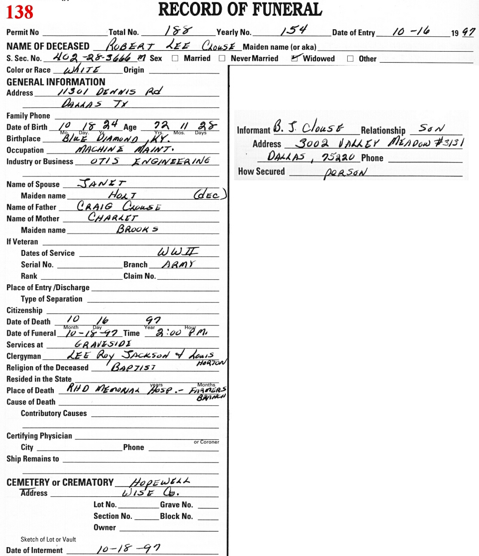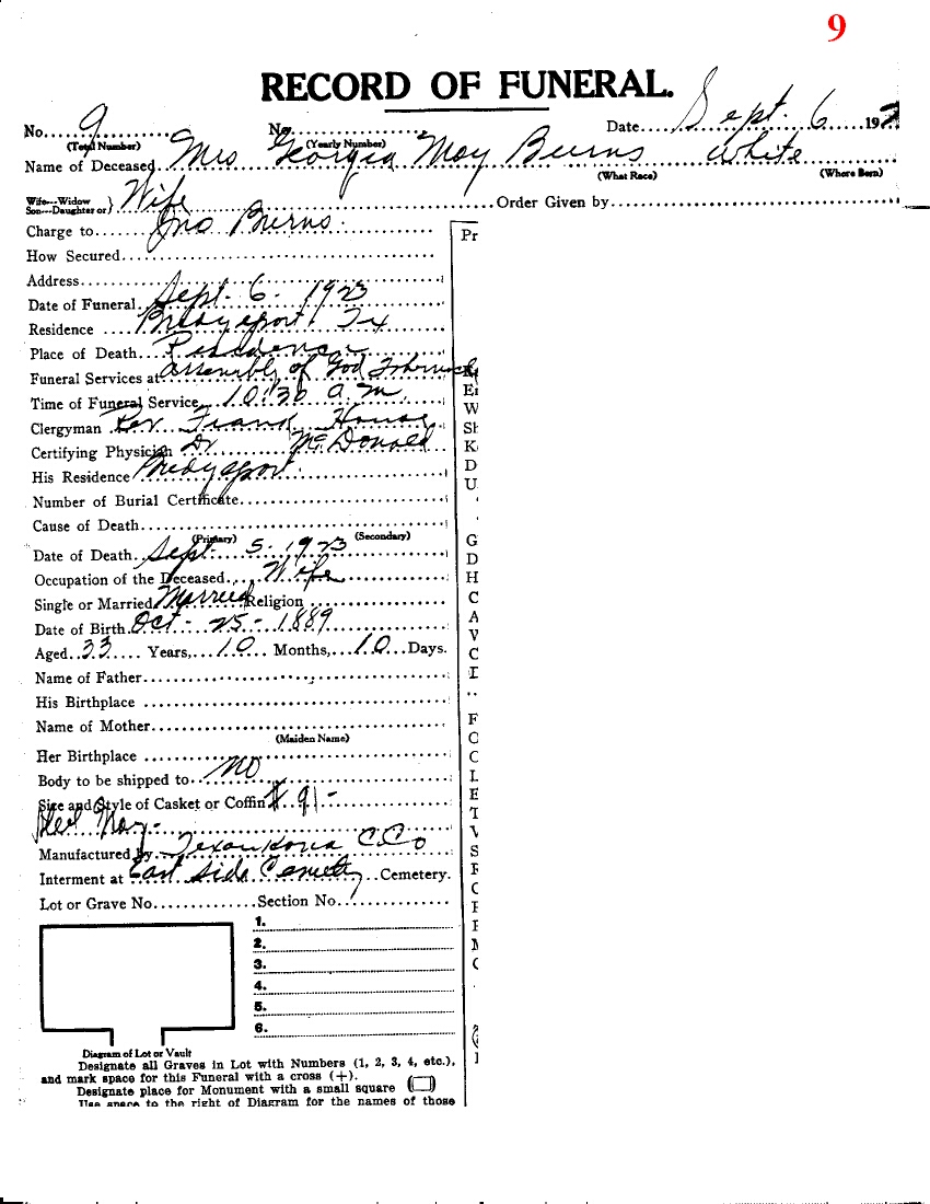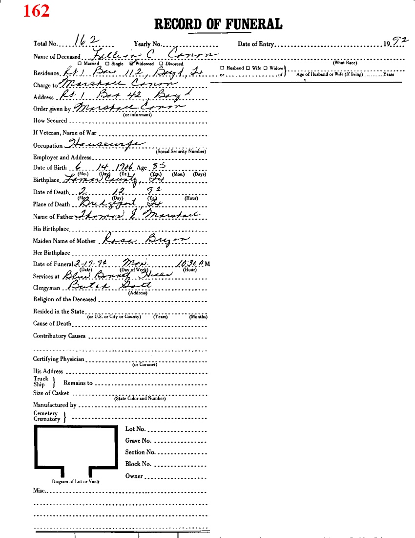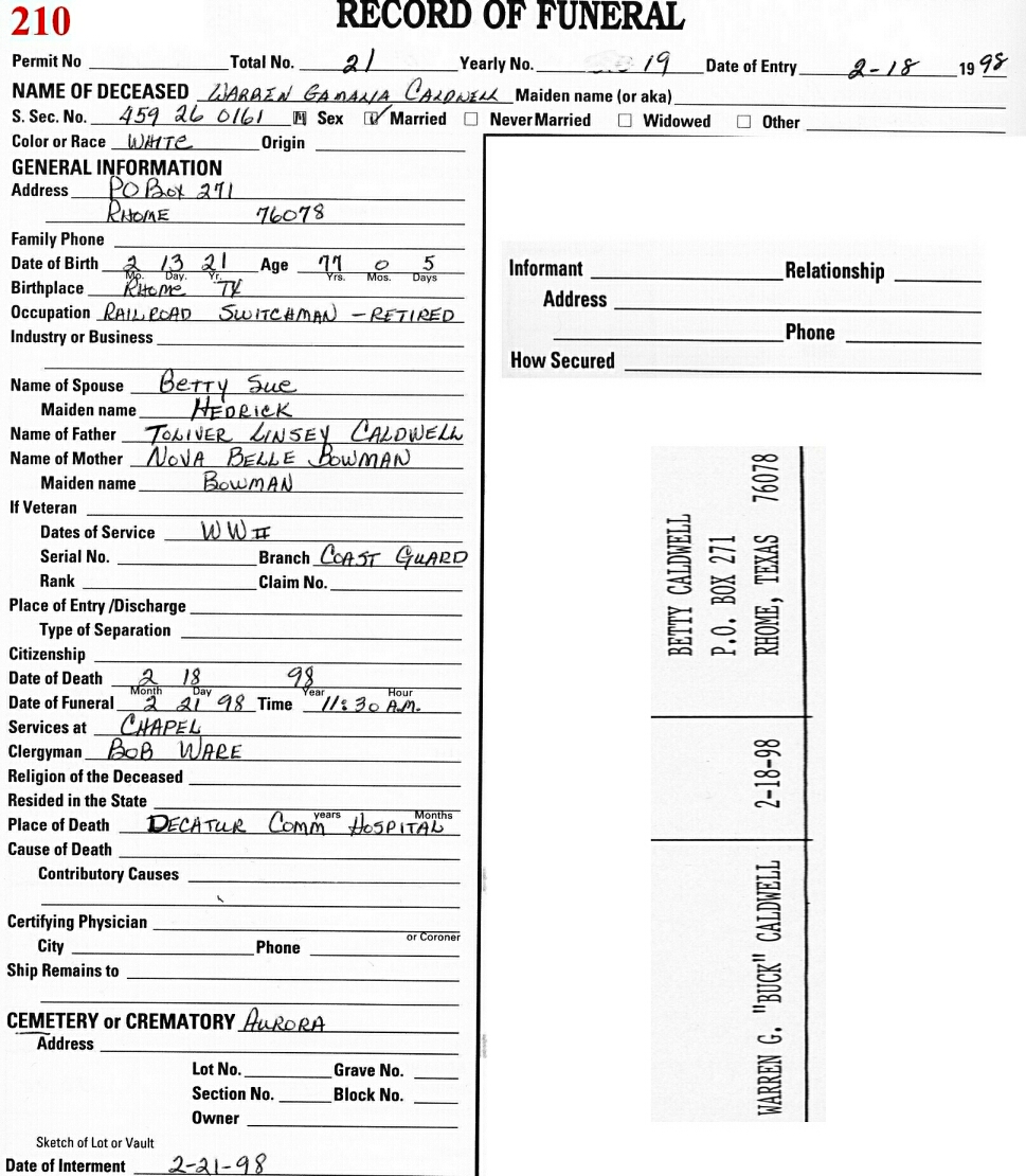 Last Name, First Name Funeral Home Book and Page are Link to image