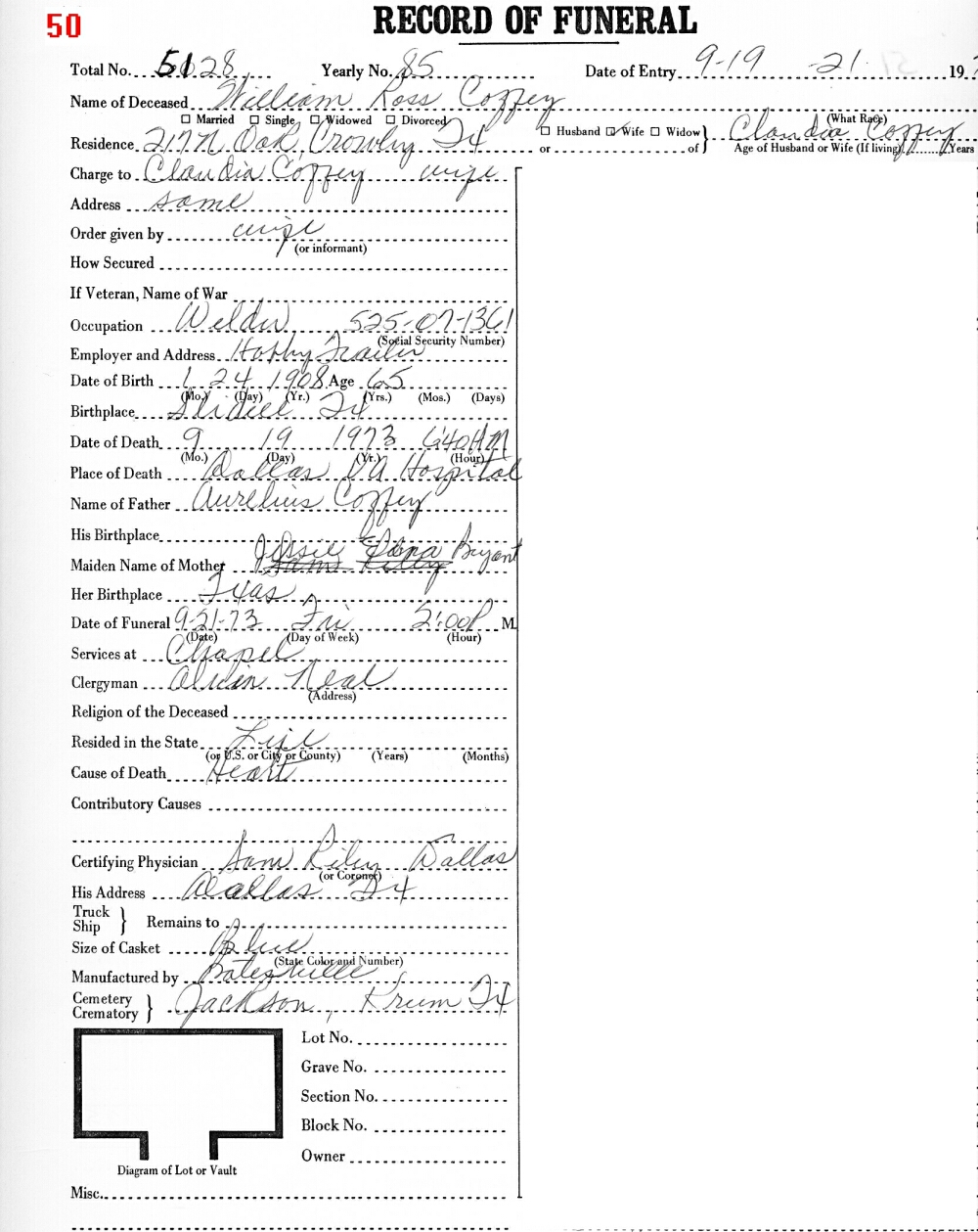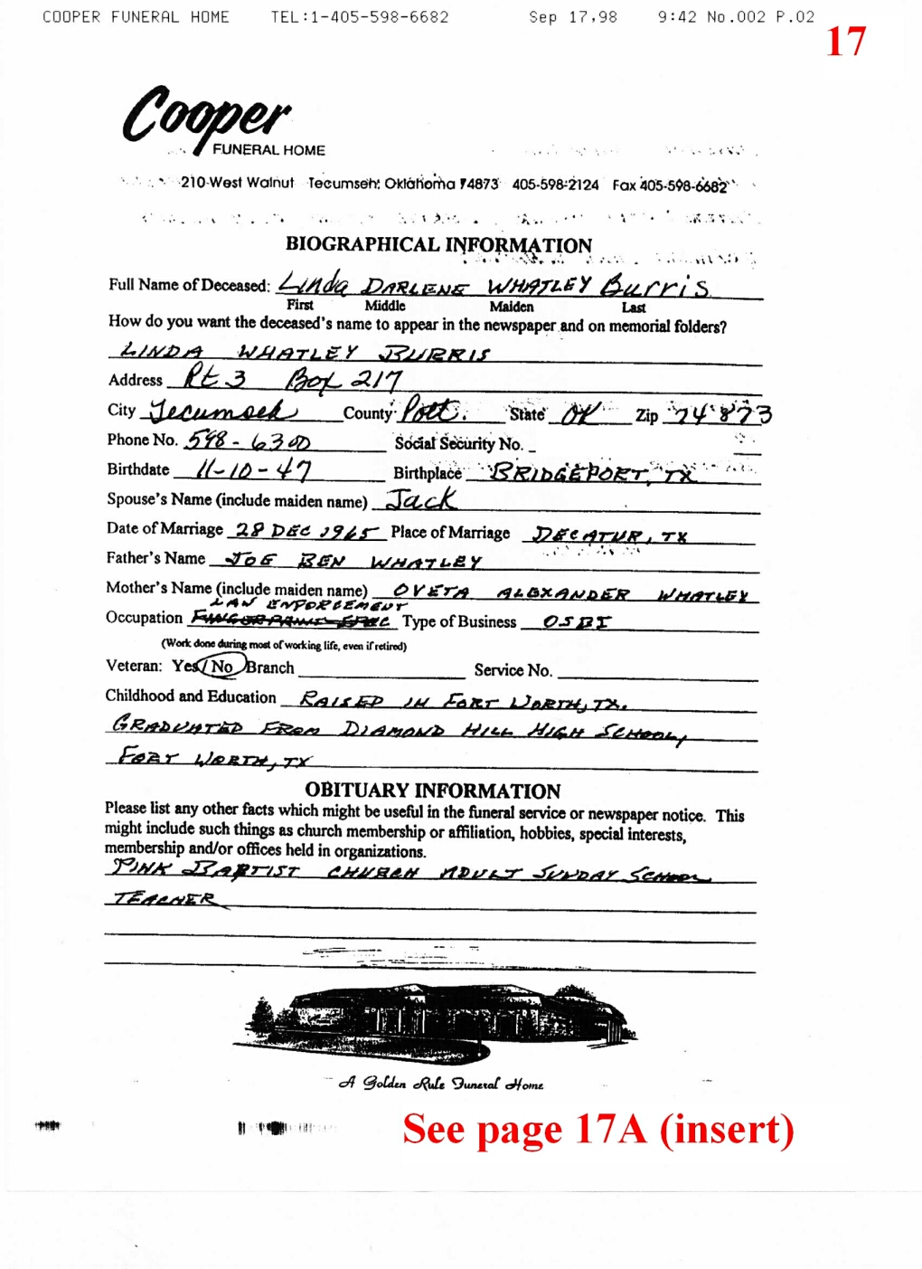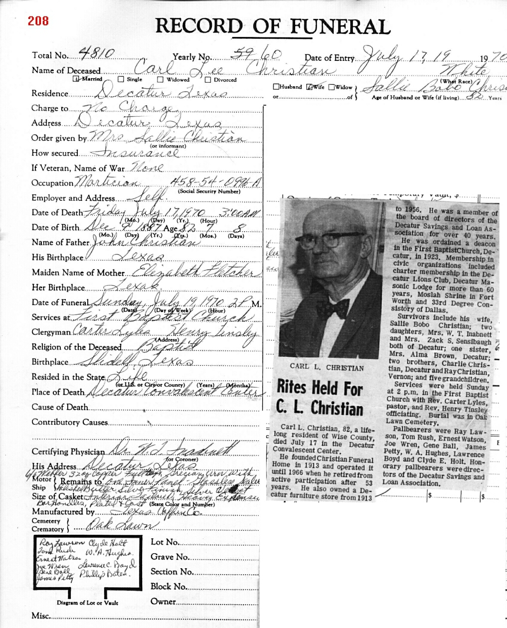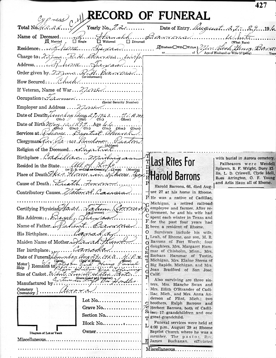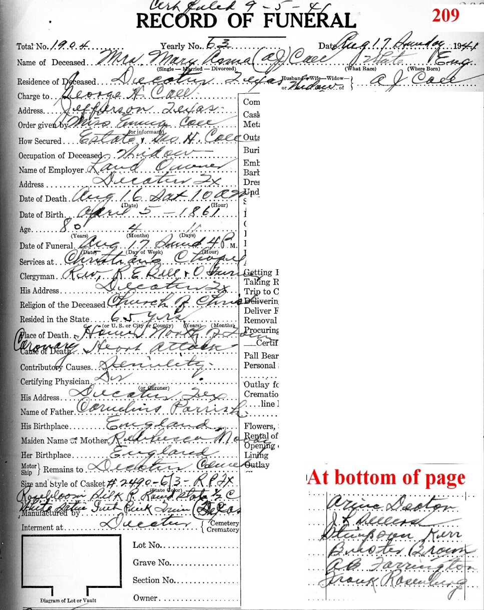 Last Name, First Name Funeral Home Book and Page are Link to image