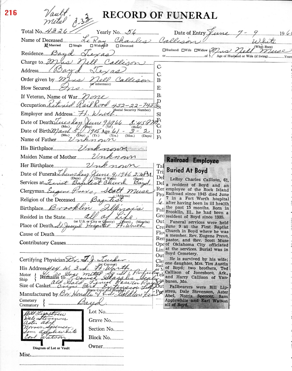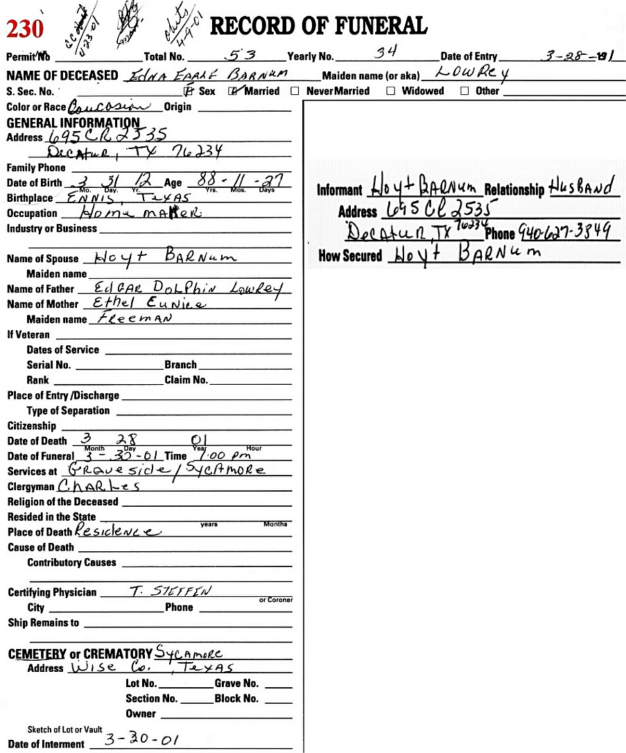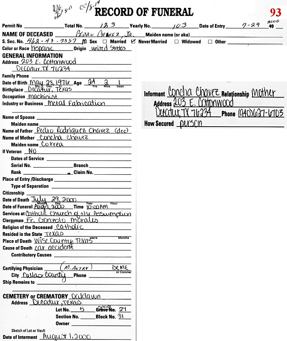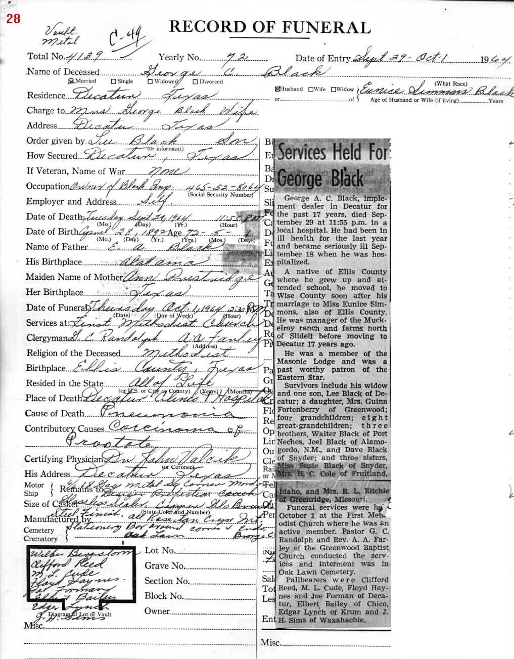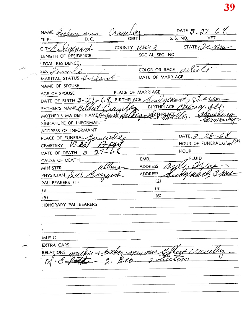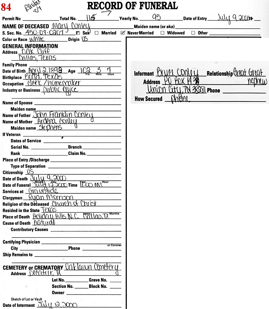 Last Name, First Name Funeral Home Book and Page are Link to image