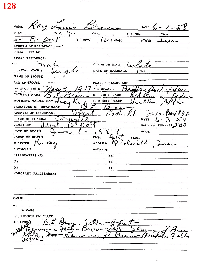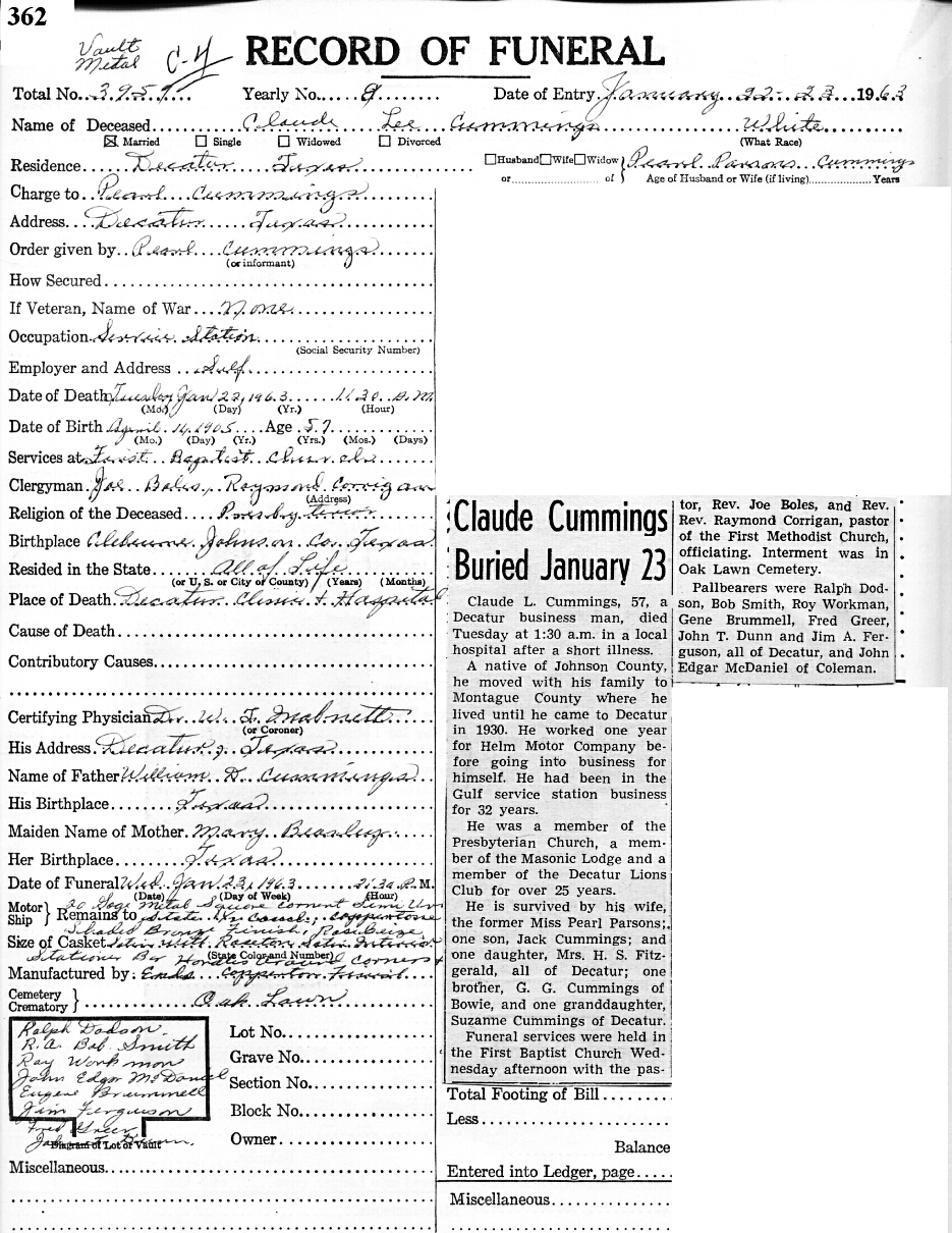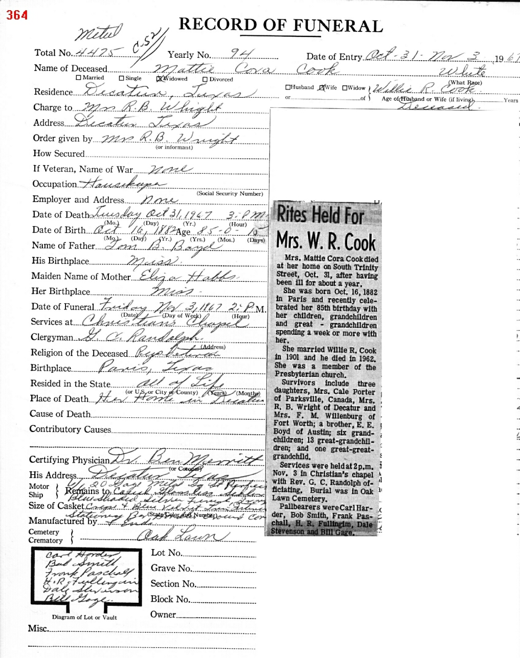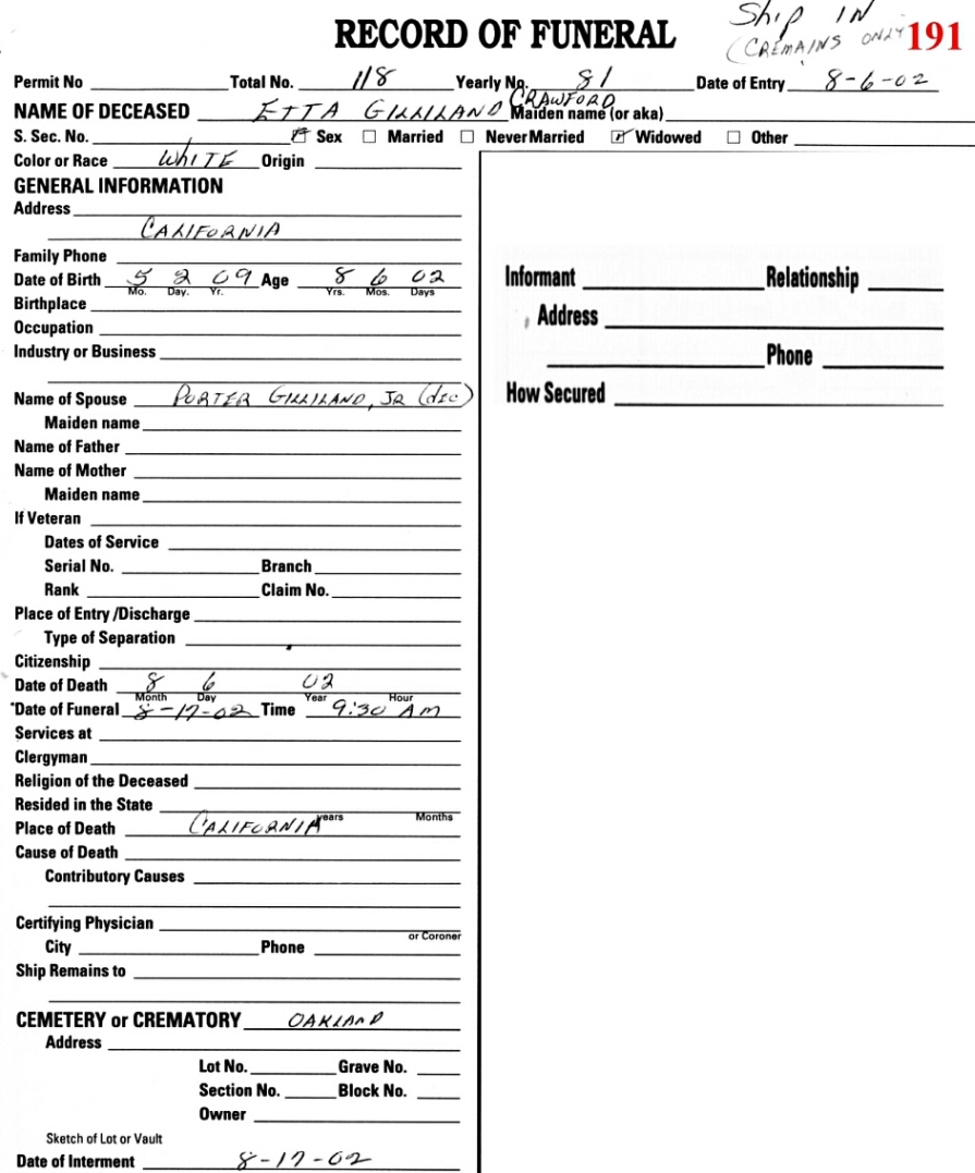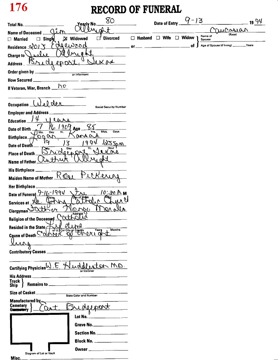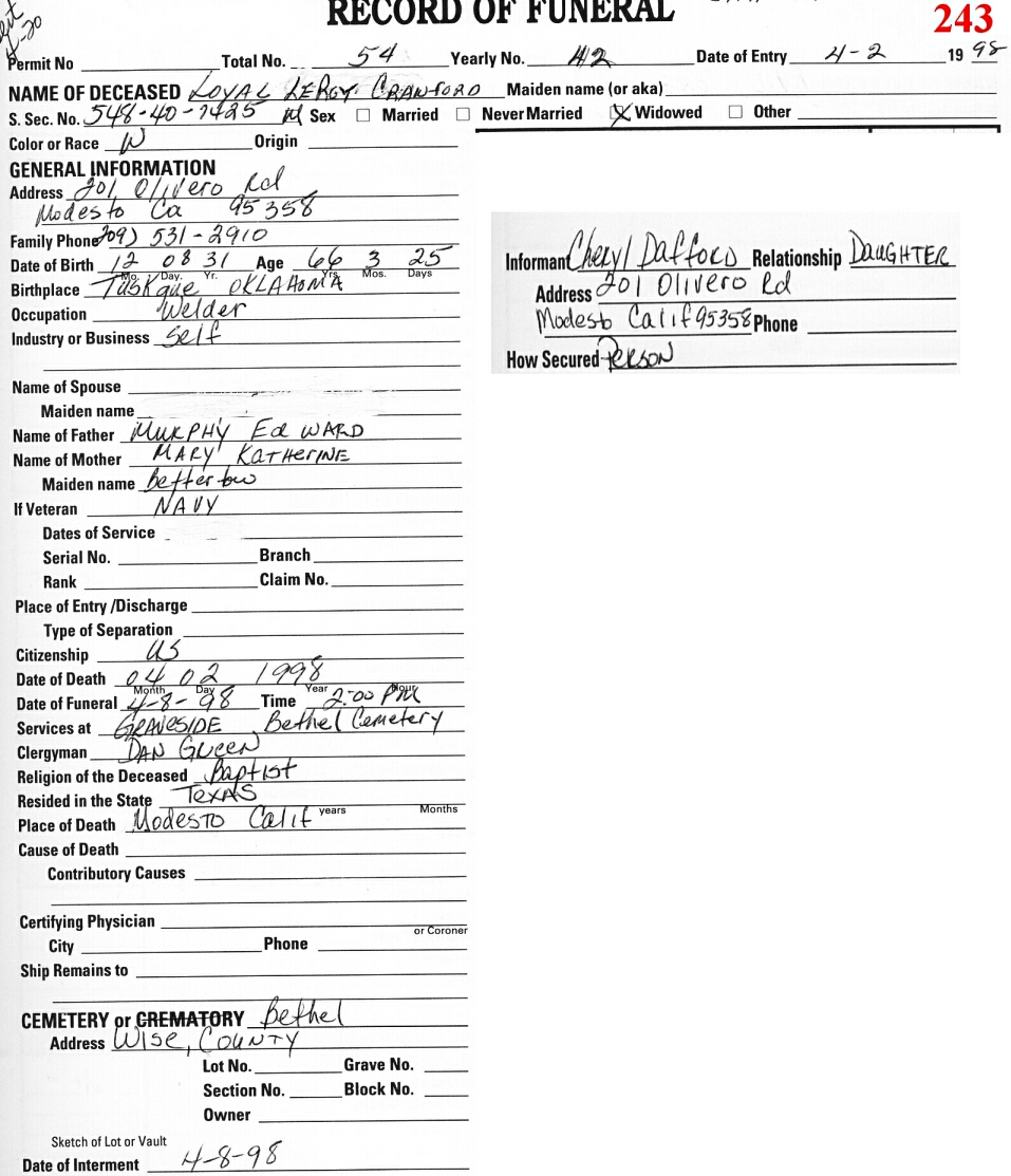 Last Name, First Name Funeral Home Book and Page are Link to image
