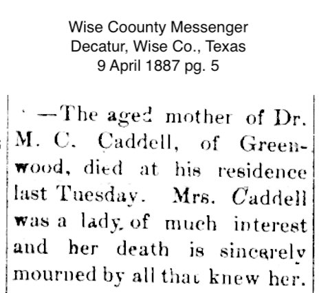 Caddell, Sarah Diannah (nee- Pitman) - 1887 -- Various Older Newspapers