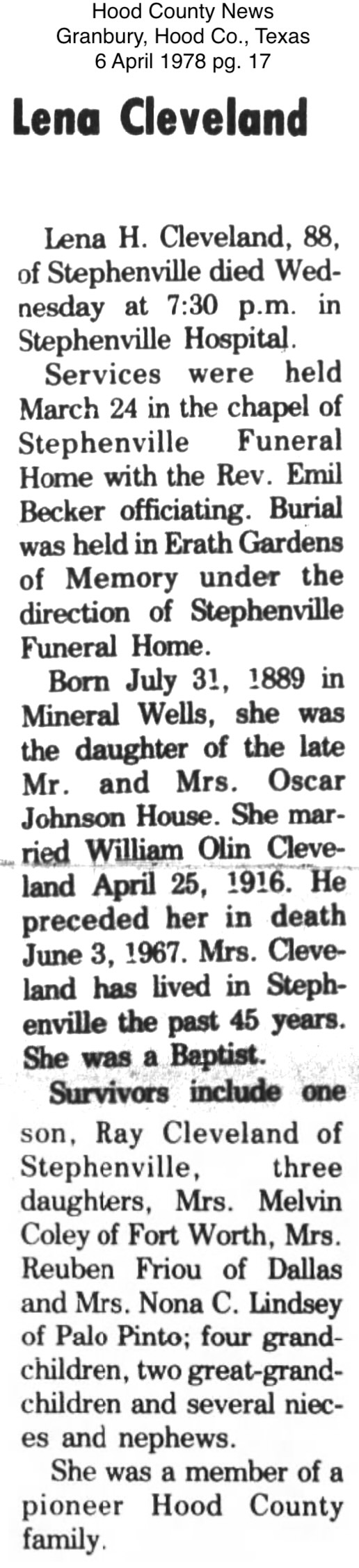Wise County Texas Obituaries
