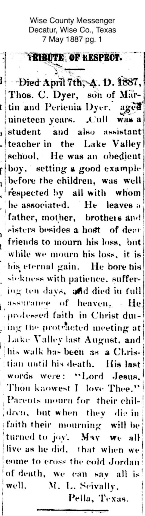 Dyer, Thomas C. - 1887 -- Various Older Newspapers